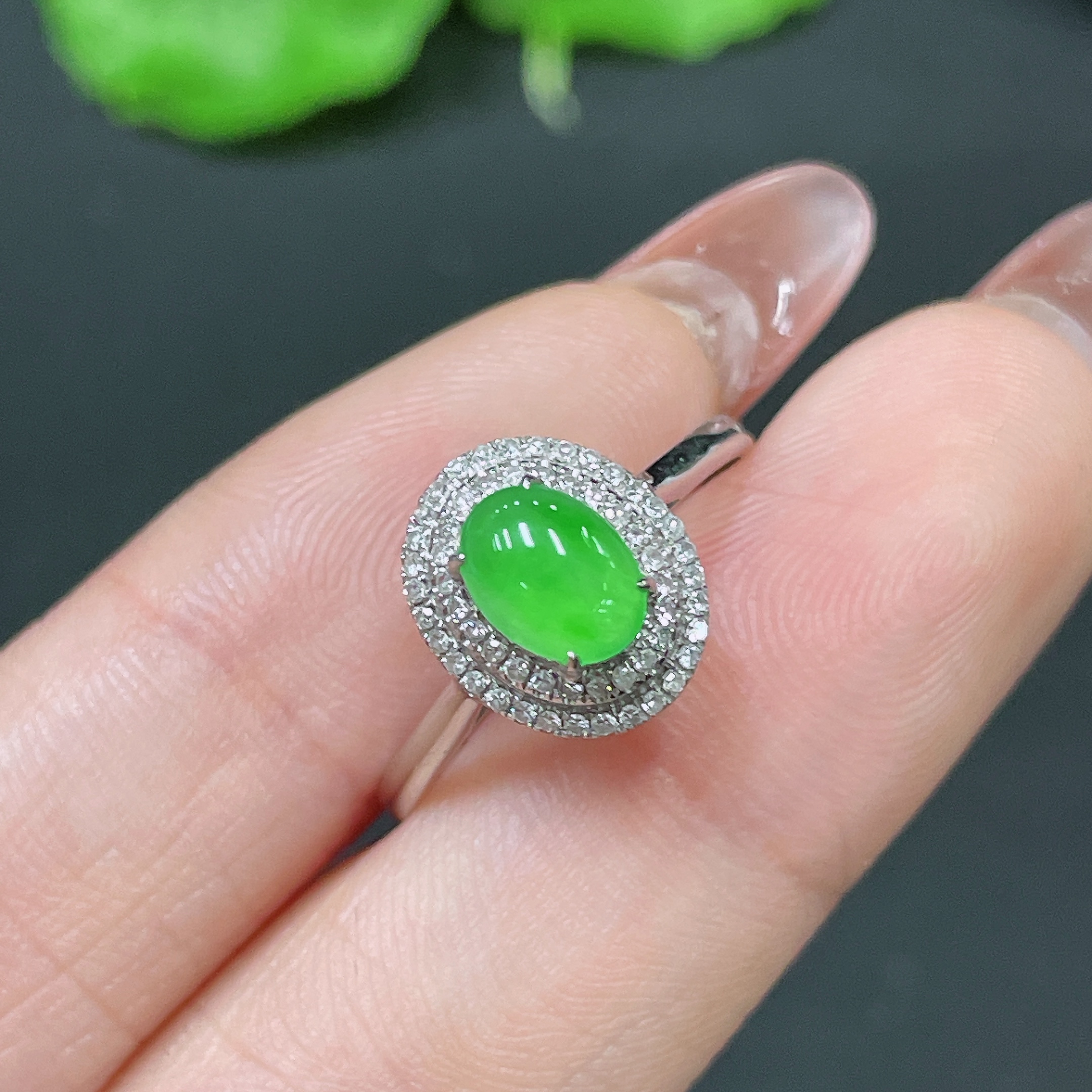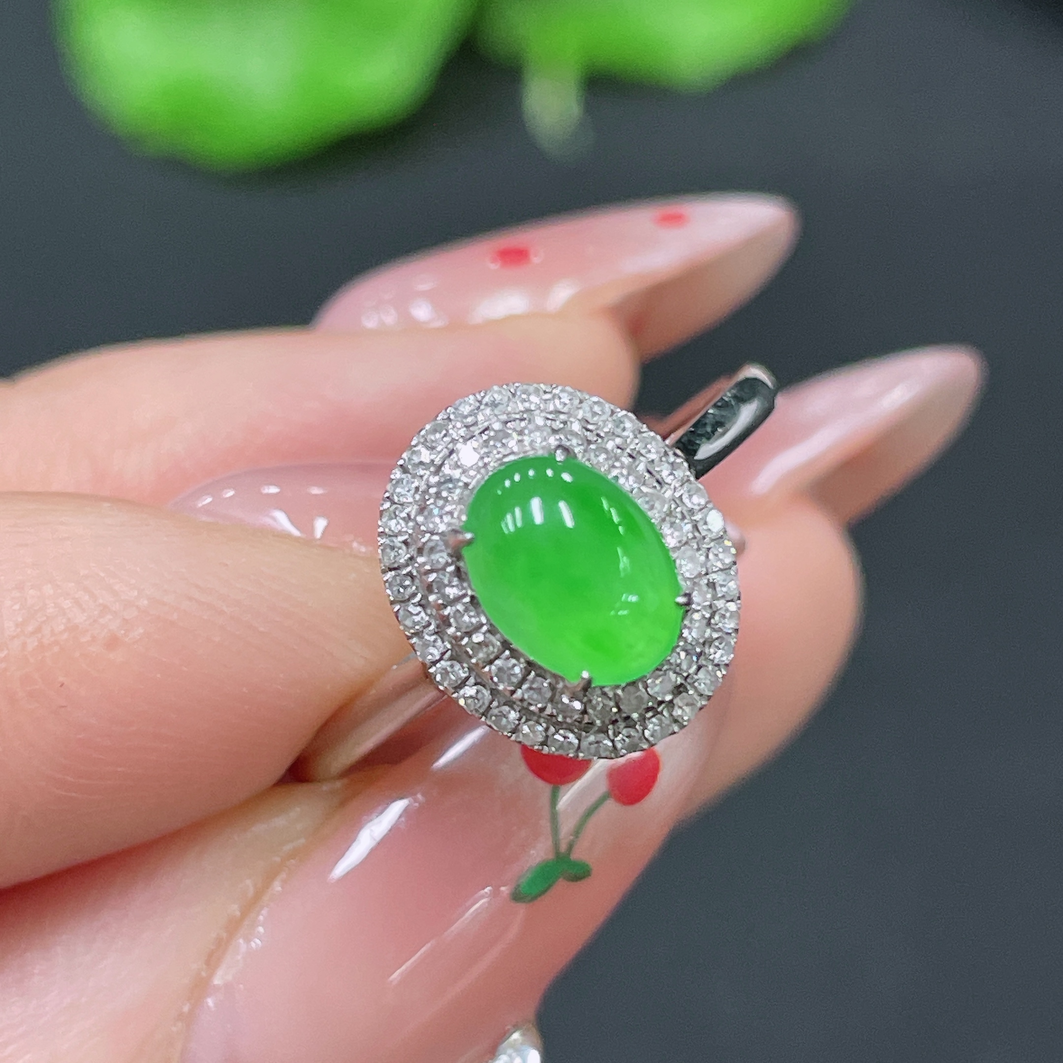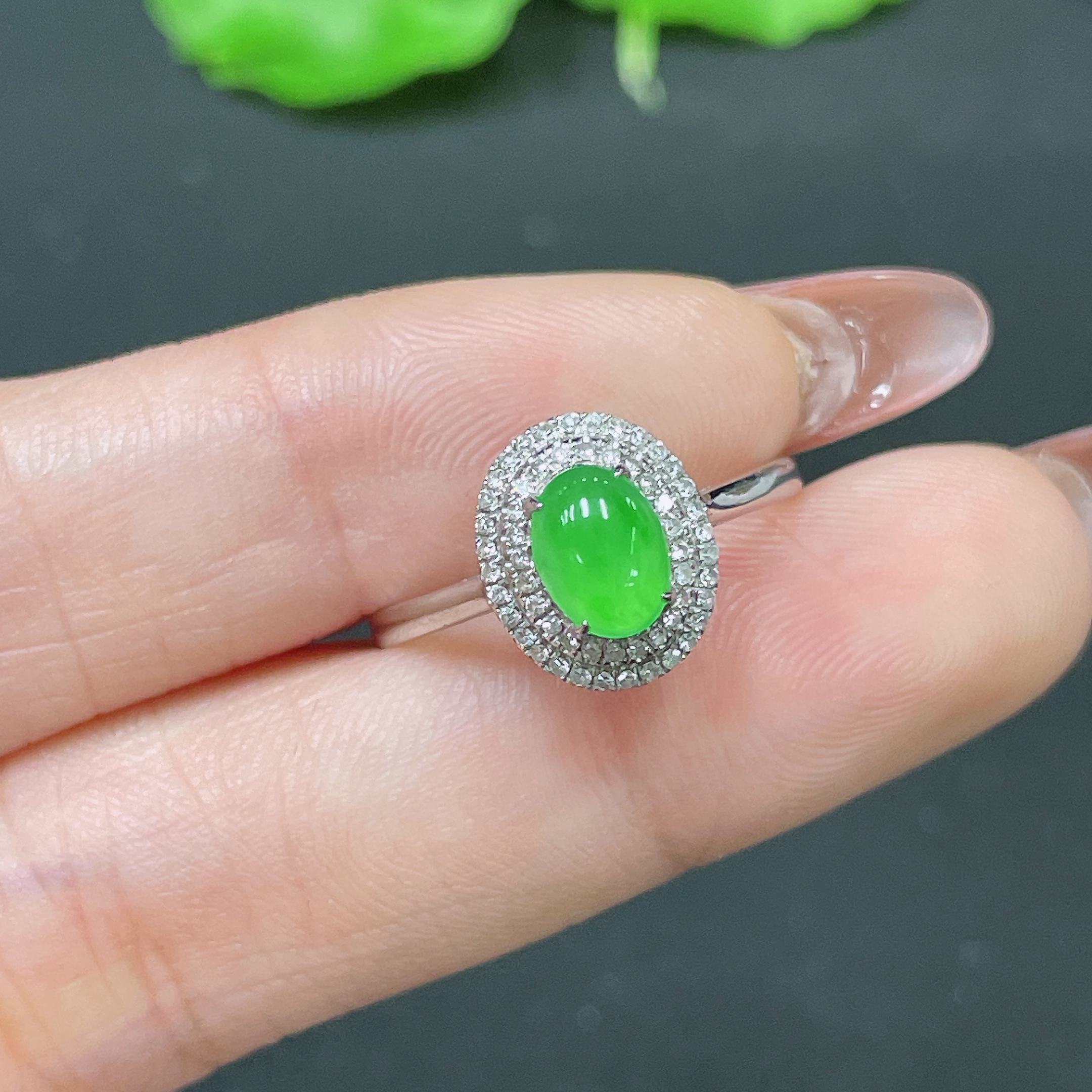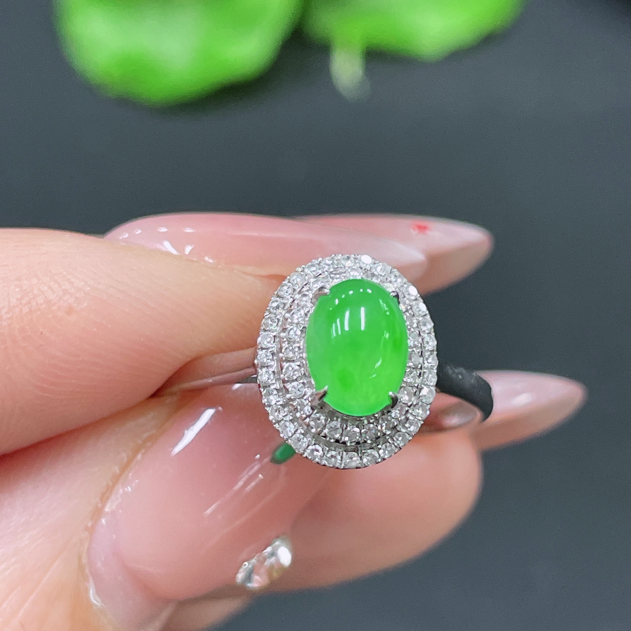 Jadeite ring with 46% gold content, 18k setting, total weight approximately 1.9g, set with diamonds, size 17
