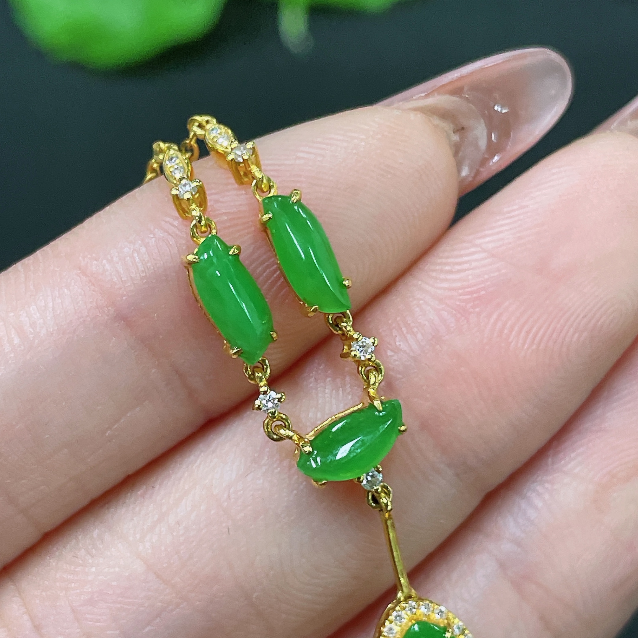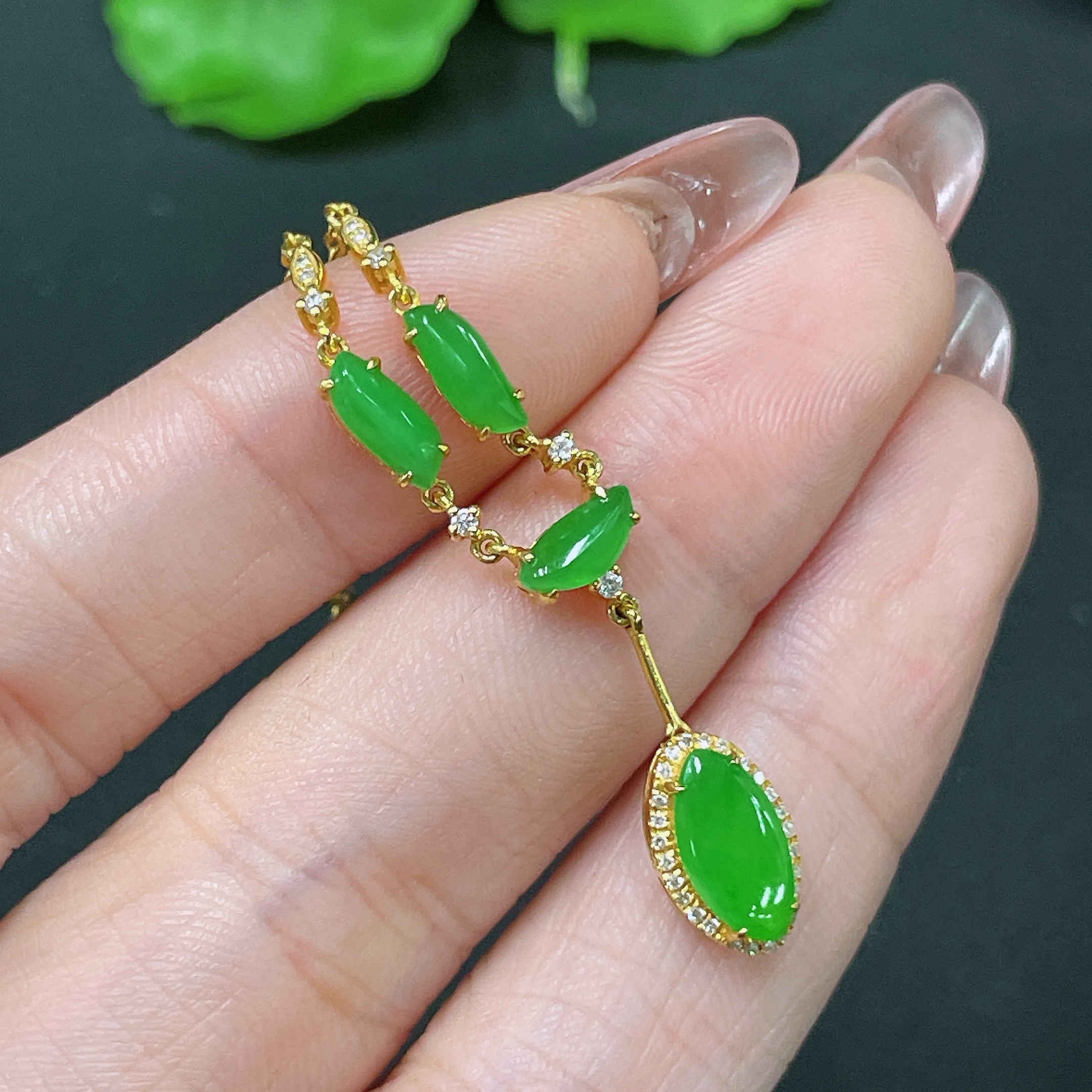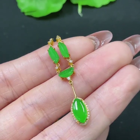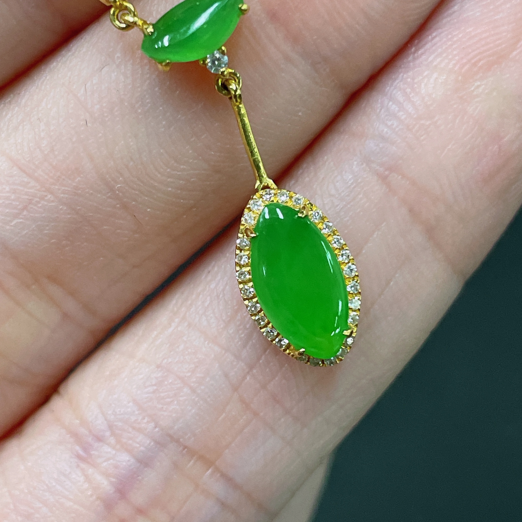 Jadeite Necklace 18k Gold Set with Diamonds Total Weight Approx. 3.7g