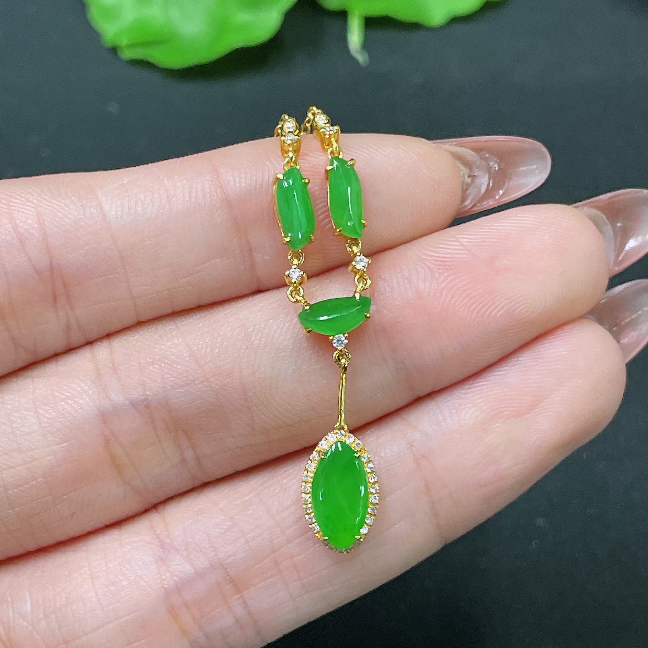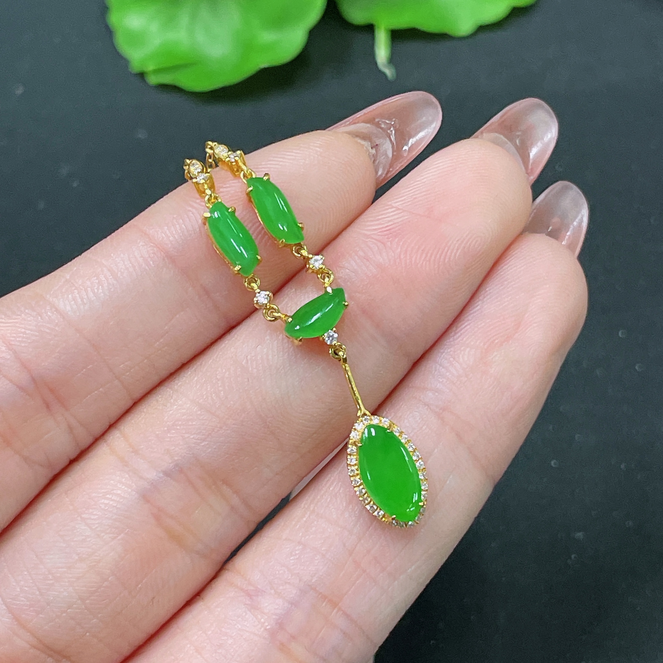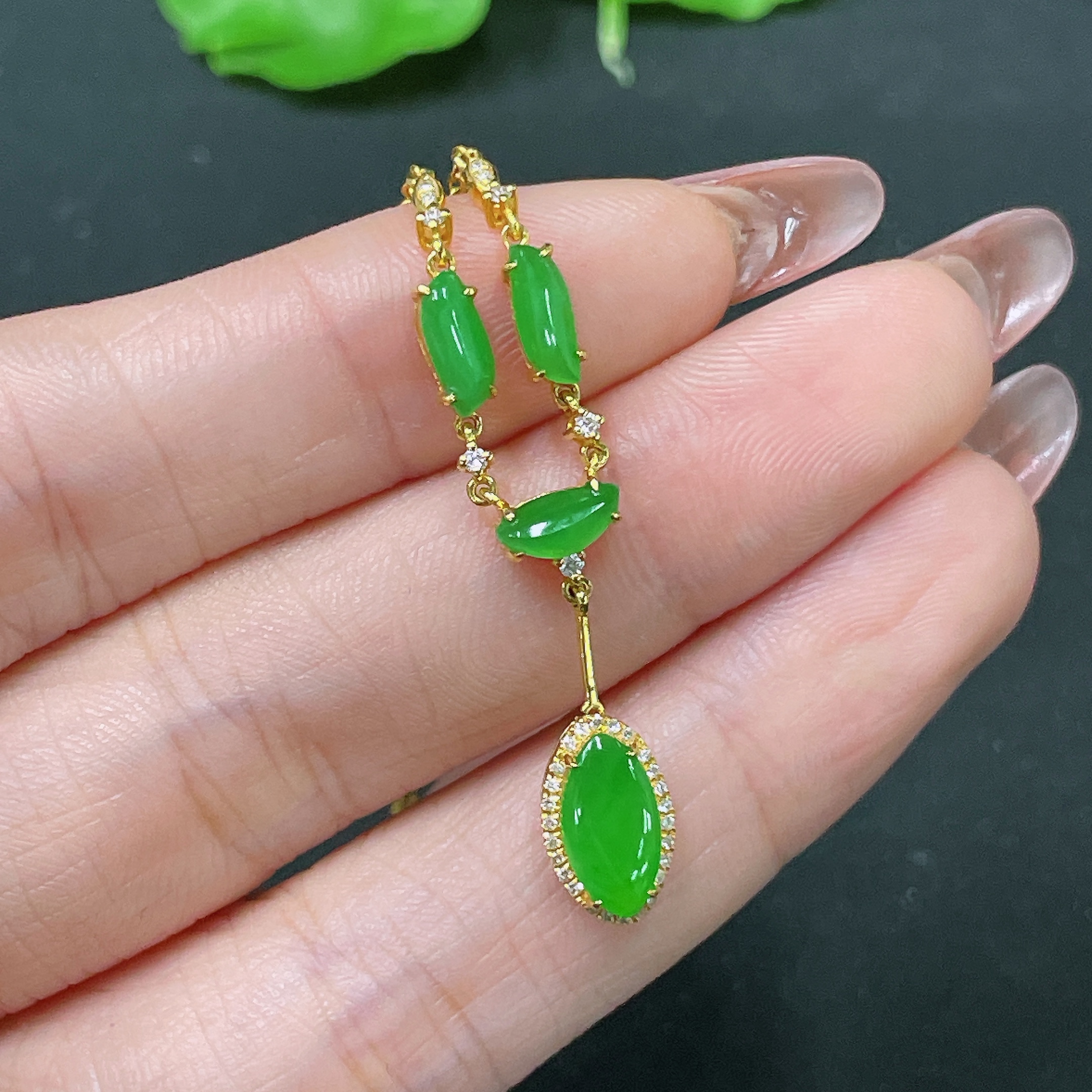 Jadeite Necklace 18k Gold Set with Diamonds Total Weight Approx. 3.7g