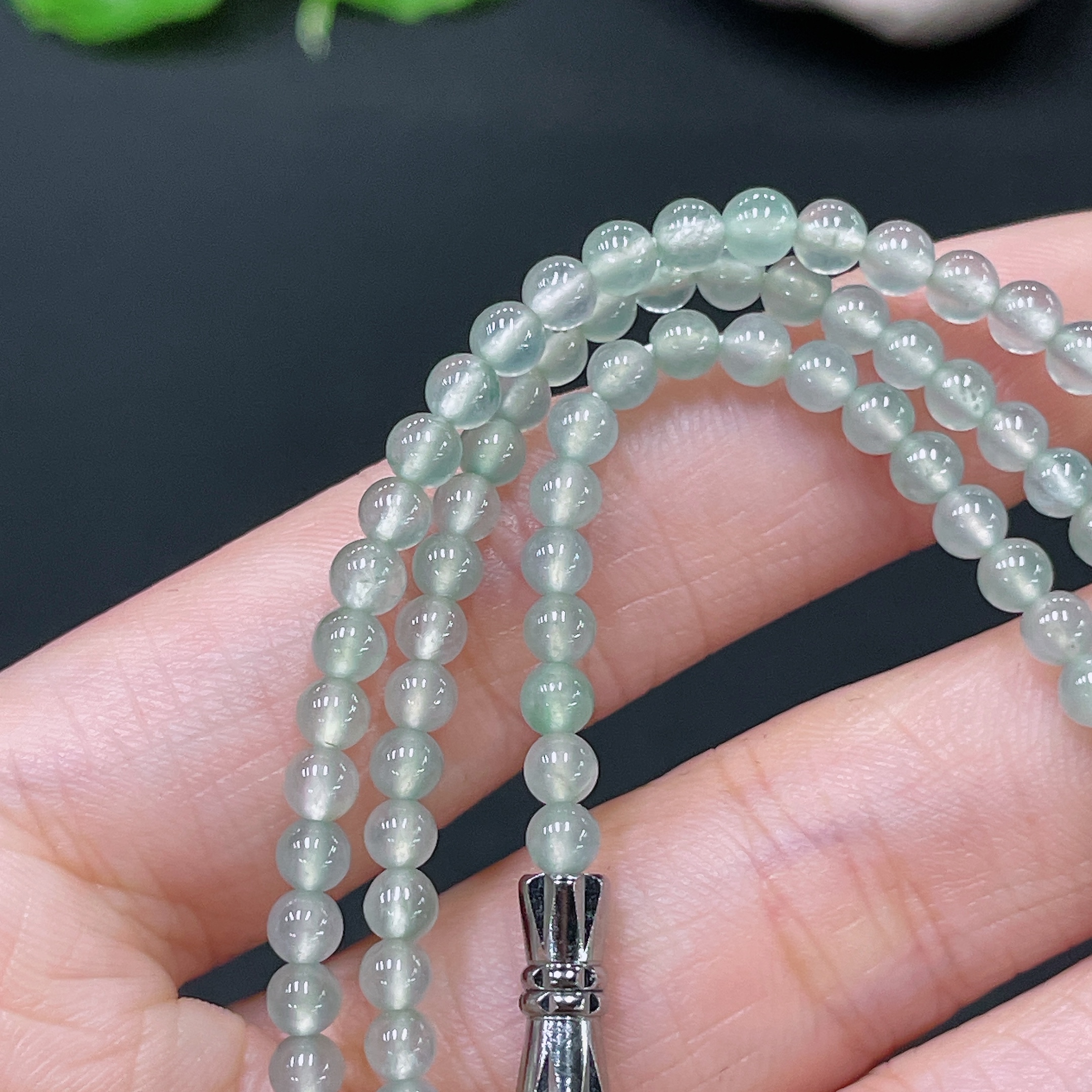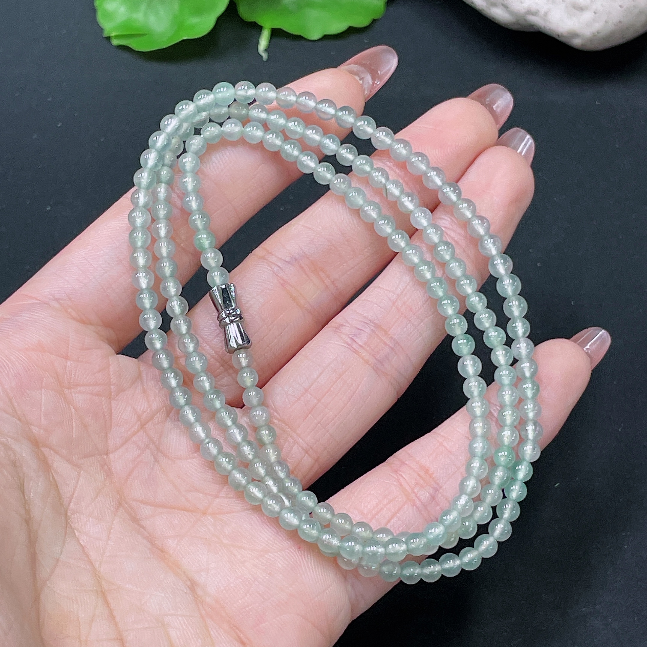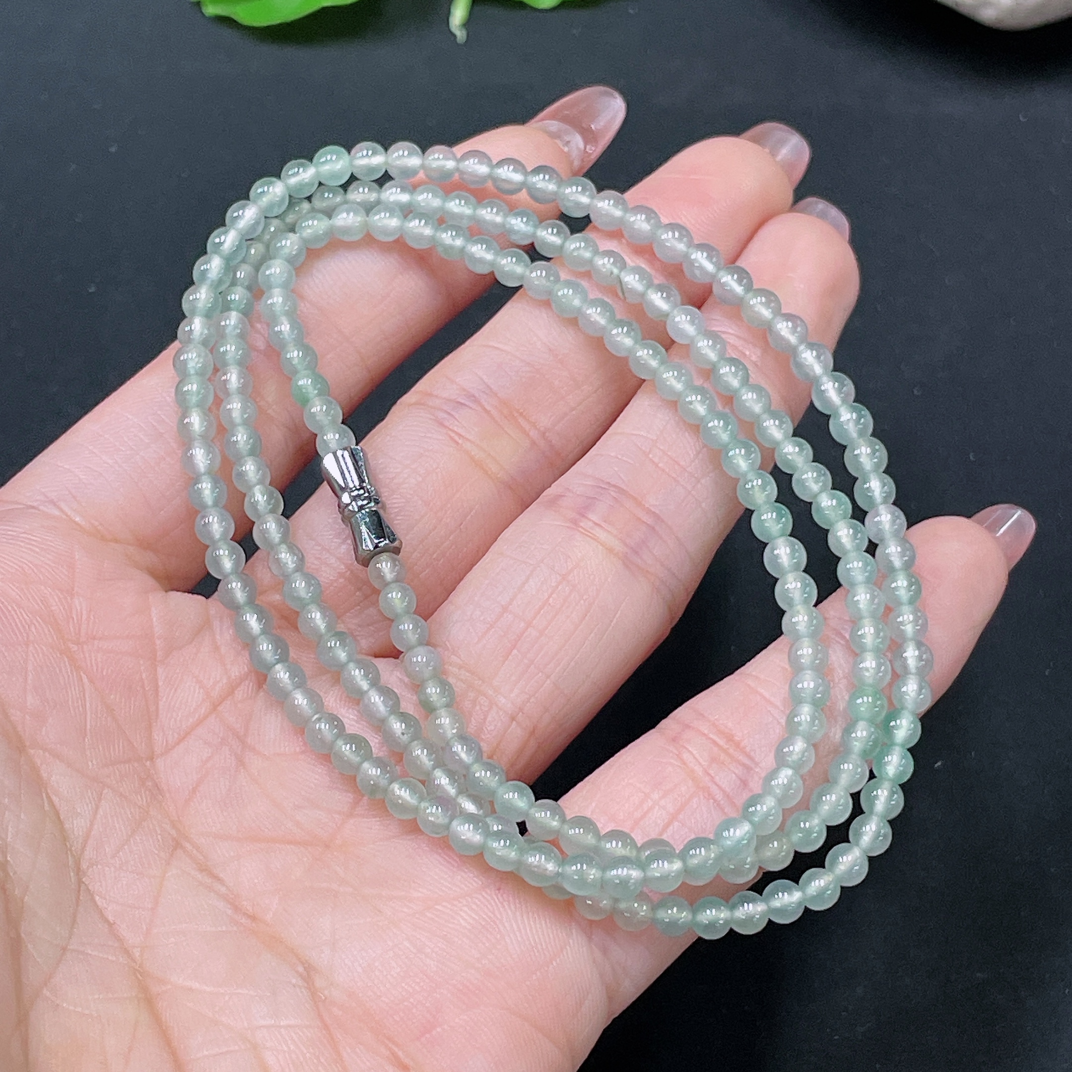 Jadeite Bead Necklace Approx. 3.5mm Non-Gold Total Weight About 15.08g