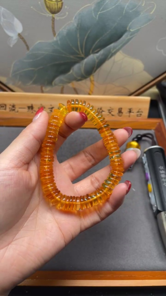 Amber Beeswax Bracelet, Total Weight Approx. 14.95g, Size About 10.1mm