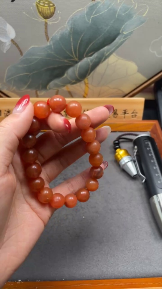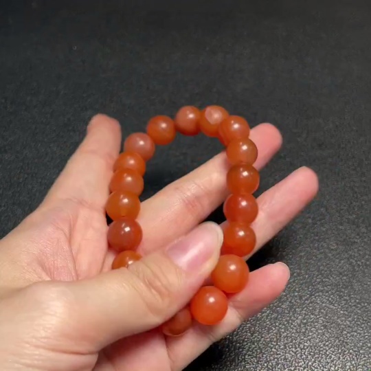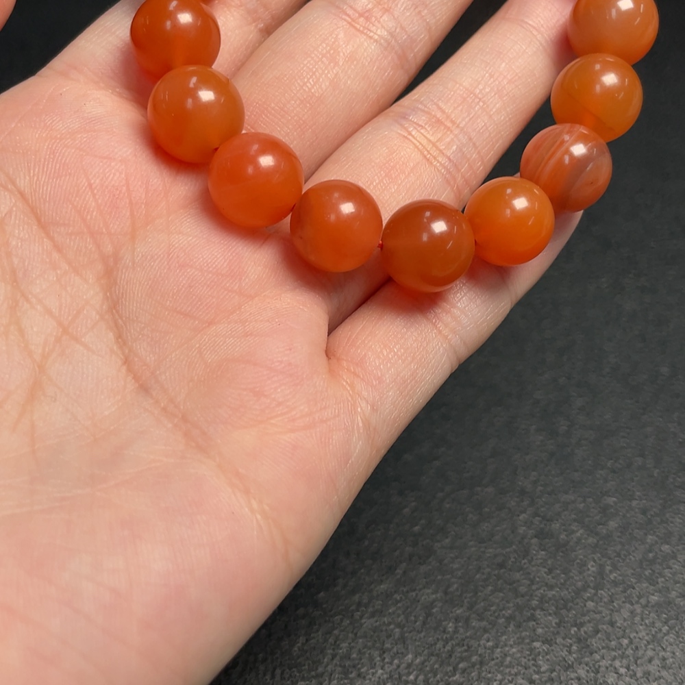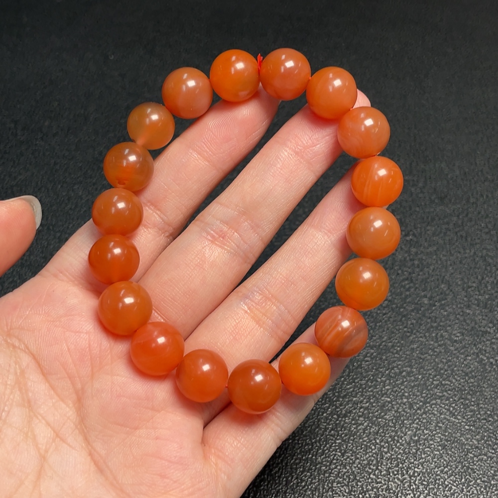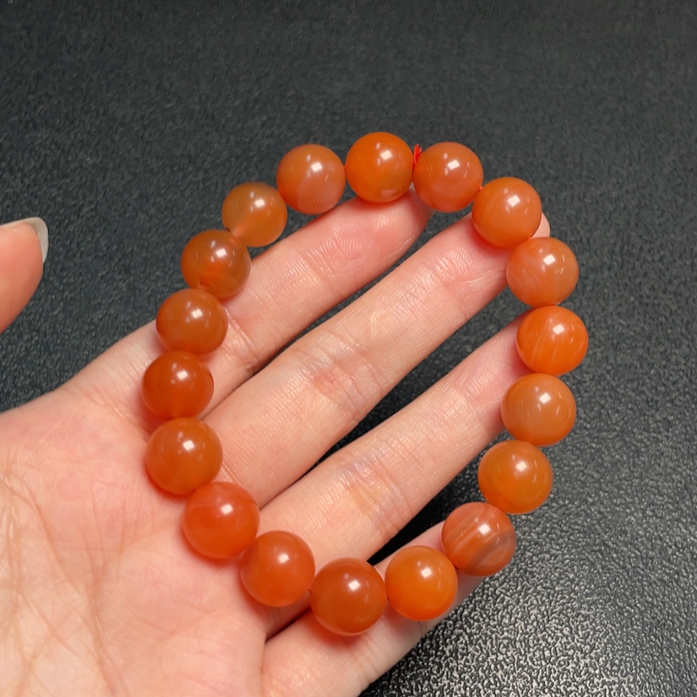 Red Agate Bracelet with Visible Organic Matter, Total Weight Approx. 37.45g, Size ~11.4mm