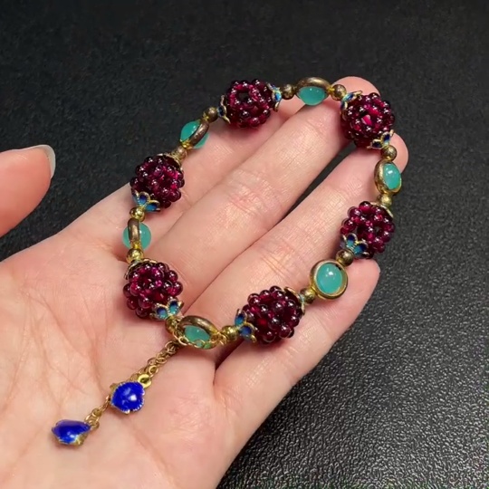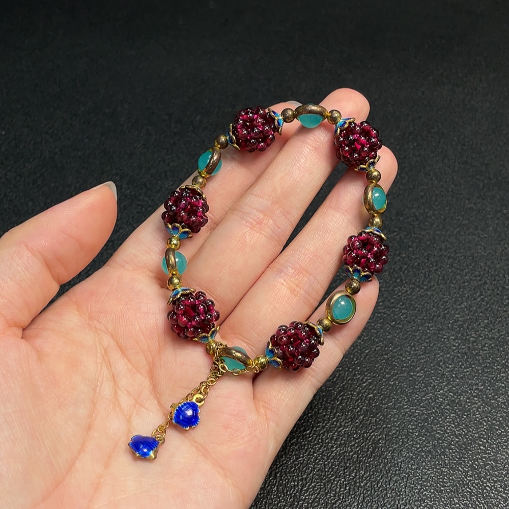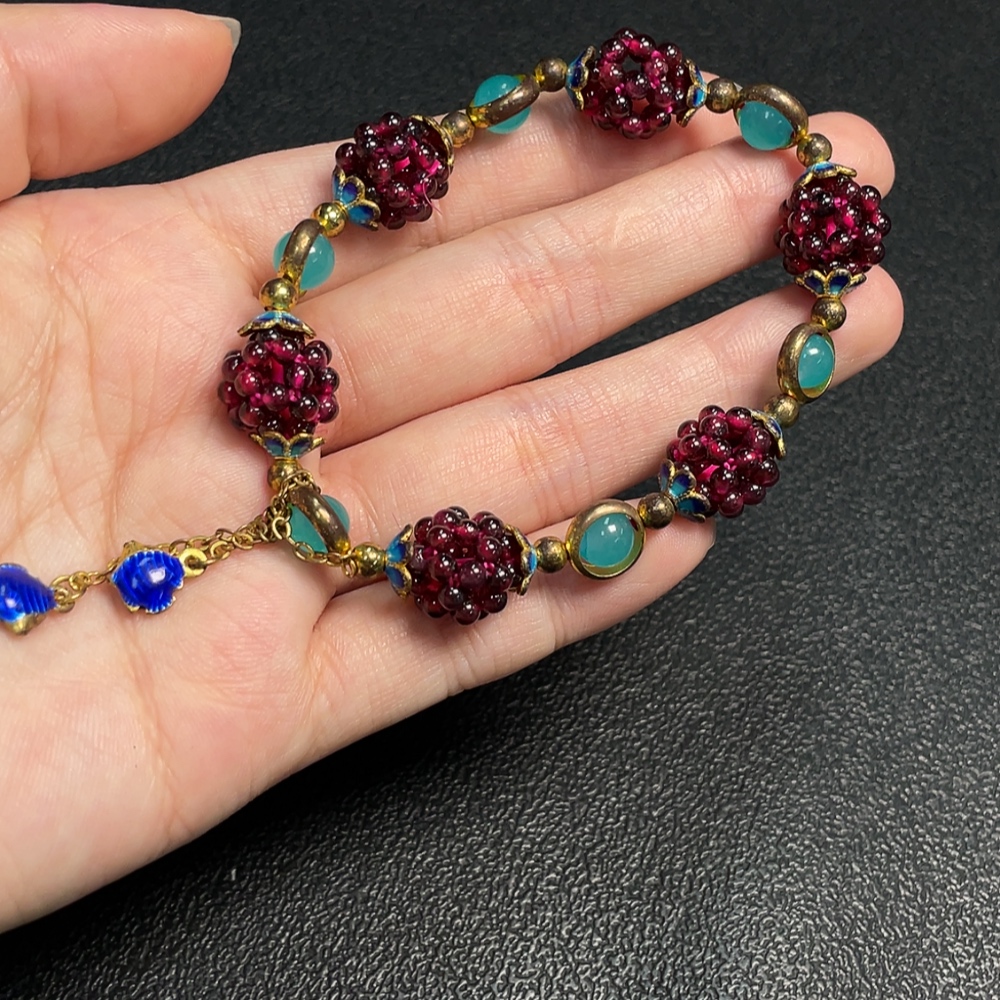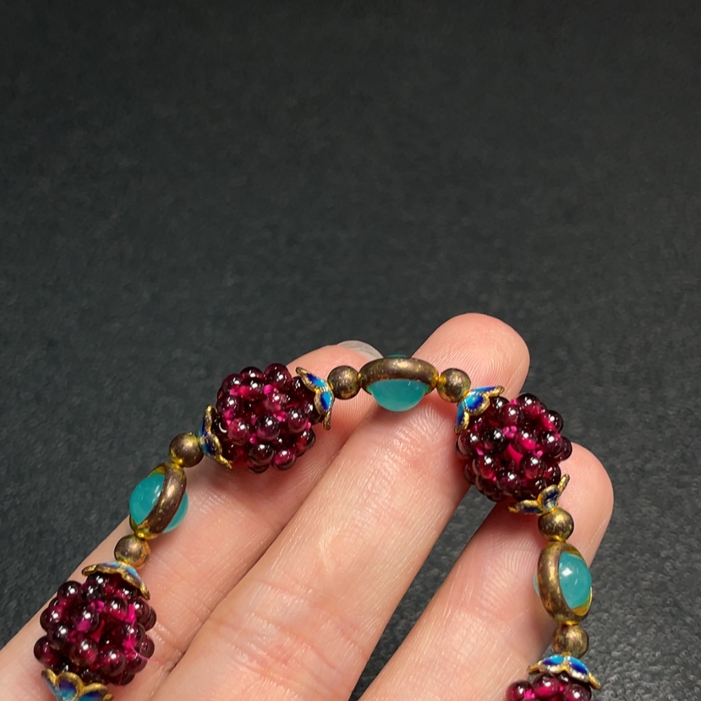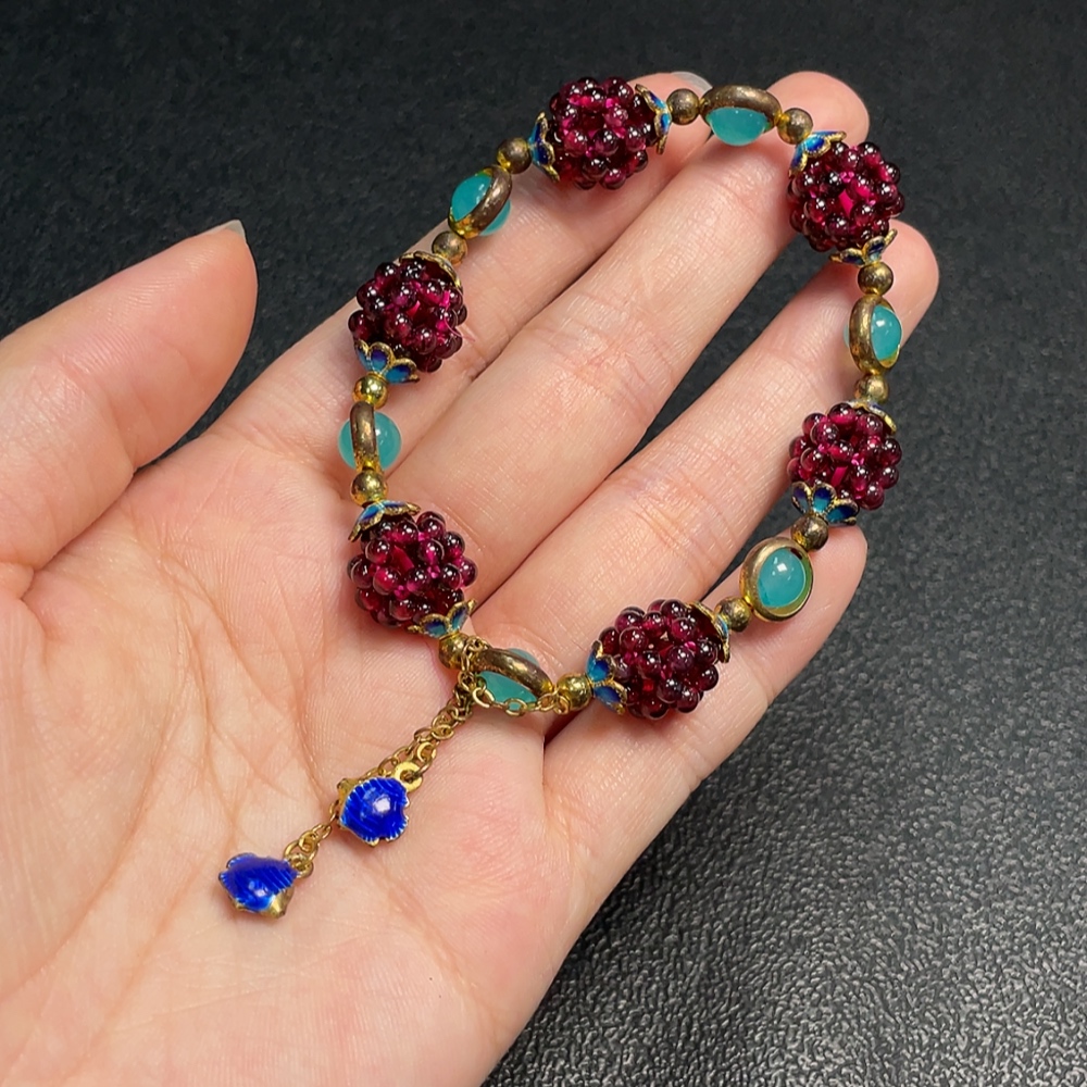 Garnet Bracelet with Non-Natural and Non-Gold Accent Stones, Total Weight Approximately 18.62g, Stone Size About 2.9mm