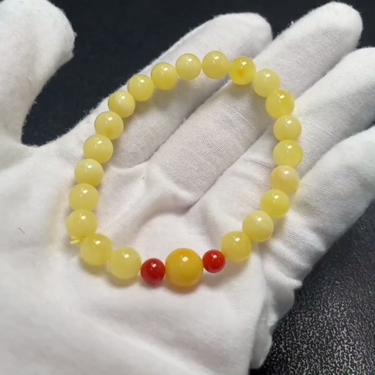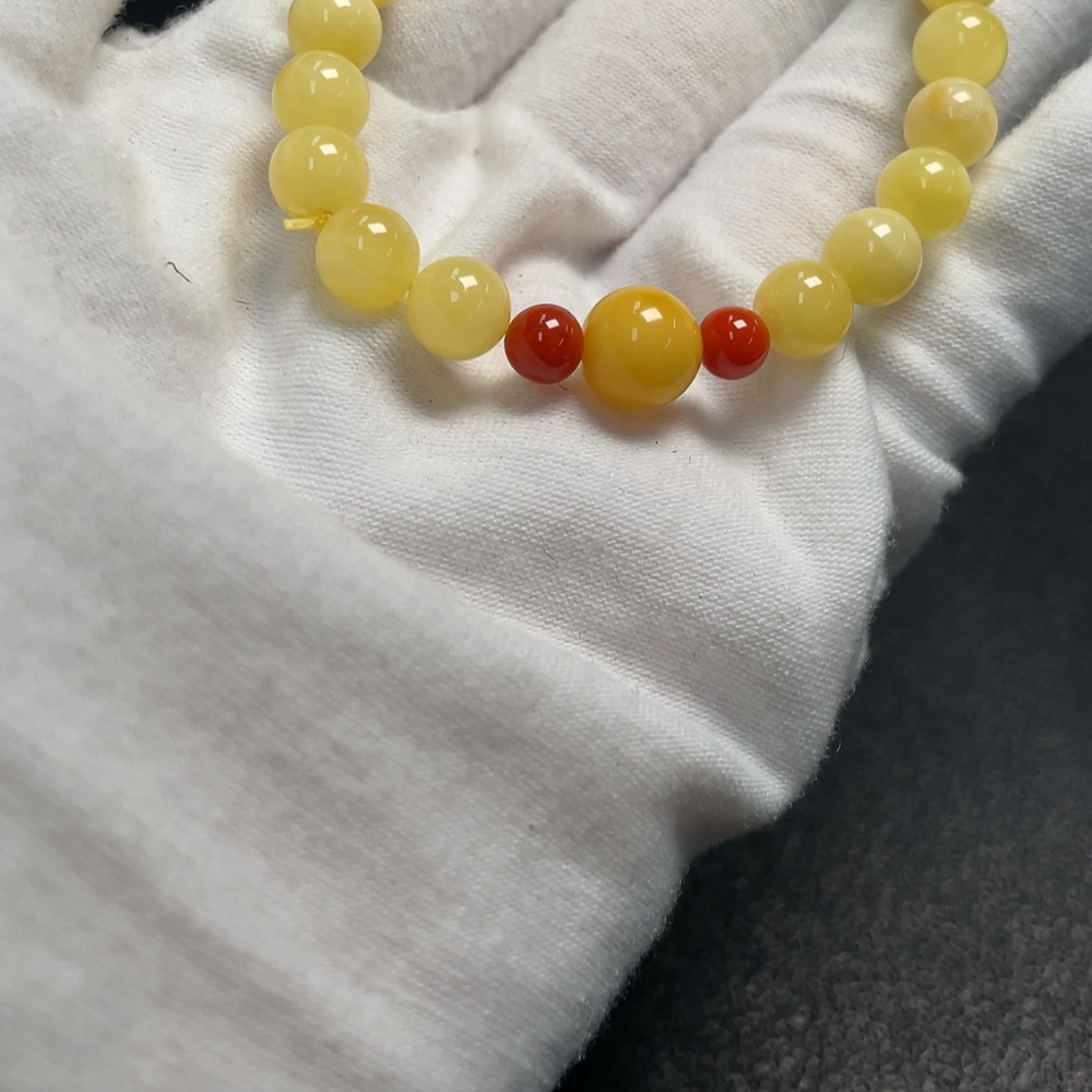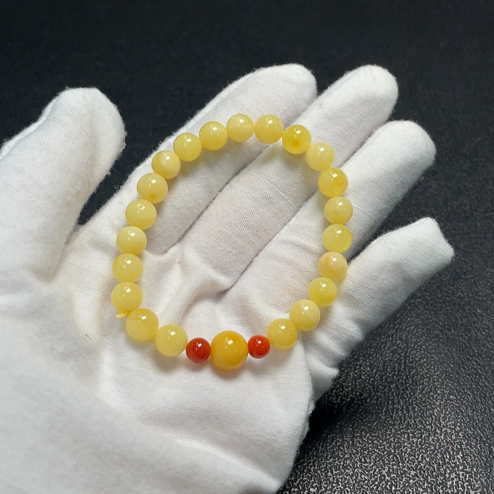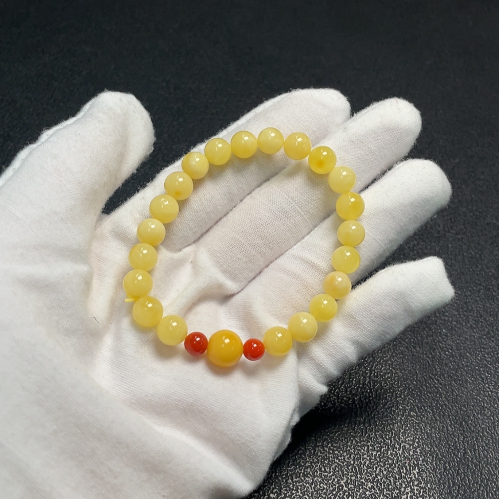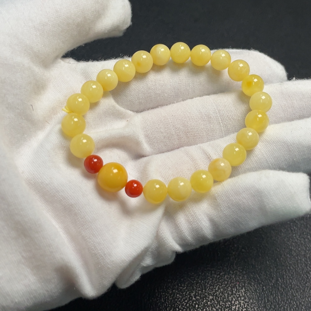 Amber and Beeswax Bracelet with Southern Red Agate, Total Weight Approx. 5.15g, Size 7.1-8.6mm