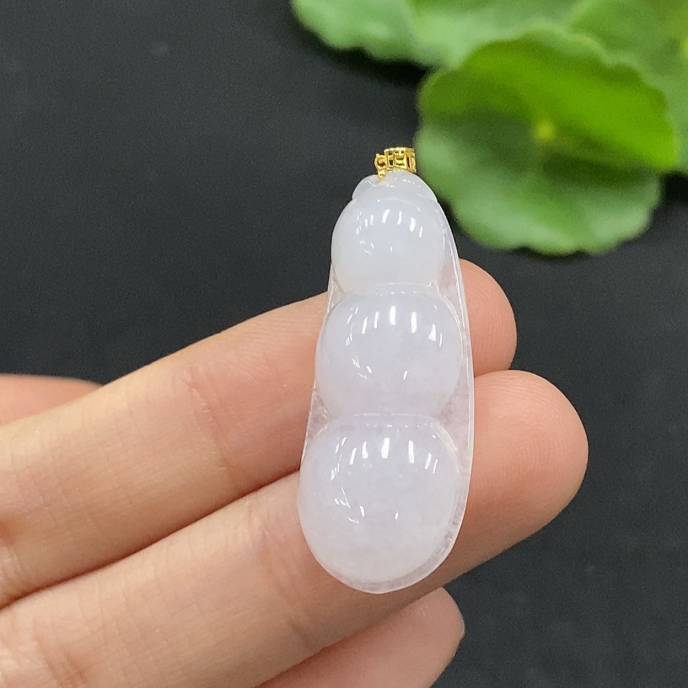 Jadeite Lucky Bean Pendant 18K Gold Total Weight Approx. 4.53g