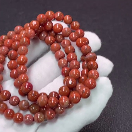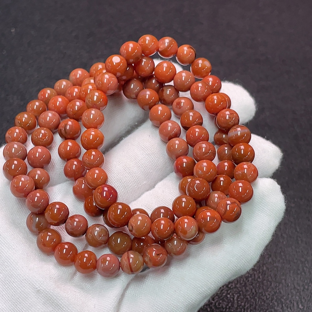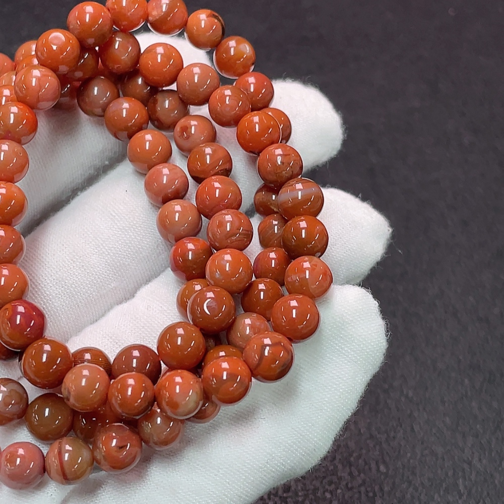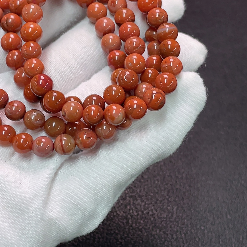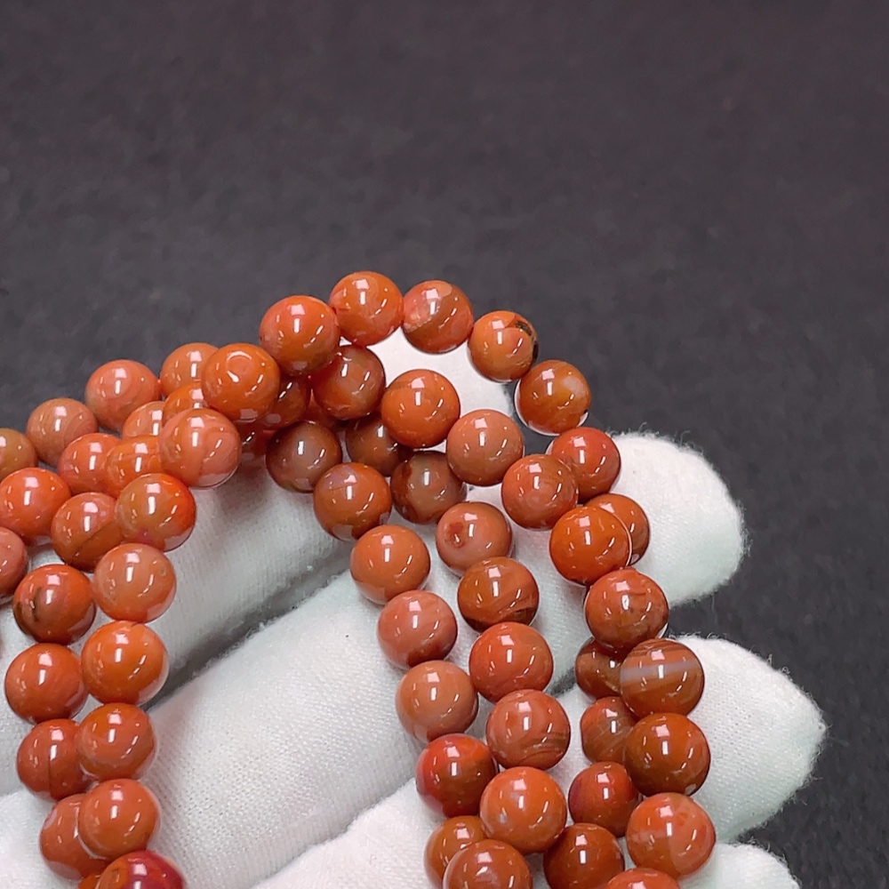 South Red Agate Bead Necklace with Visible Organic Matter, Total Weight Approximately 46g, Bead Size About 7mm