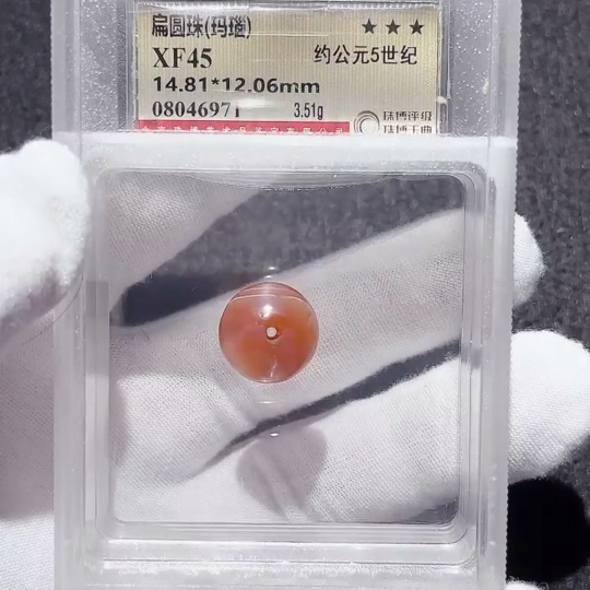 Flat Round Agate Bead circa 5th Century AD, Zhubo Graded, Vintage Bead