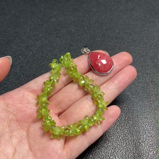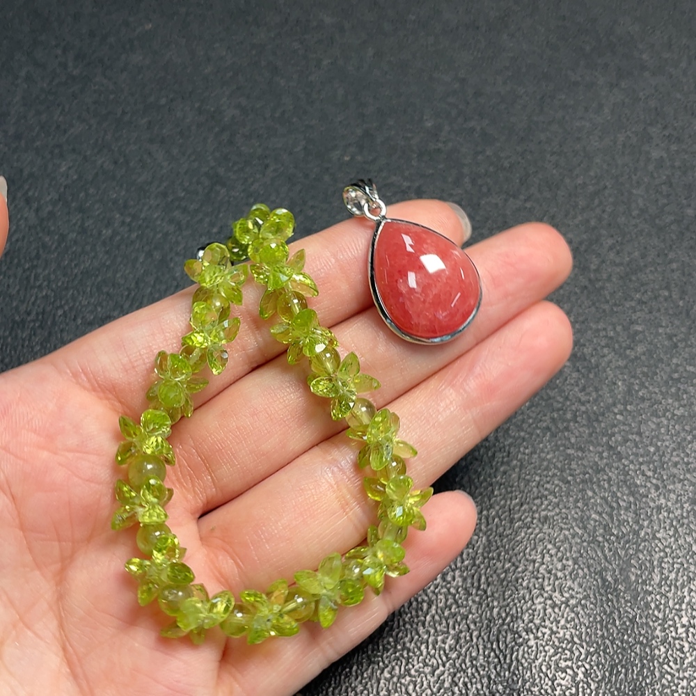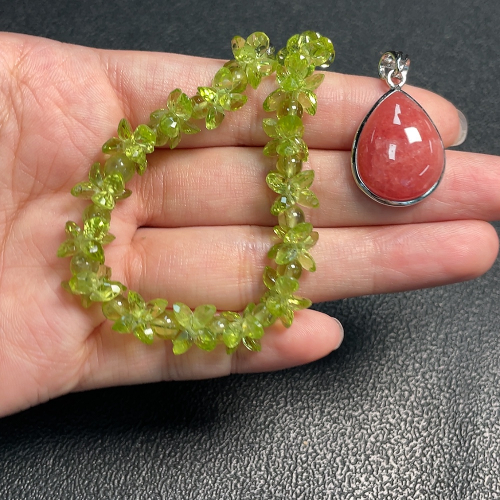 Peridot Bracelet + Rhodochrosite Pendant Non-Gold Total Weight Approx. 20.49g Sell as a Lot