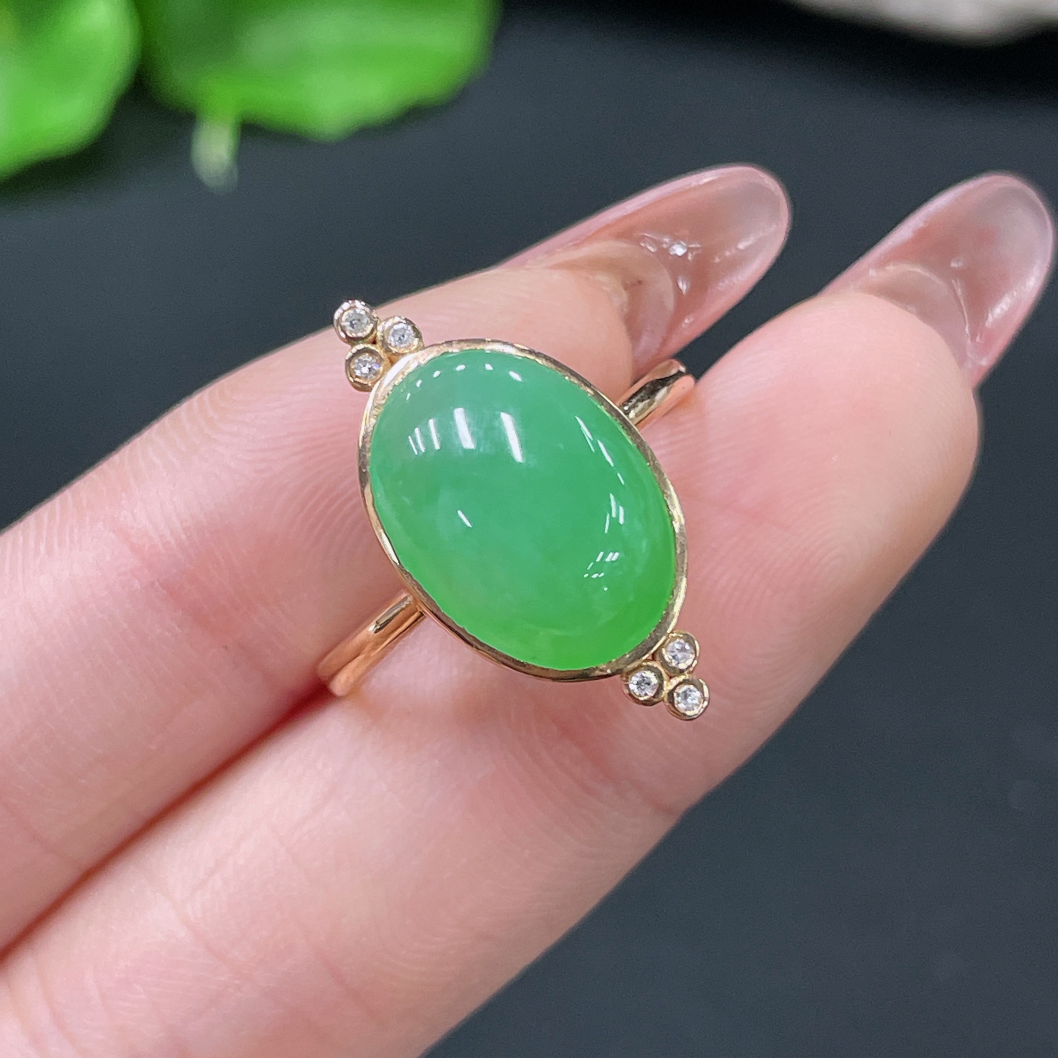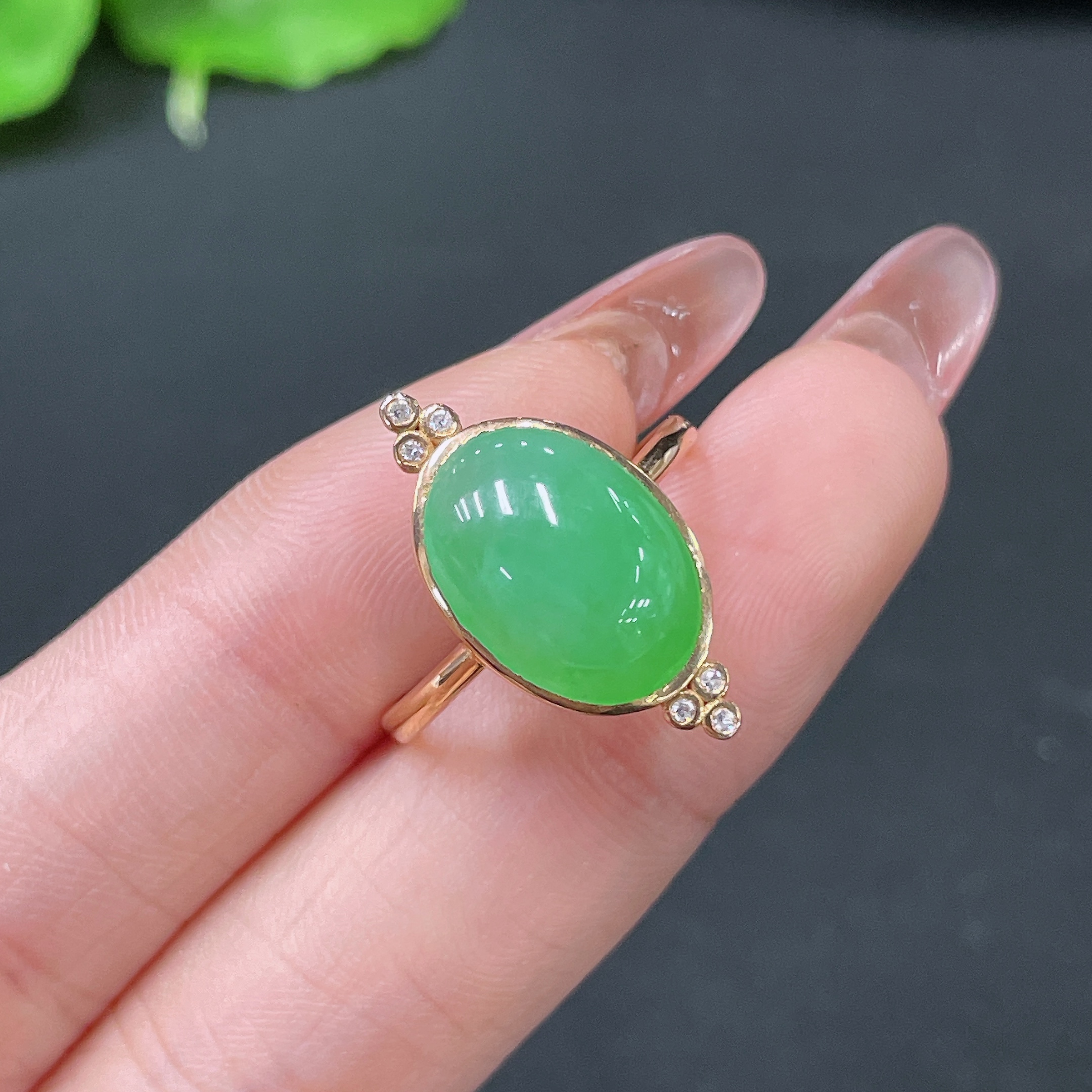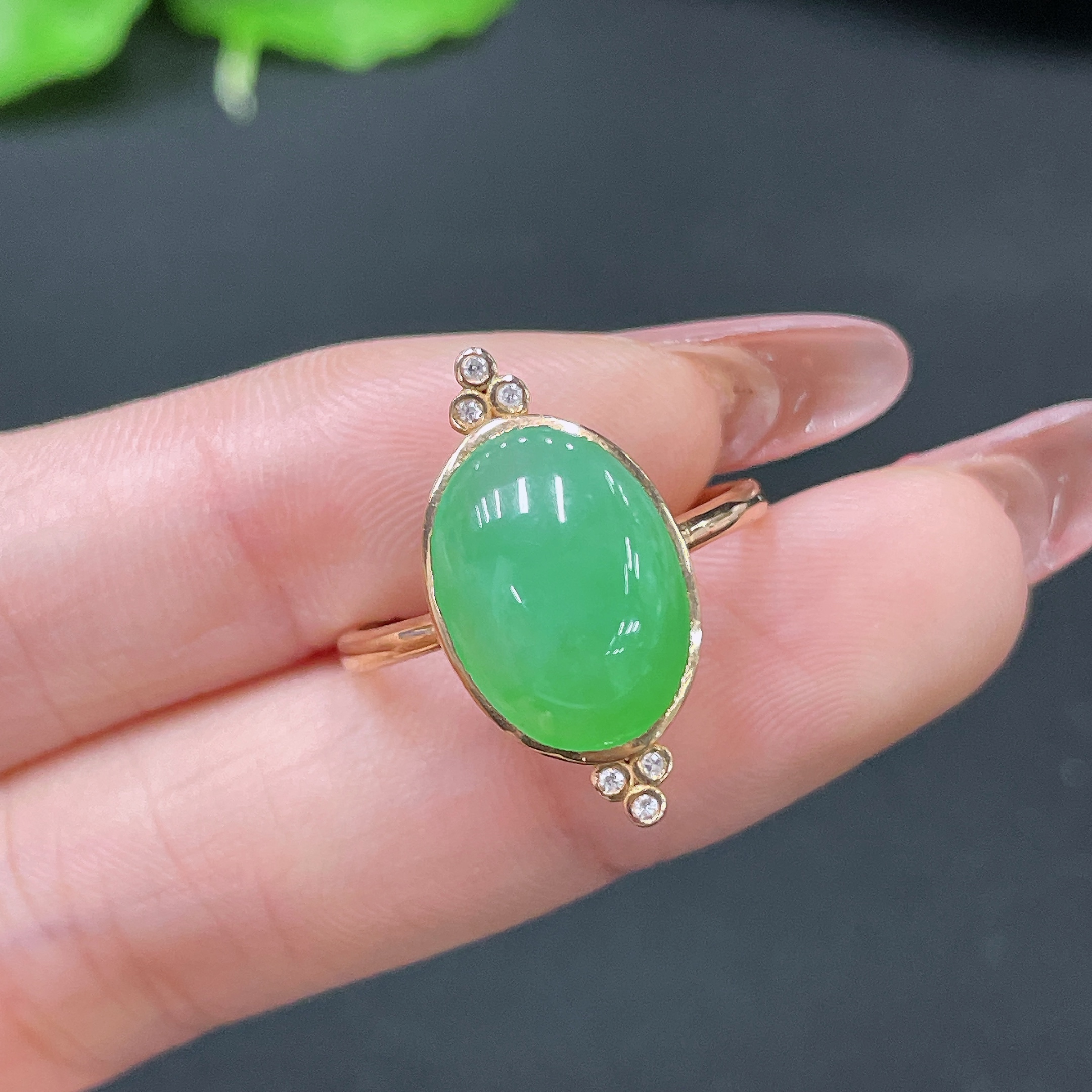 Jadeite Ring 18k Gold Set with Diamonds Total Weight Approx. 3.4g Size 17