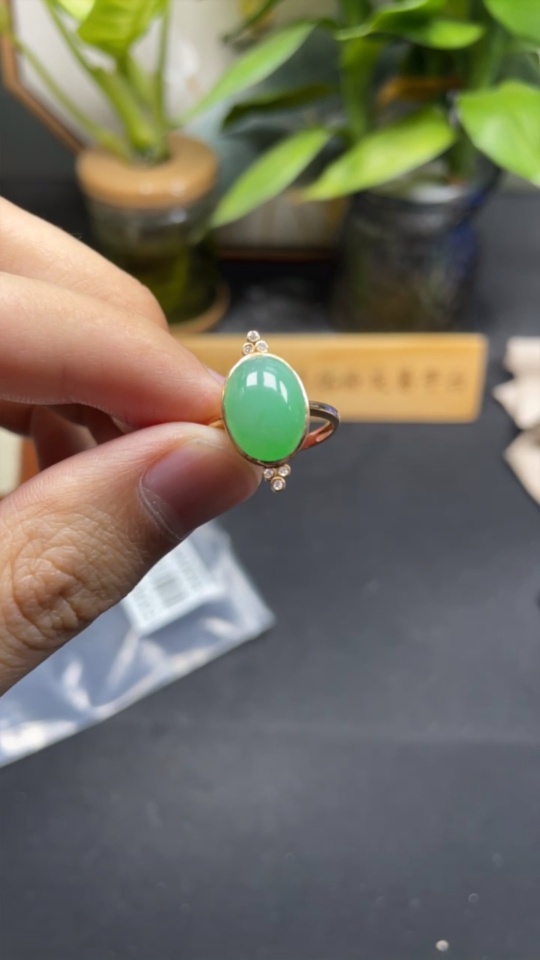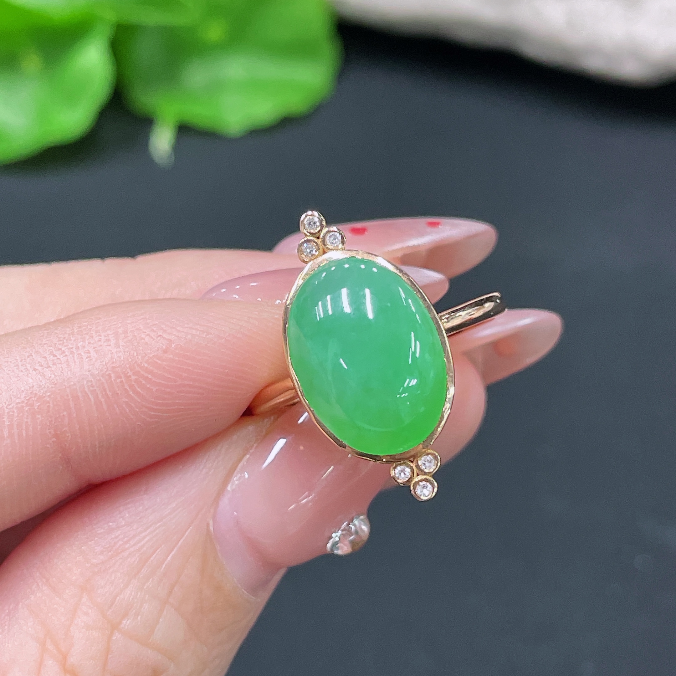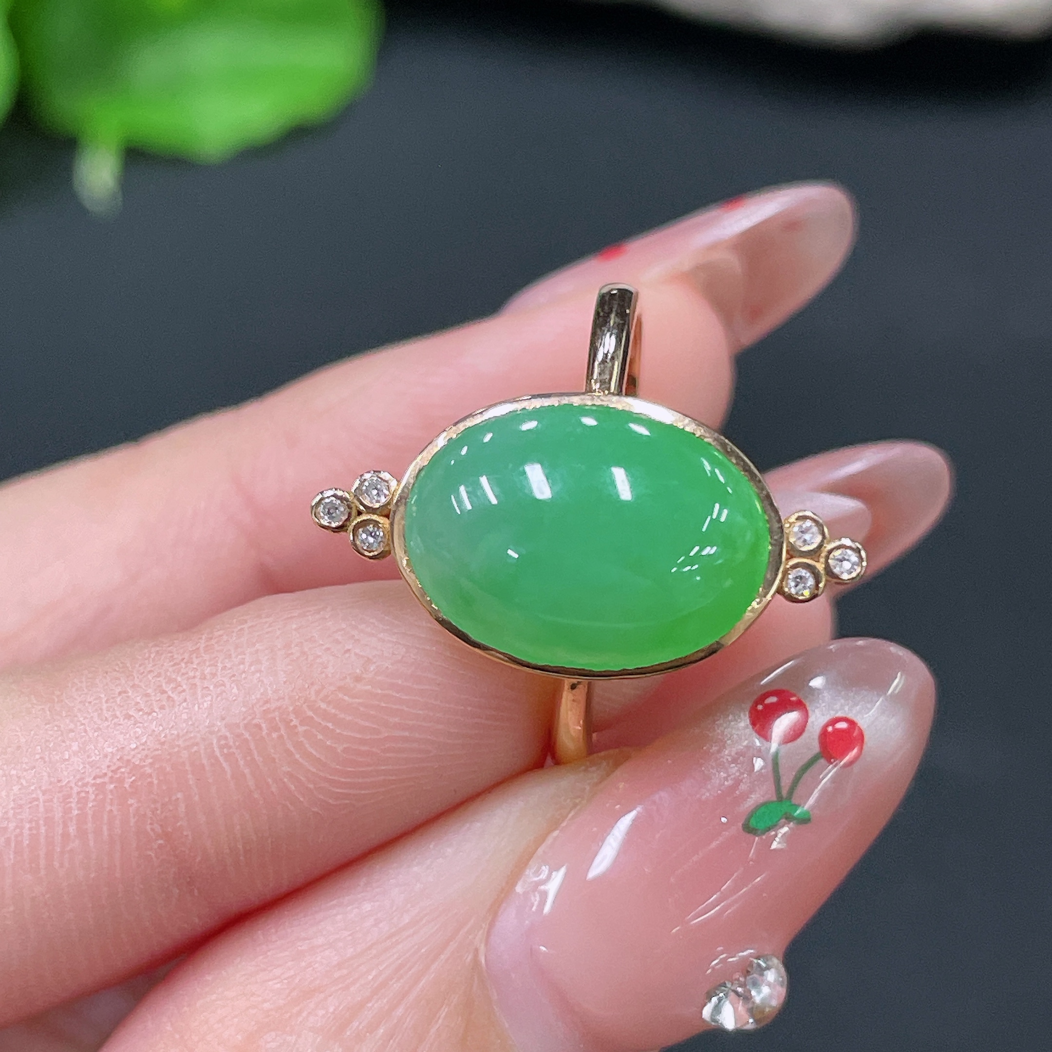 Jadeite Ring 18k Gold Set with Diamonds Total Weight Approx. 3.4g Size 17