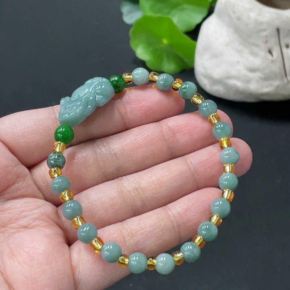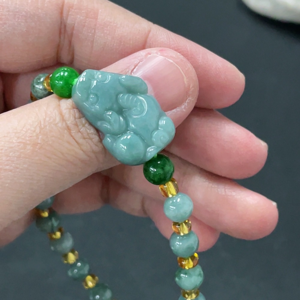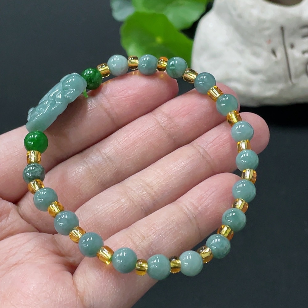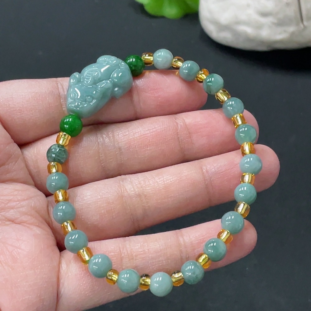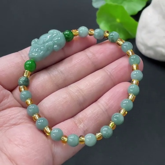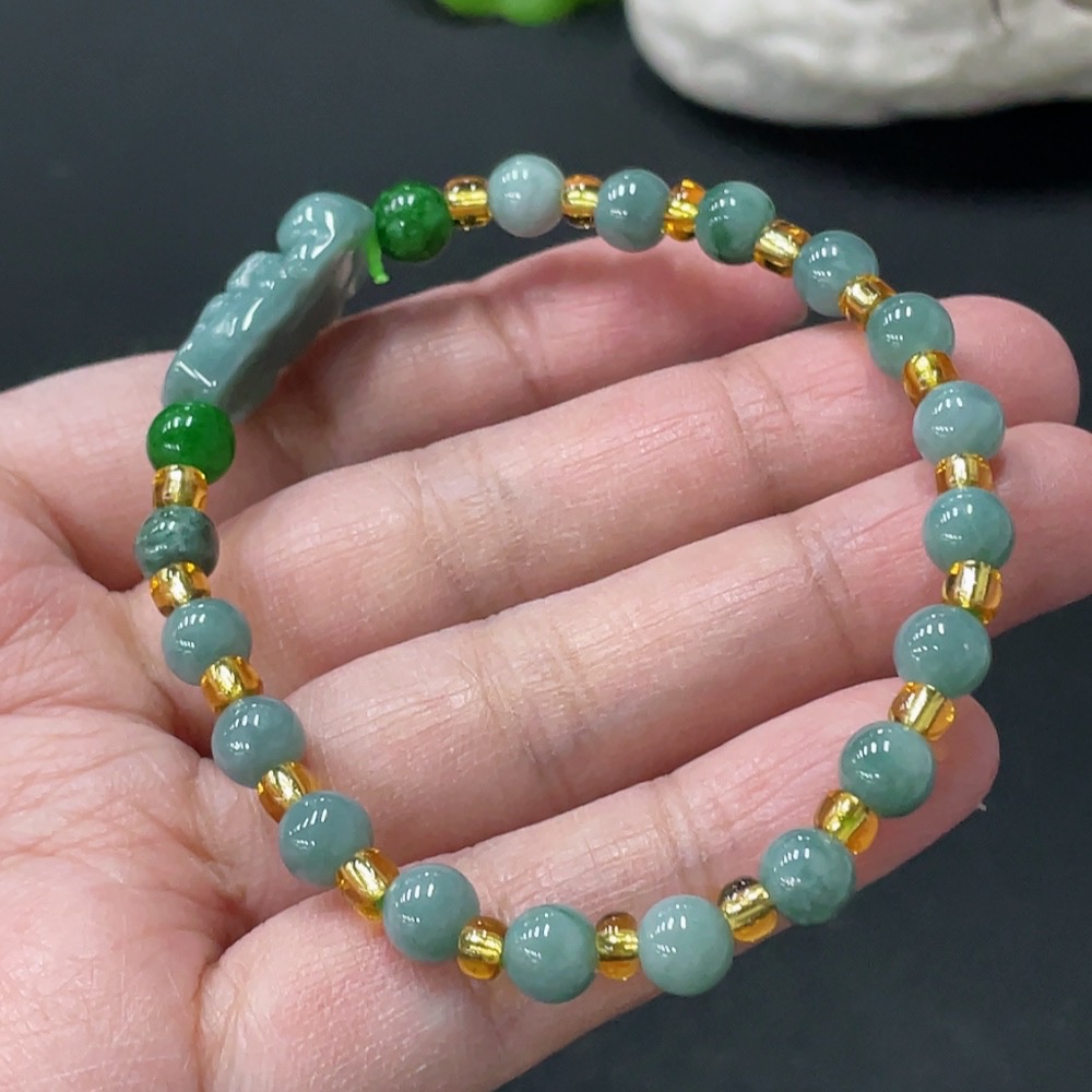 Jadeite Pi Xiu Bracelet Total Weight Approx. 12.57g With Non-Grade A Beads