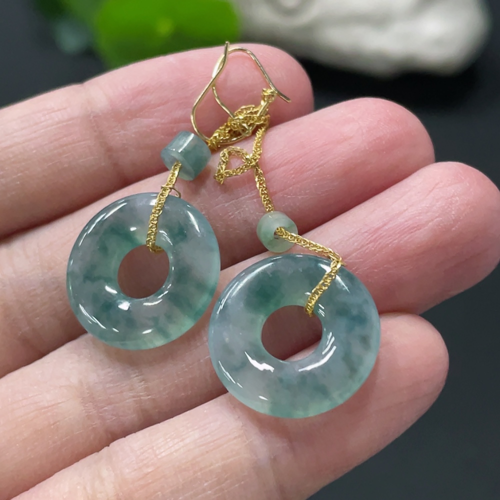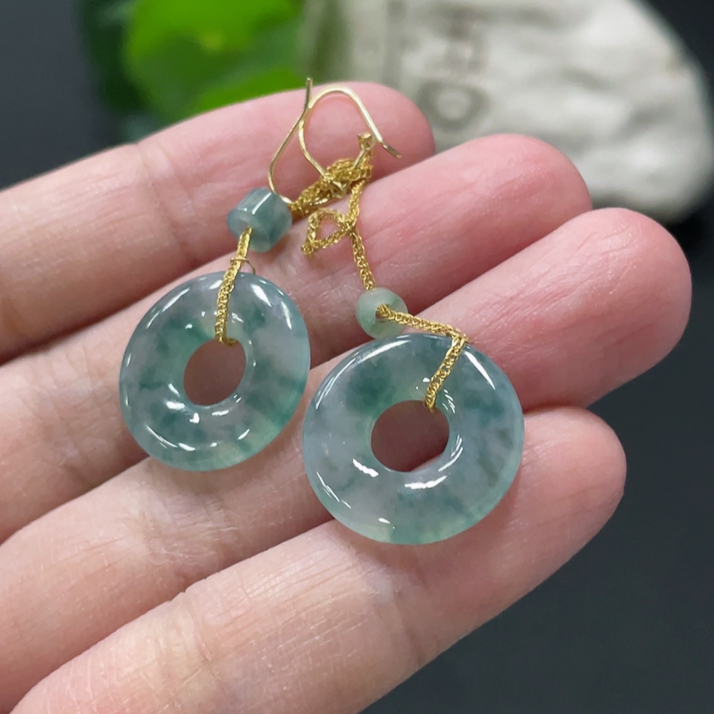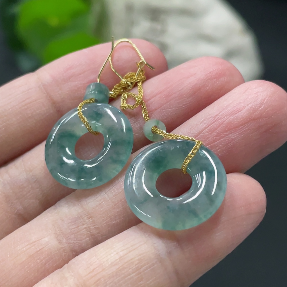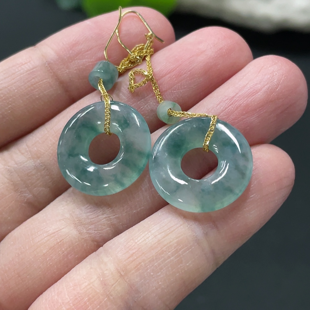 Jadeite Donut Dangle Earrings Pair 18k Gold Inlaid Total Weight Approx. 3.6g