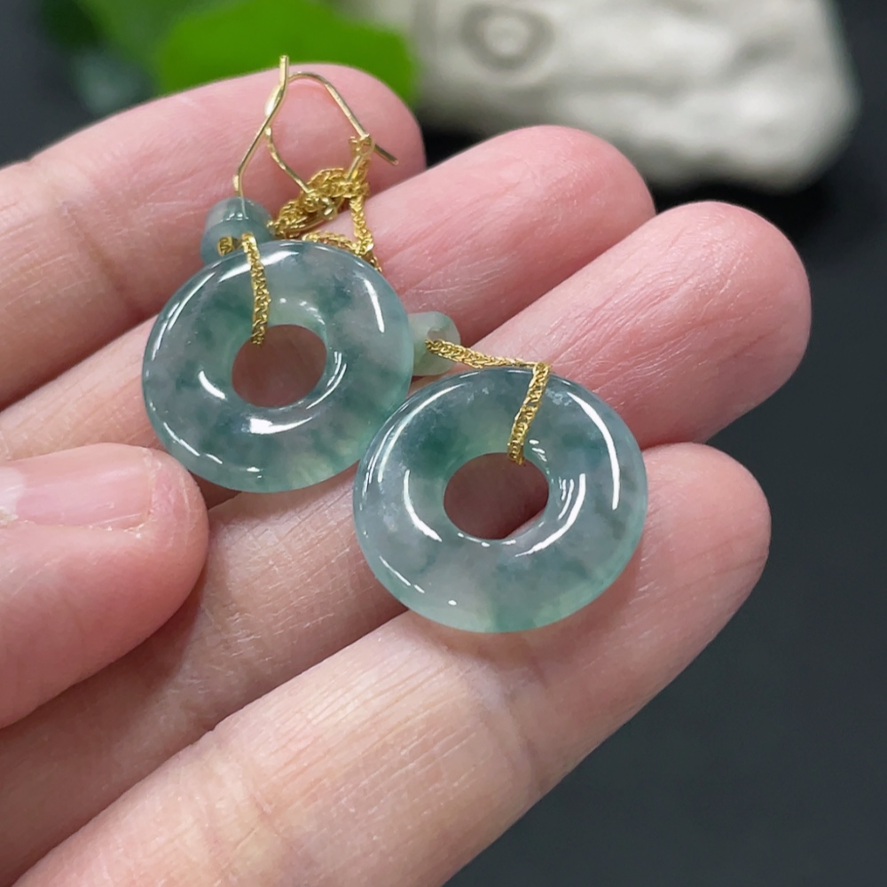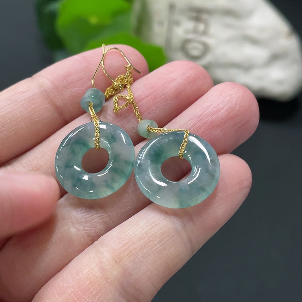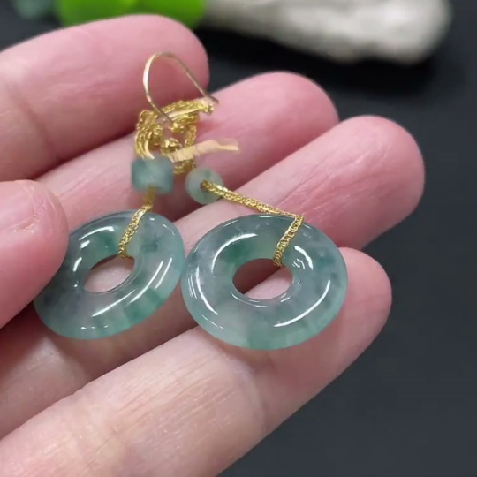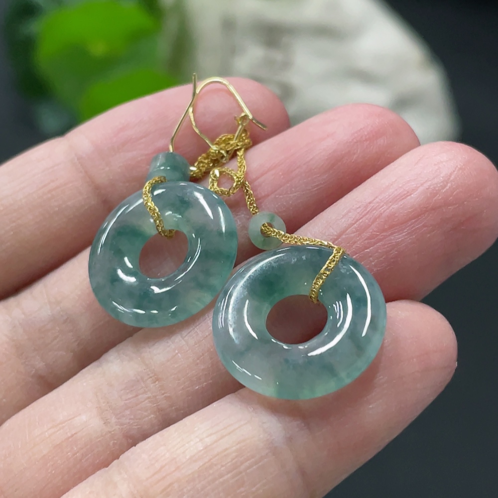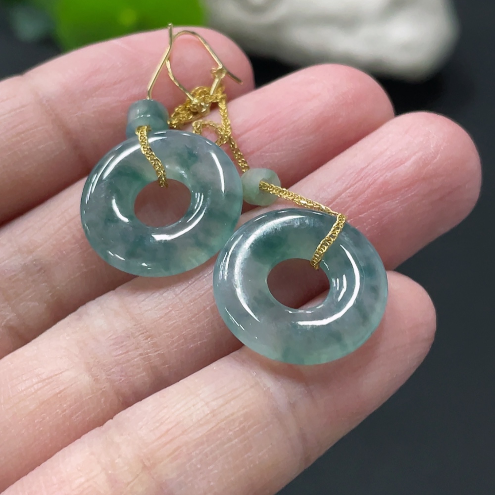 Jadeite Donut Dangle Earrings Pair 18k Gold Inlaid Total Weight Approx. 3.6g