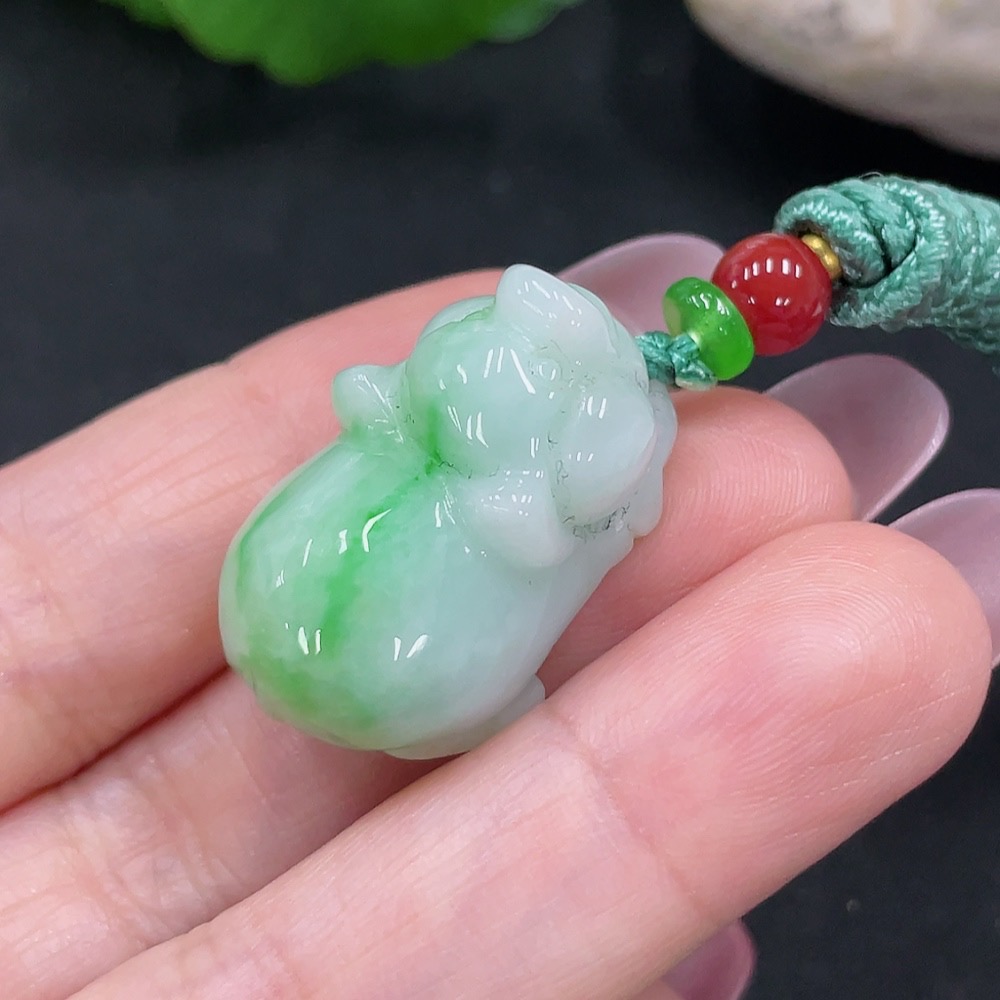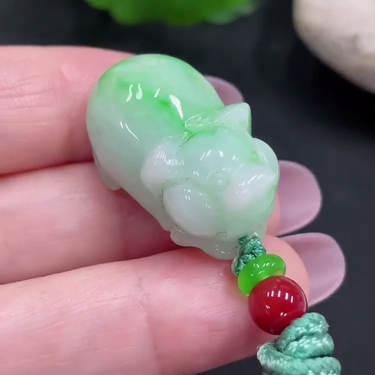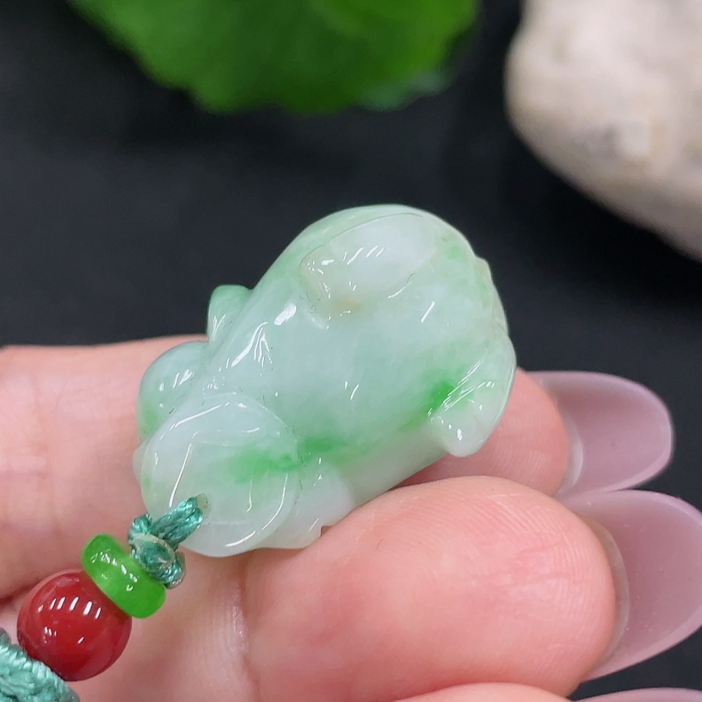Jadeite Pig Pendant Total Weight Approx. 14.2g Including Rope Weight With Non-A Grade Beads