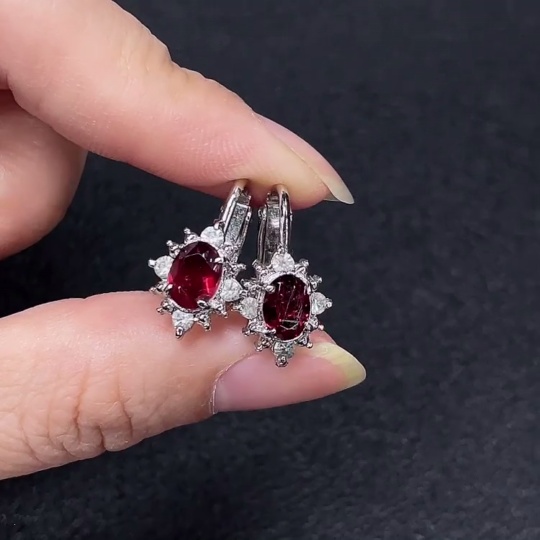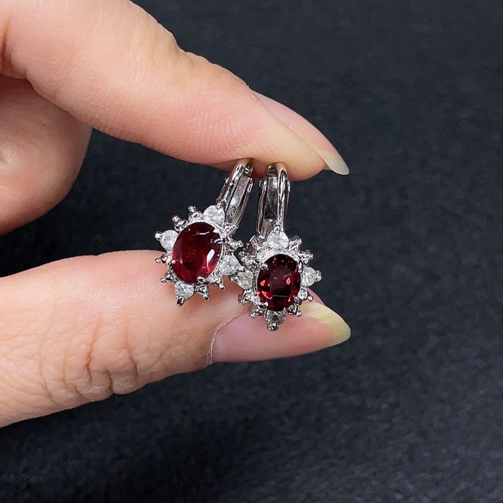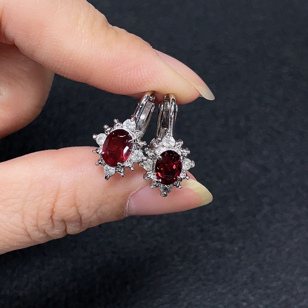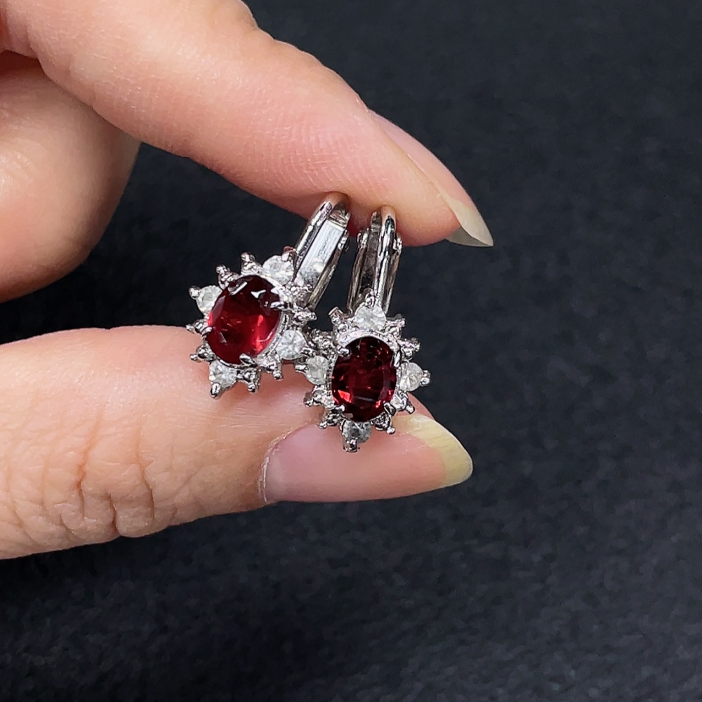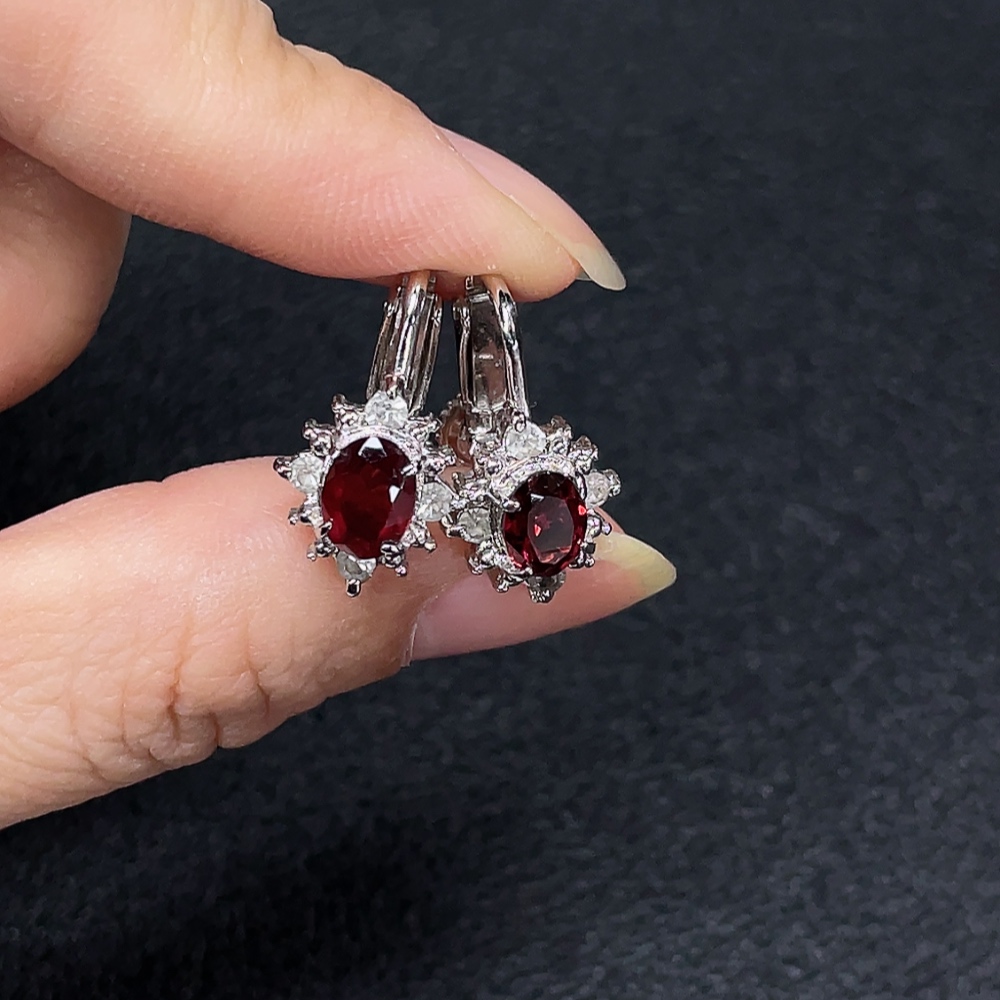 Garnet Earrings Non-Gold Total Weight Approx. 4.47g