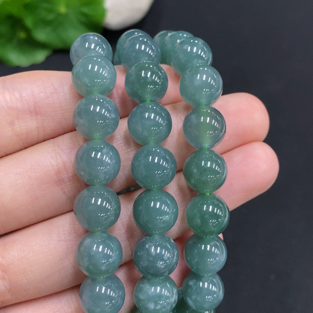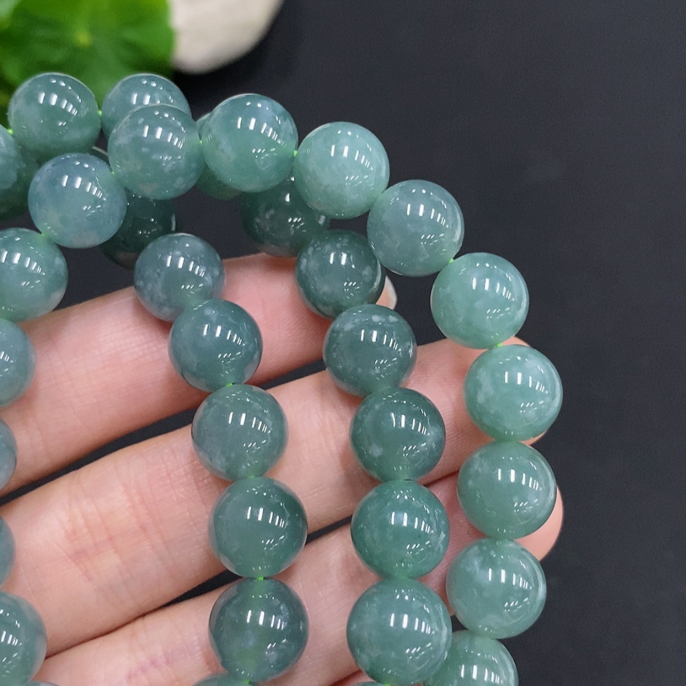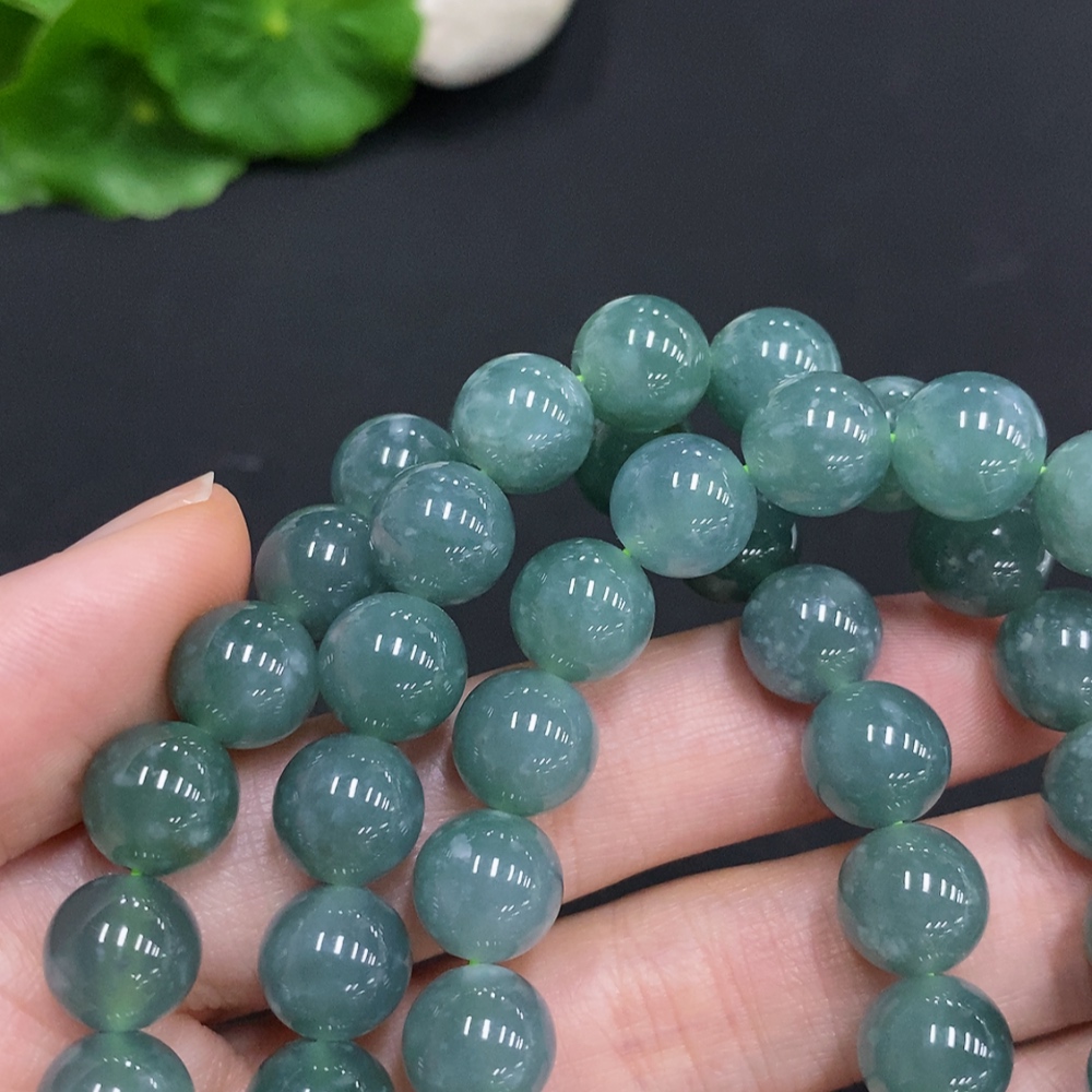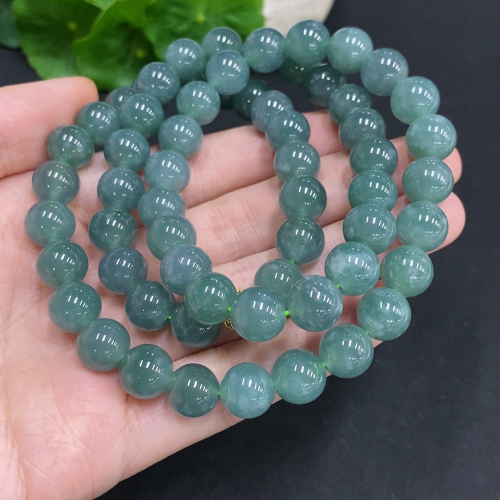 Jadeite Bead Necklace Approx.9.6mm Non-Gold Total Weight Approx.102.6g