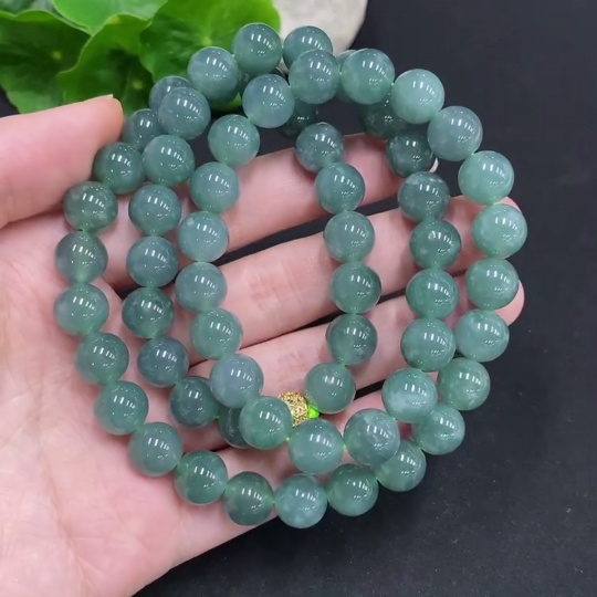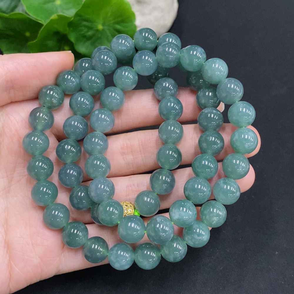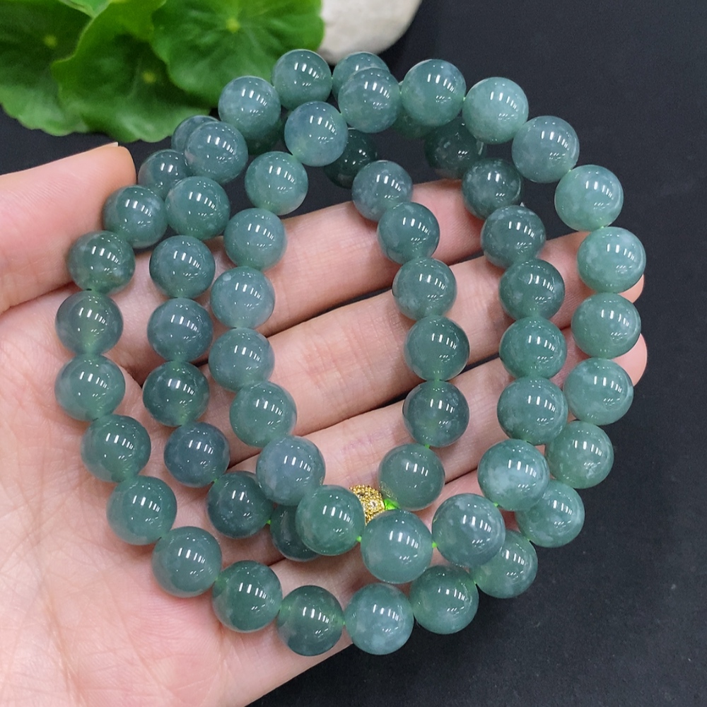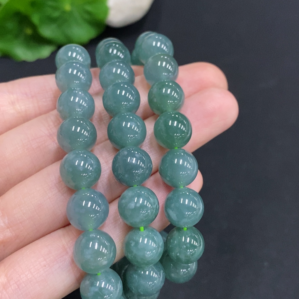 Jadeite Bead Necklace Approx.9.6mm Non-Gold Total Weight Approx.102.6g