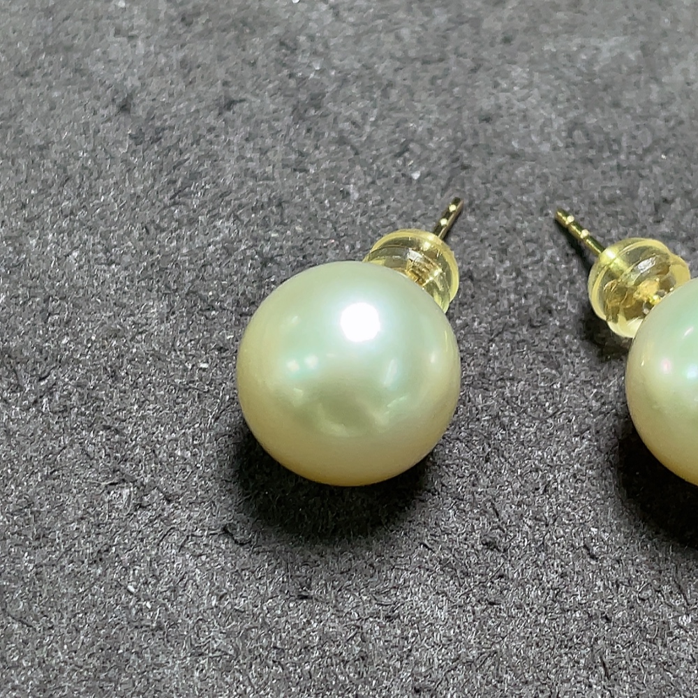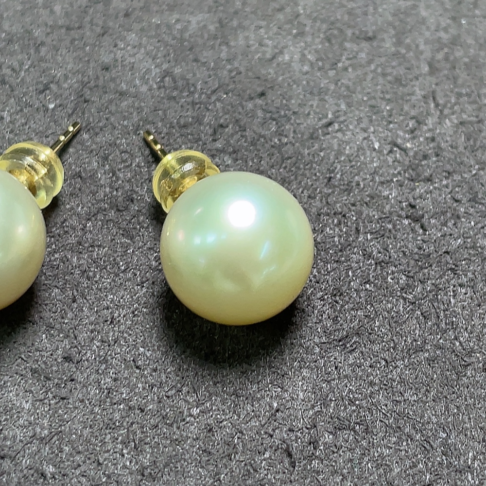 Seawater pearl earrings, color origin undetermined, 18k gold, total weight approximately 5.39g