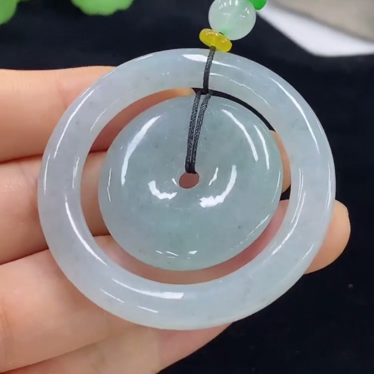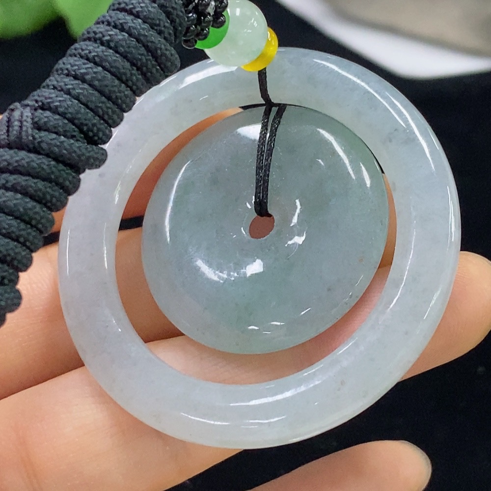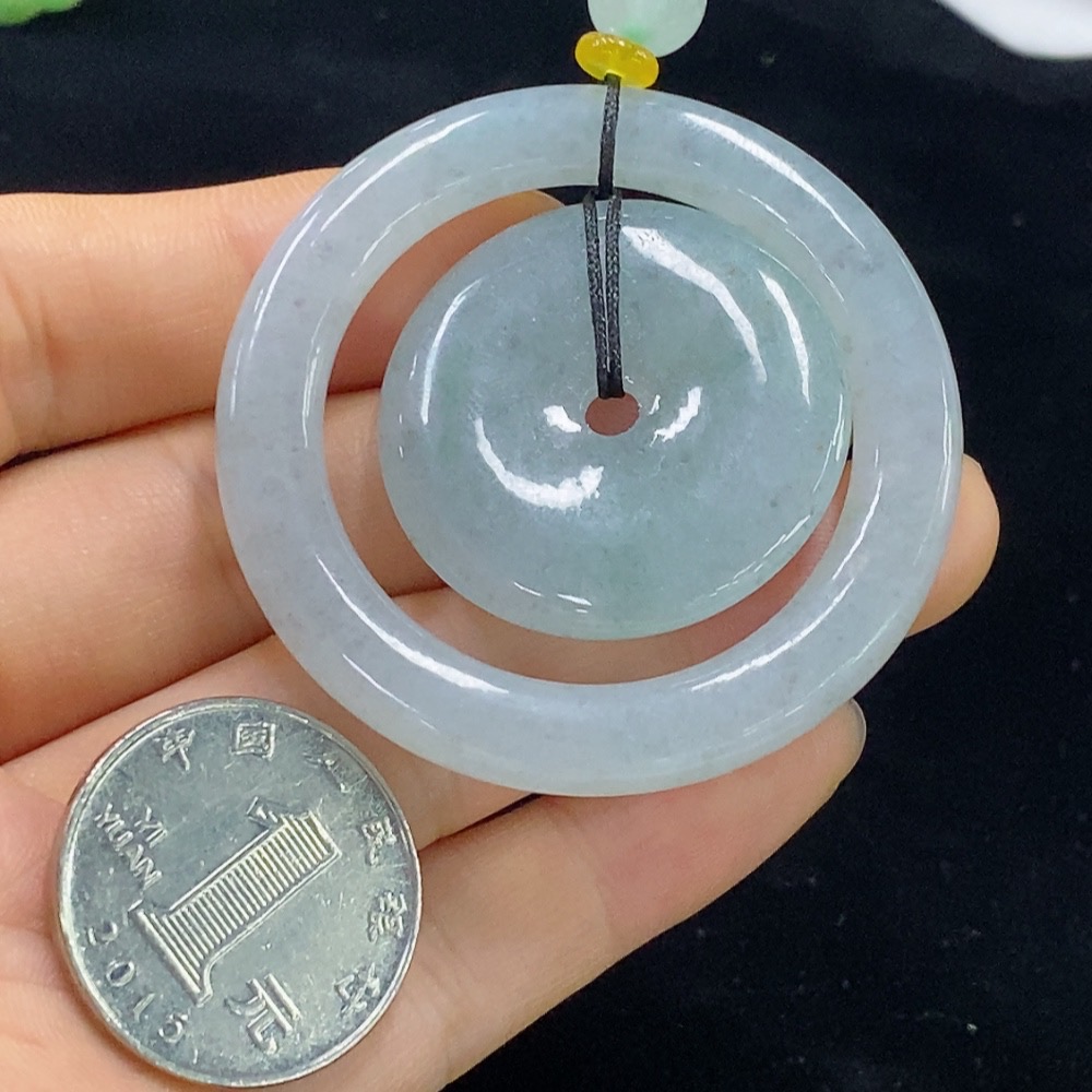 Jadeite Pendant Mother-and-Child Clasp with Cord Total Weight Approx. 28.88g