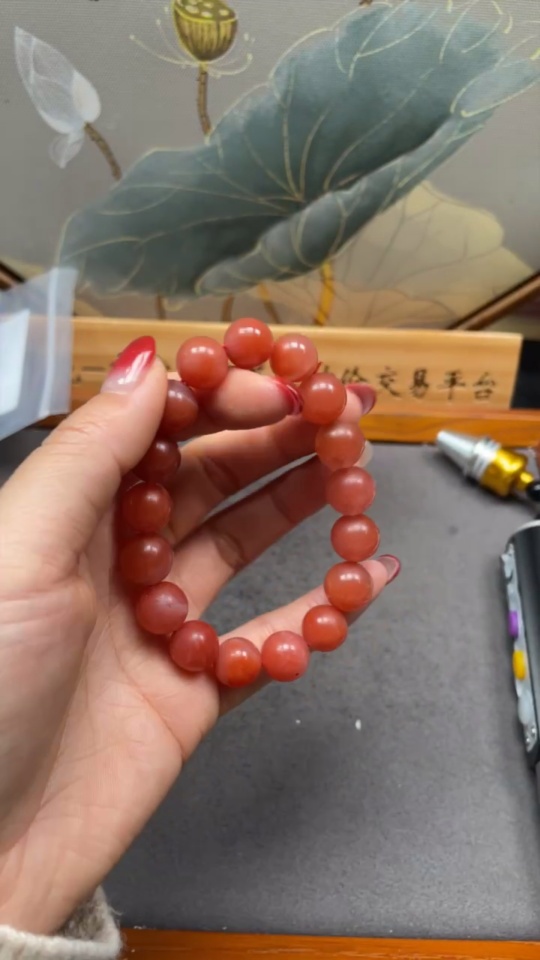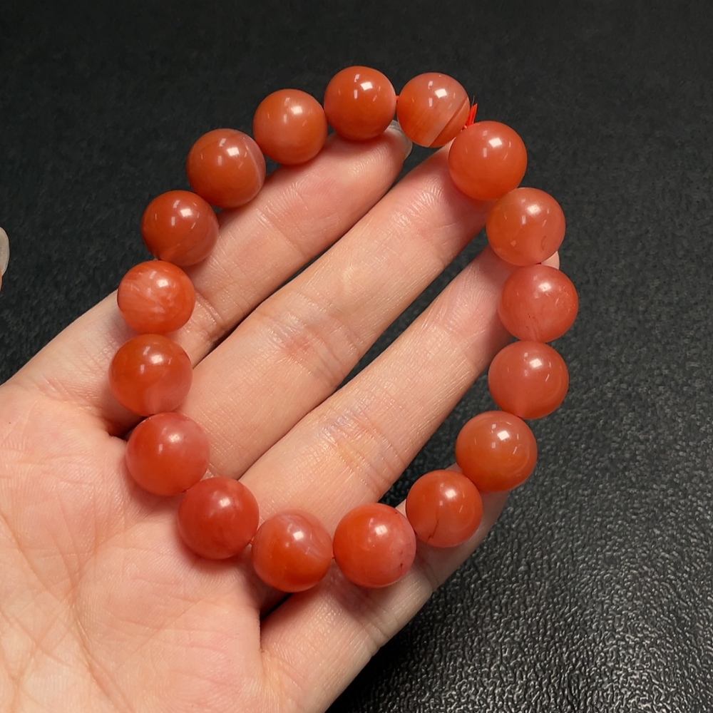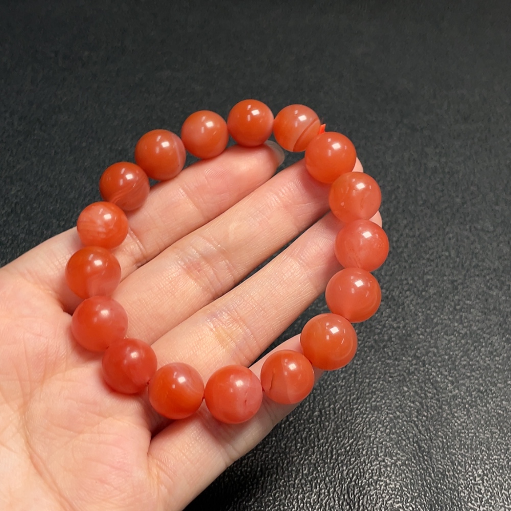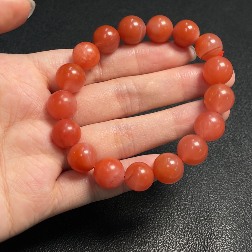 Red Agate Bracelet with Visible Organic Matter, Total Weight Approx. 36.18g, Size ~11.2mm