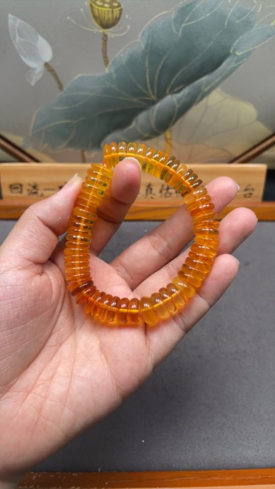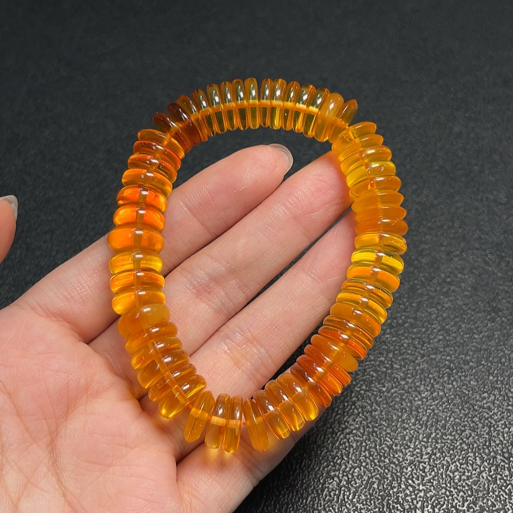Amber and beeswax bracelet, total weight approximately 17.44g, bead size about 11.4mm