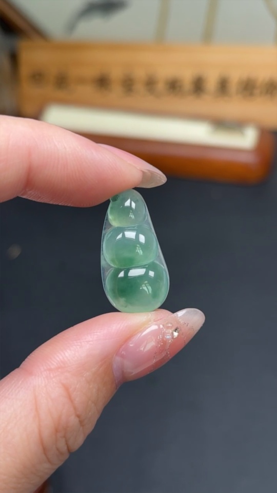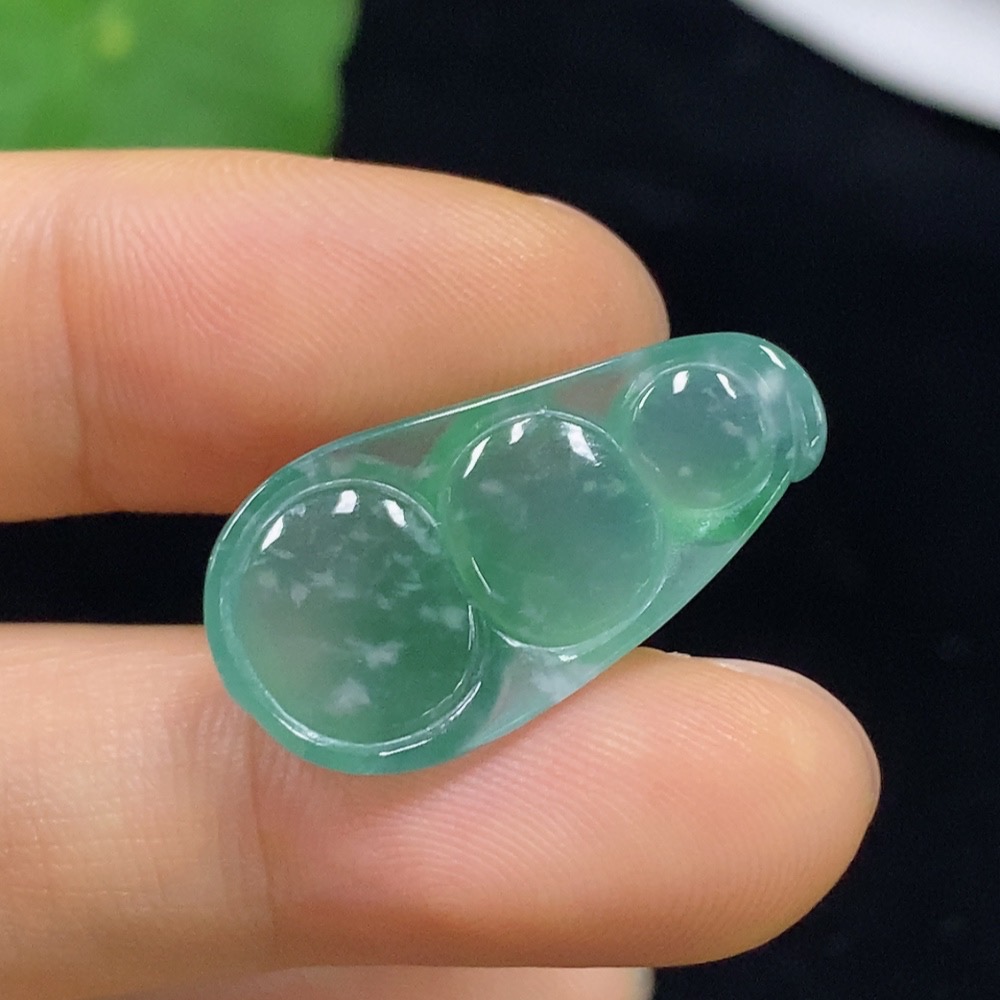 Jadeite auspicious bean inlay piece, total weight about 3.13g