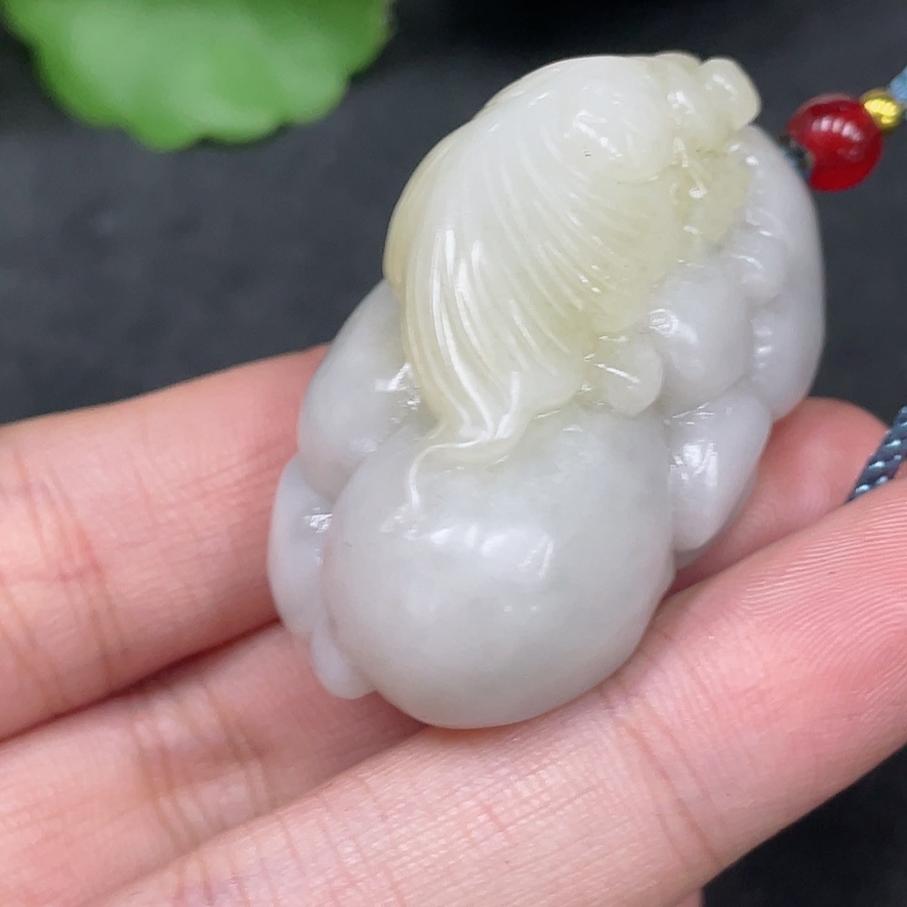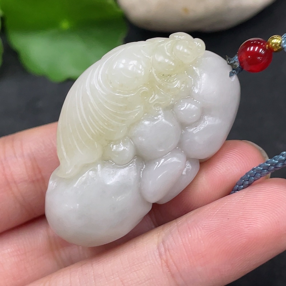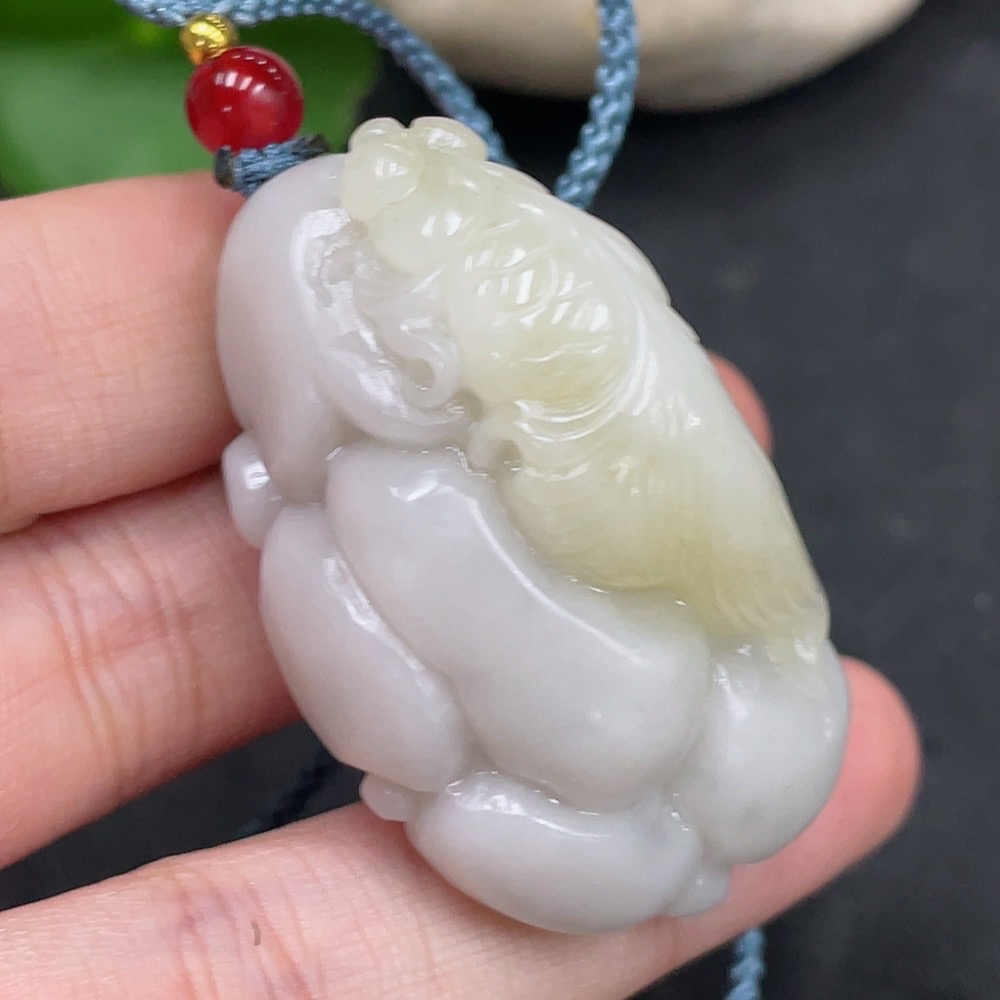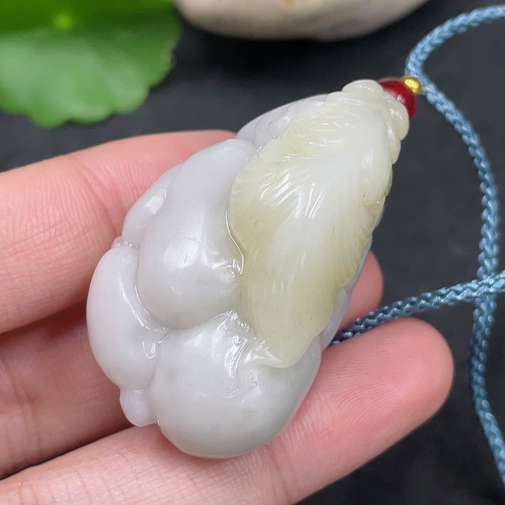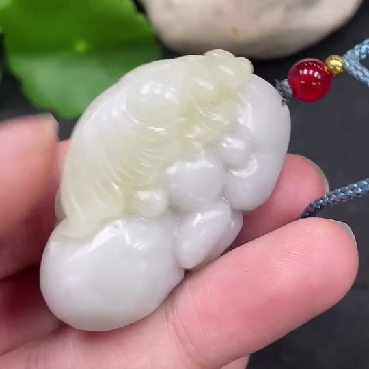 Trezaar - Hetian Jade Pendant - Abundance Every Year with Other Mineral Components, Beads Not Hetian Jade, Total Weight Approximately (Including Rope) 38g