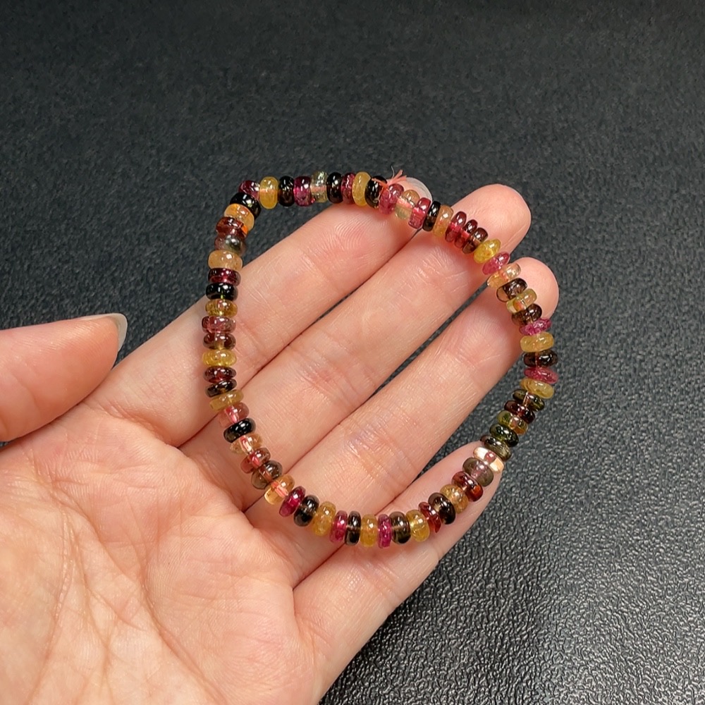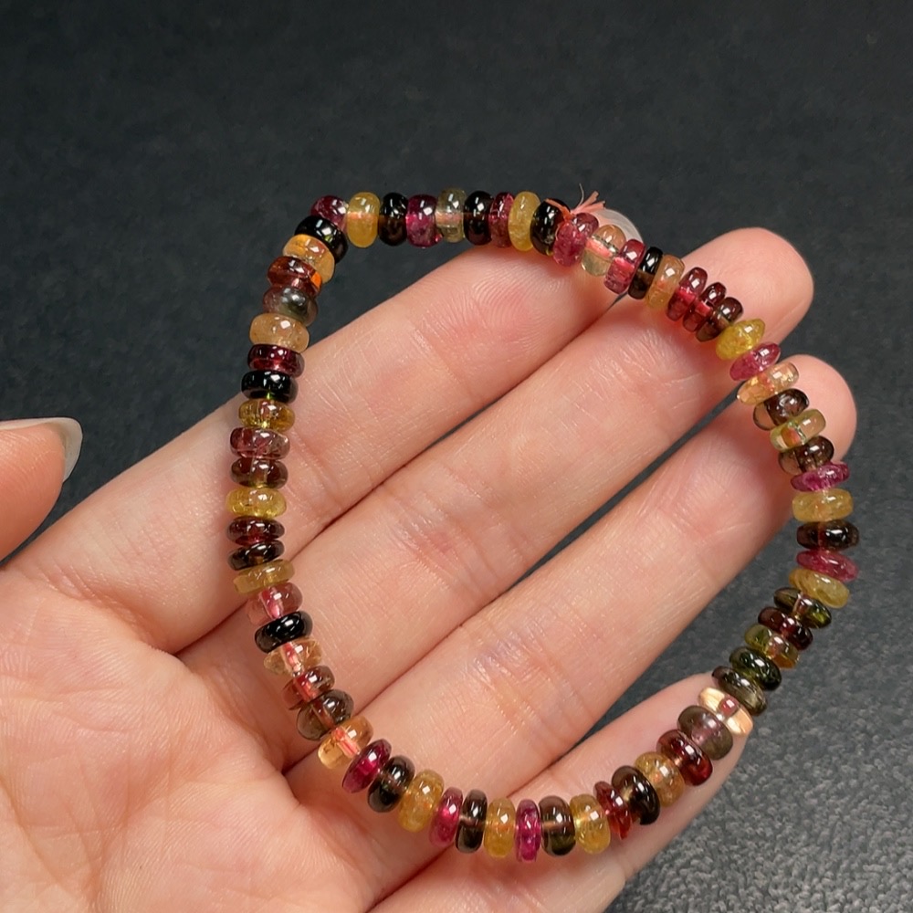 Tourmaline Bracelet with Visible Organic Inclusions, Total Weight Approx. 11.1g, Size About 15.8mm
