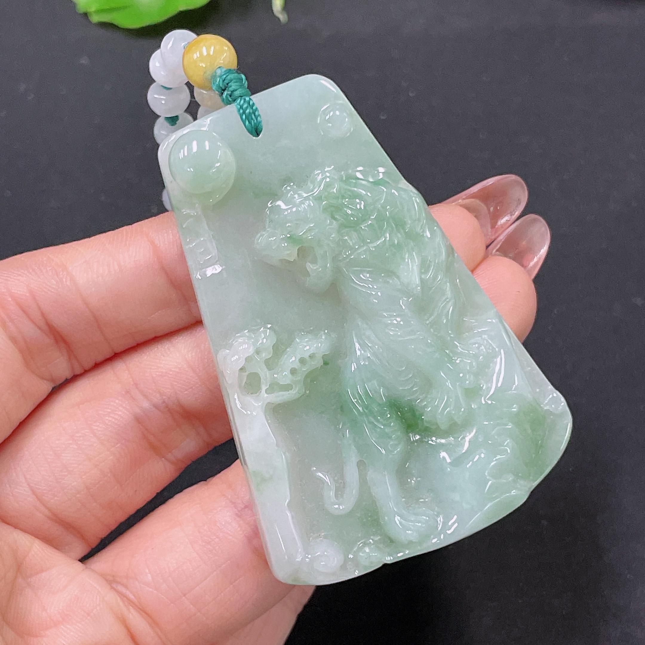 Jadeite Pendant - Mountain-climbing Tiger, Total Weight Approx. 67.96g