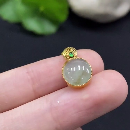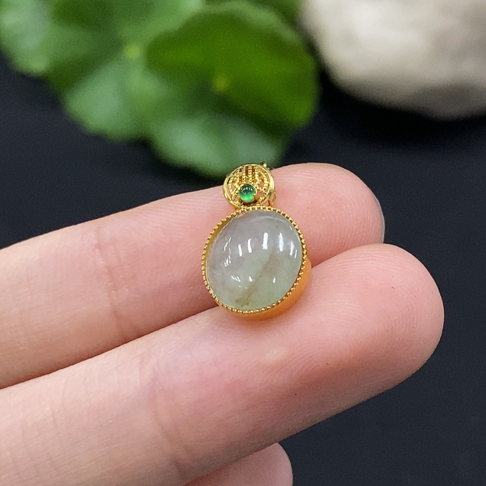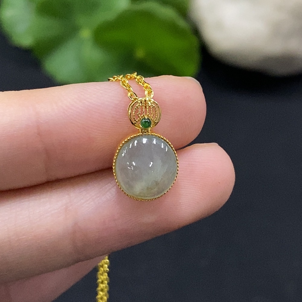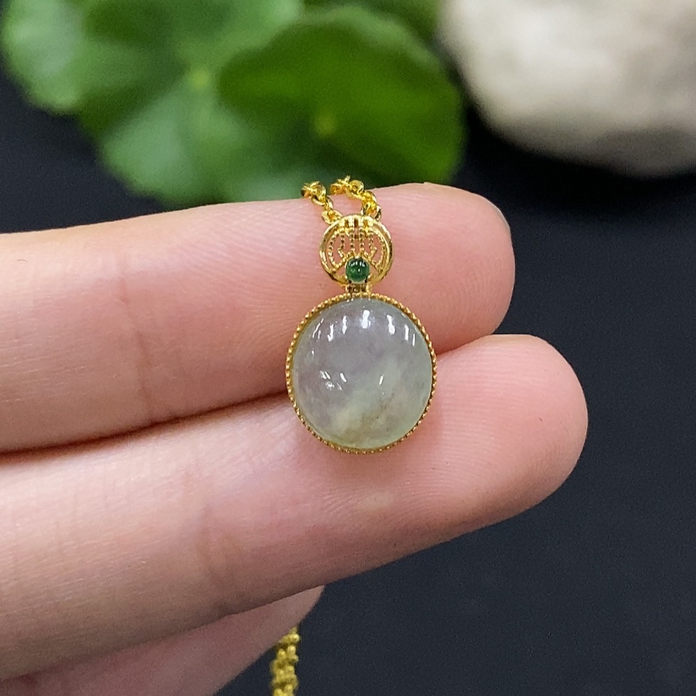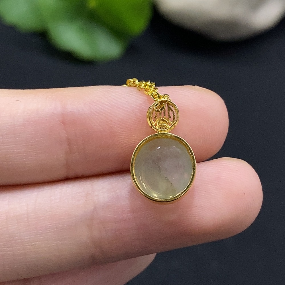 Jadeite Inlaid Pendant Chain Not Gold, Pendant 18K Gold Total Weight Approx. 0.9g (Excluding Chain Weight)