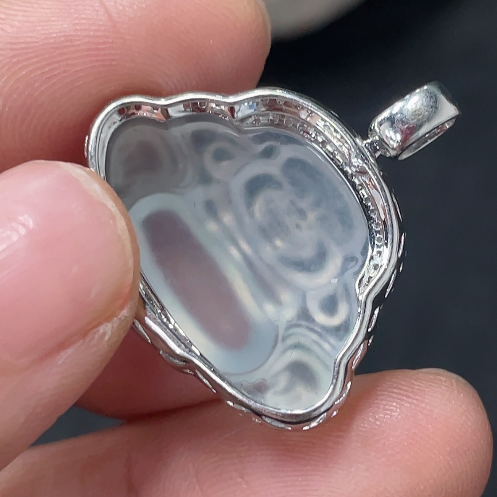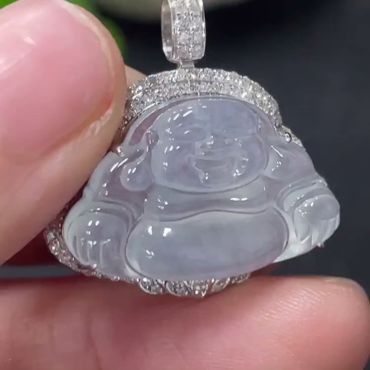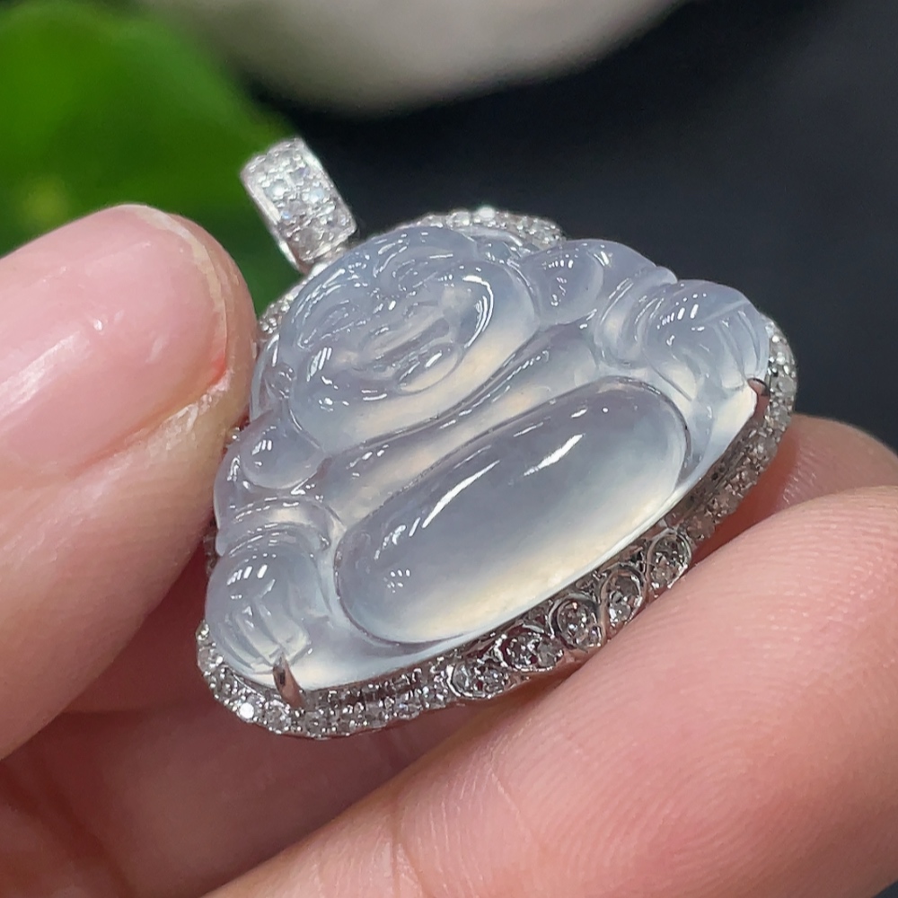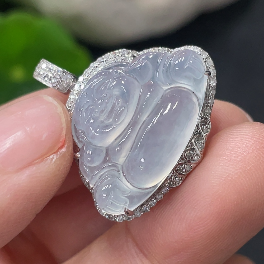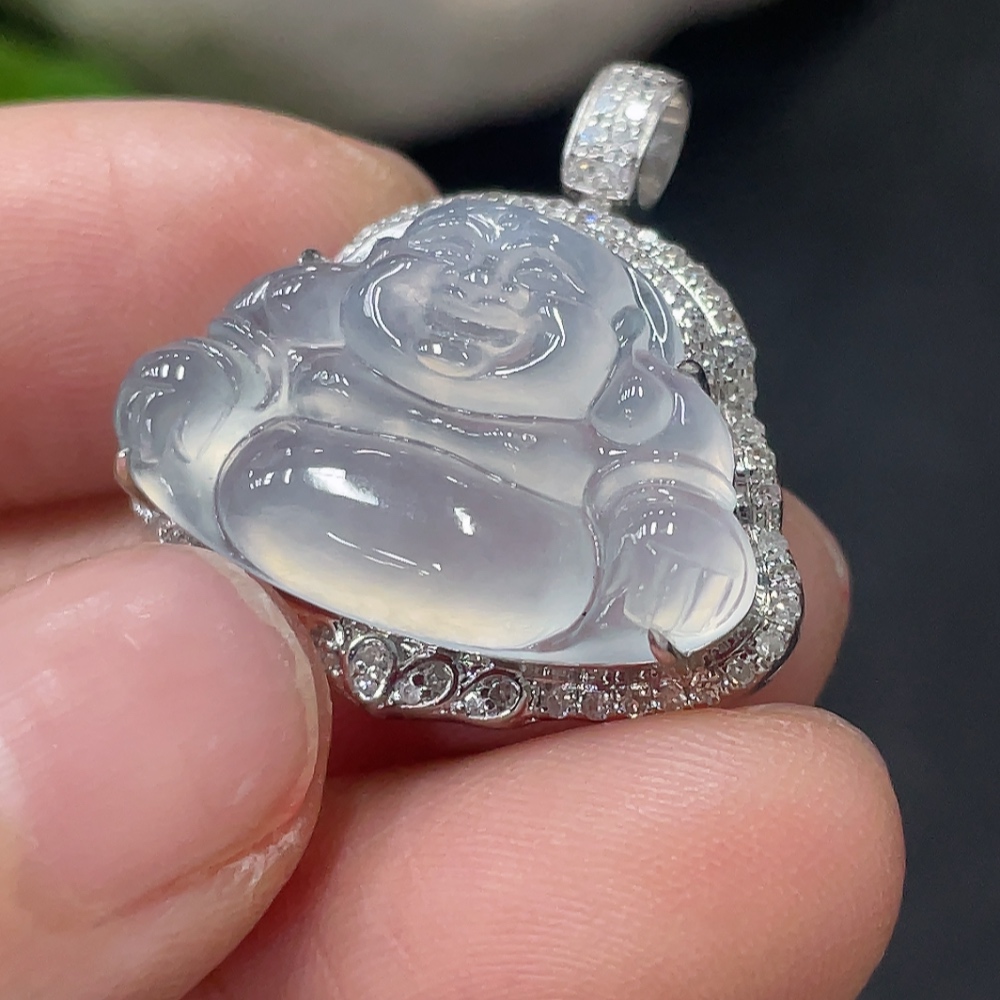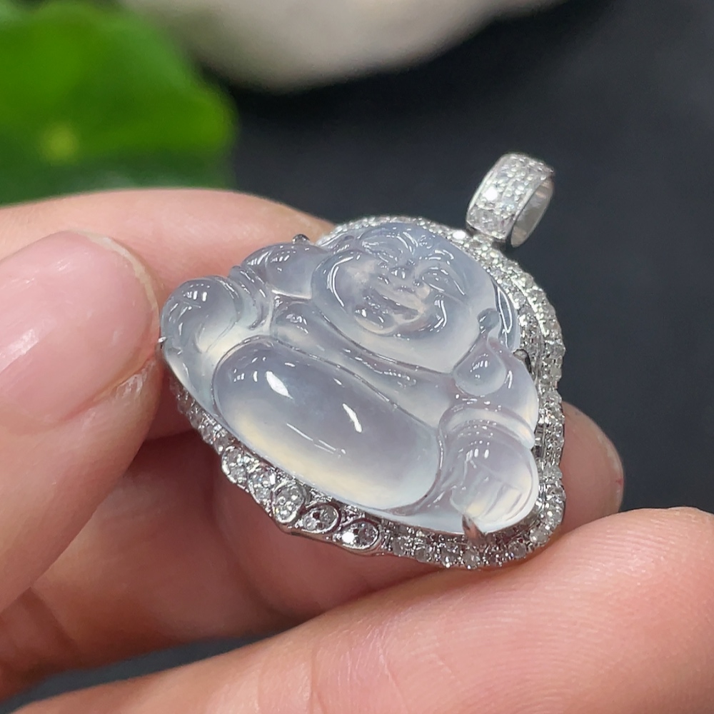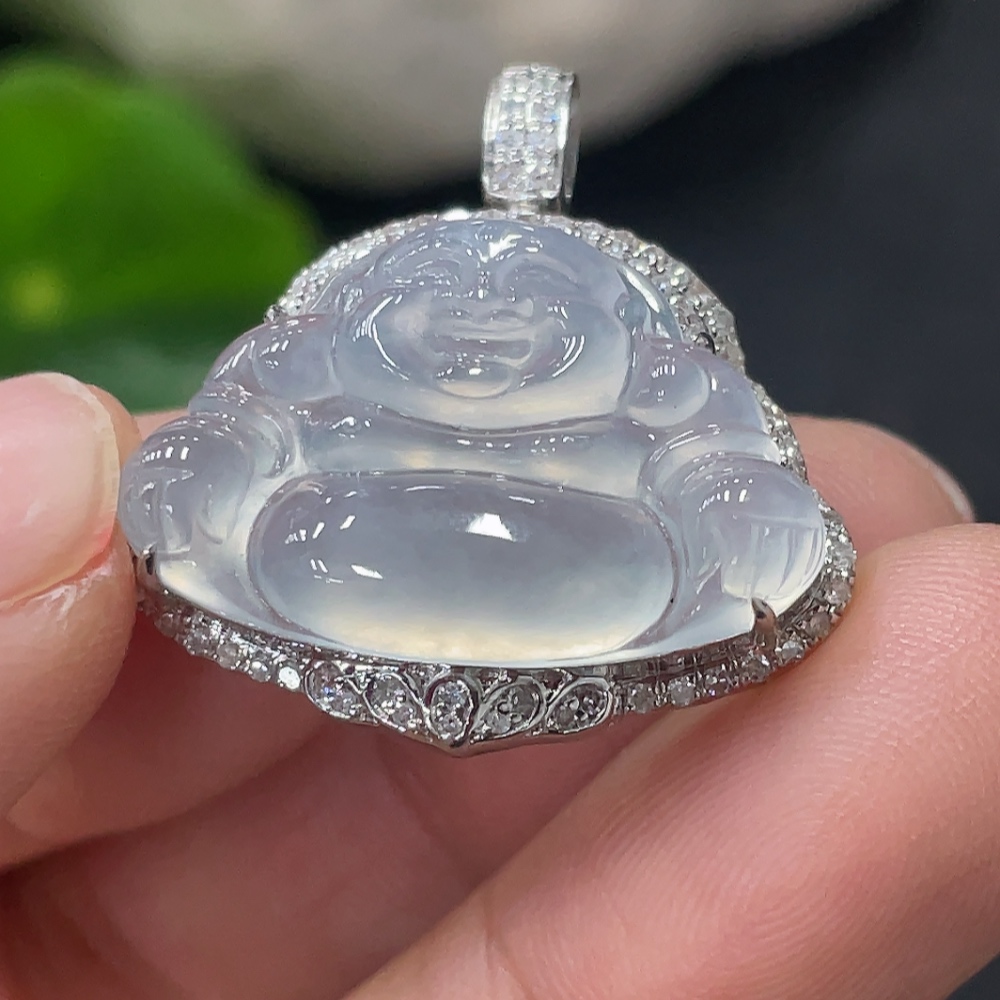 Jadeite Buddha Pendant Set in 18K Gold Total Weight Approx.4g (With Diamond Accents)