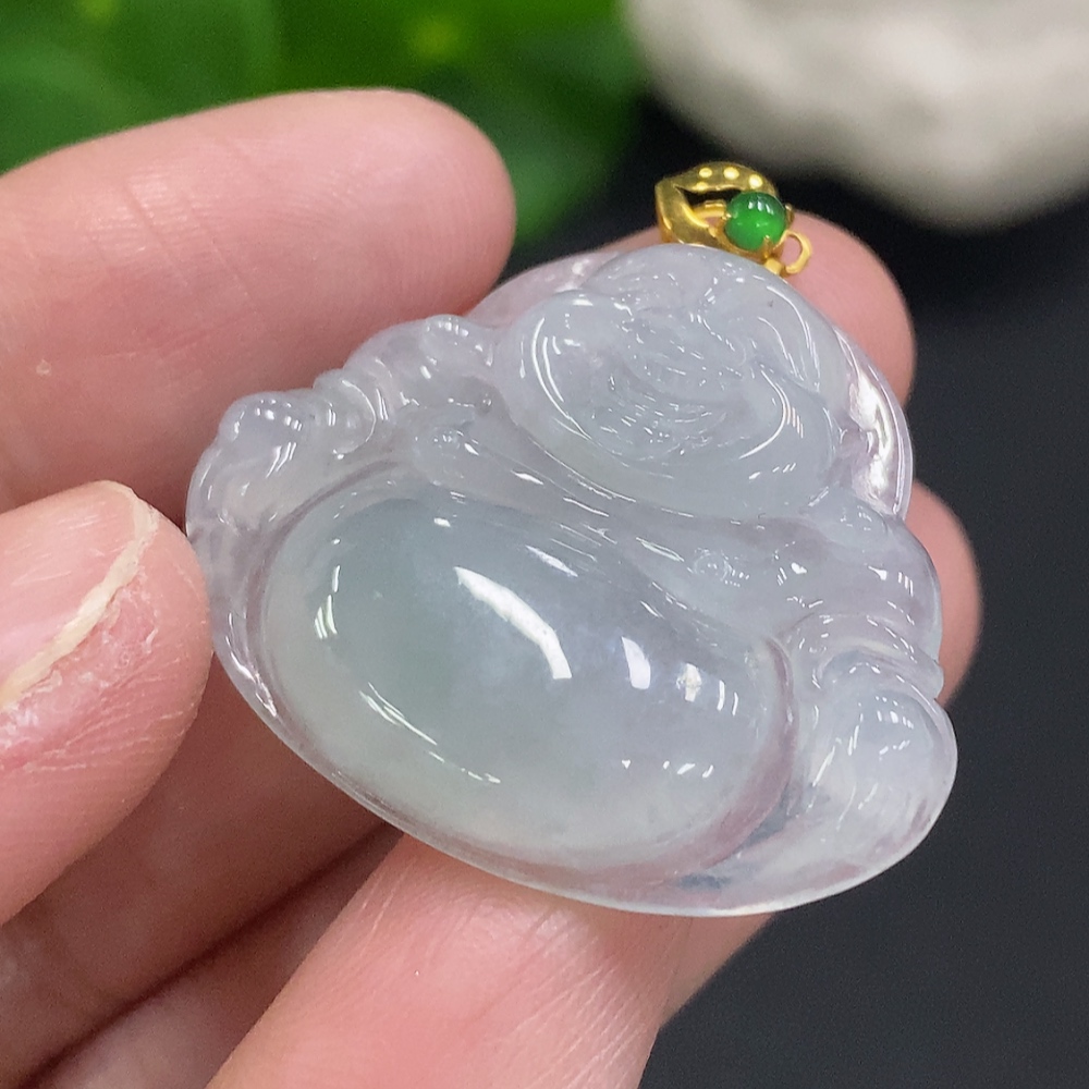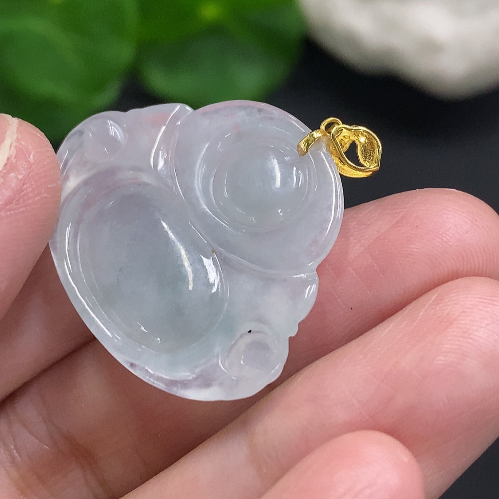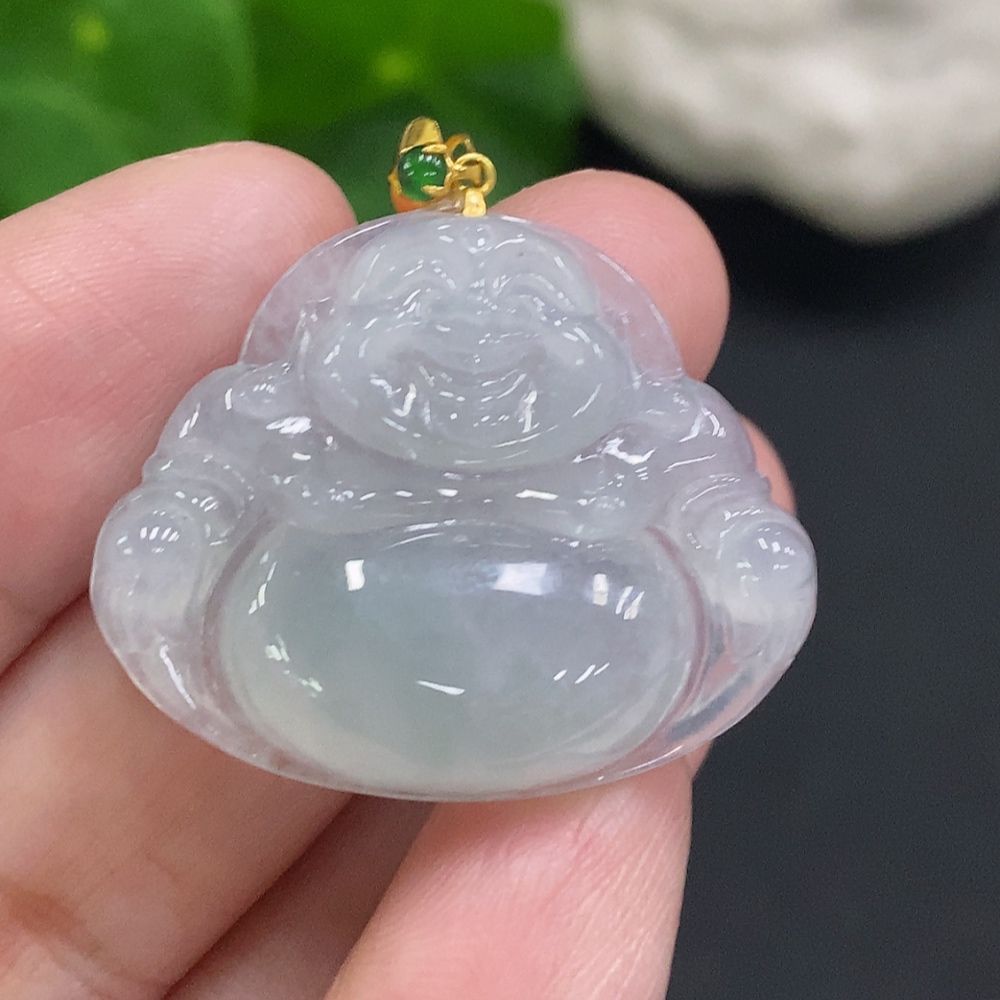 Jadeite Buddha Pendant with 18K Gold Clasp, Total Weight Approximately 6.4g