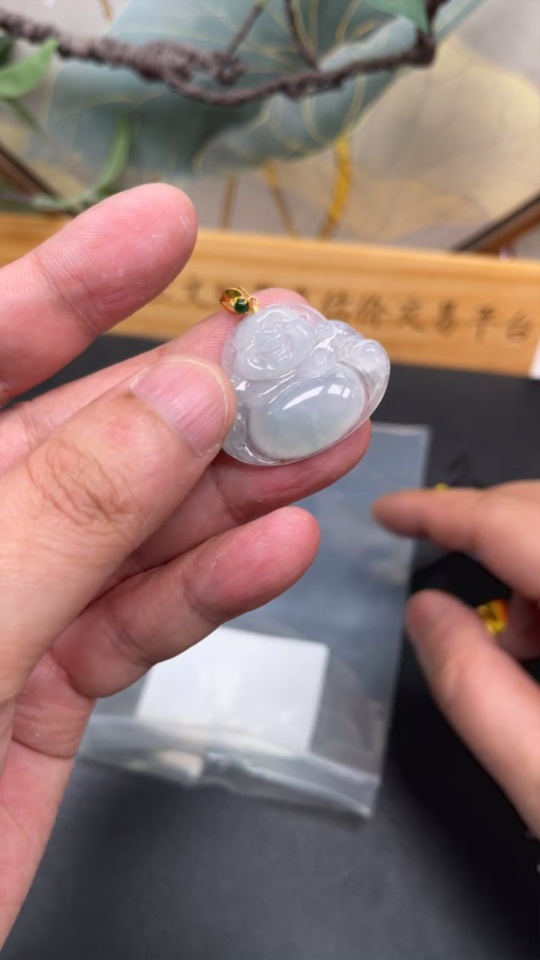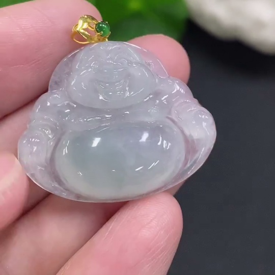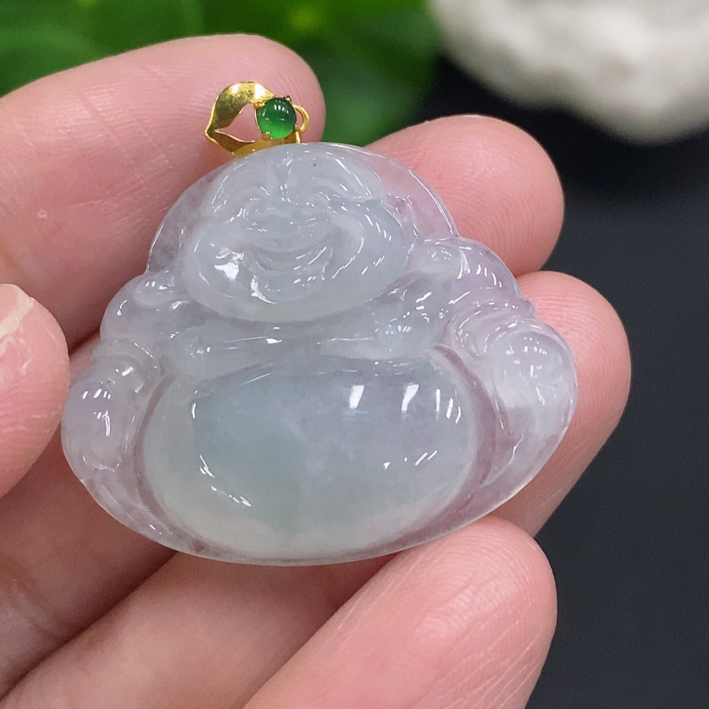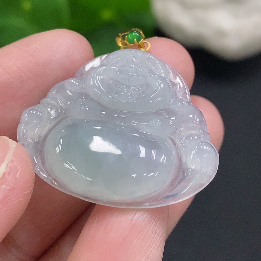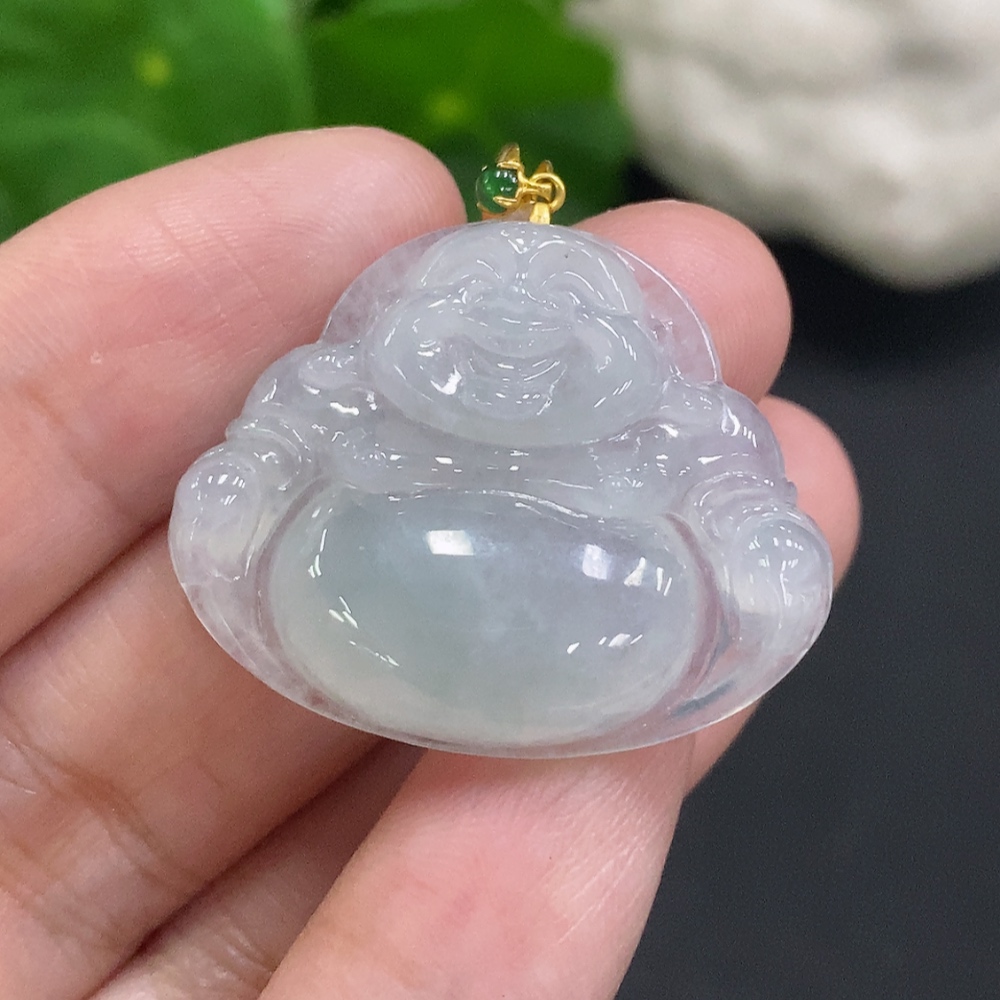 Jadeite Buddha Pendant with 18K Gold Clasp, Total Weight Approximately 6.4g