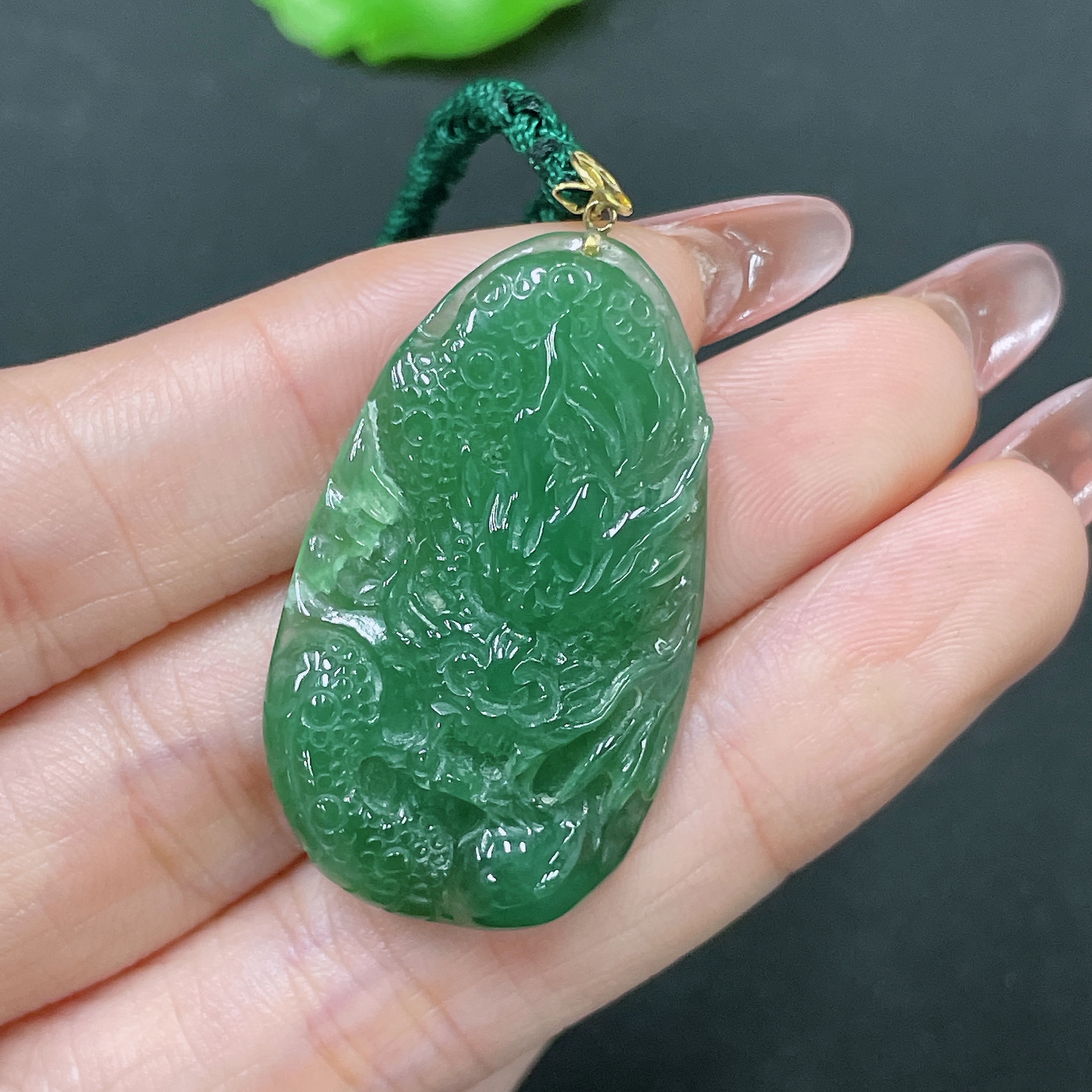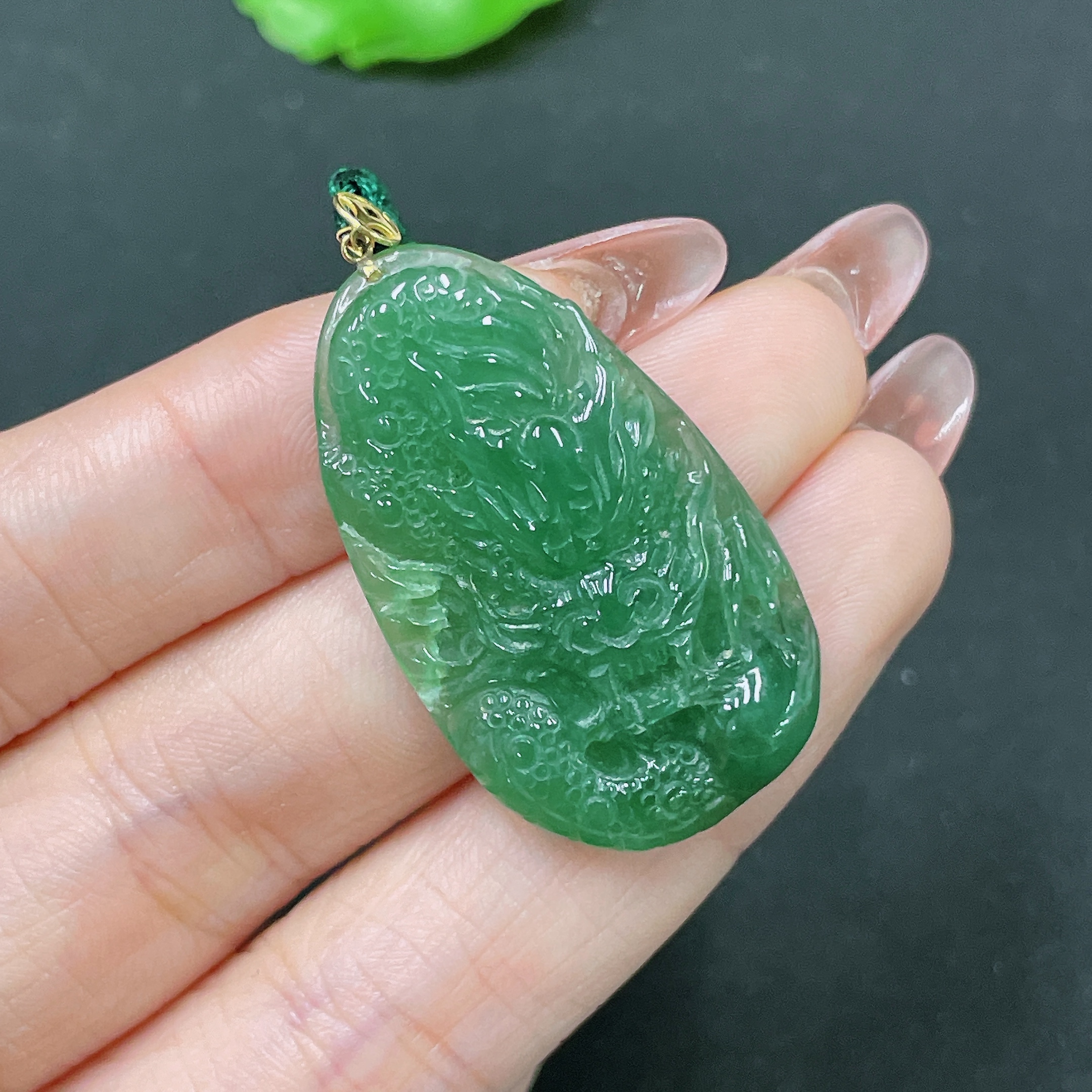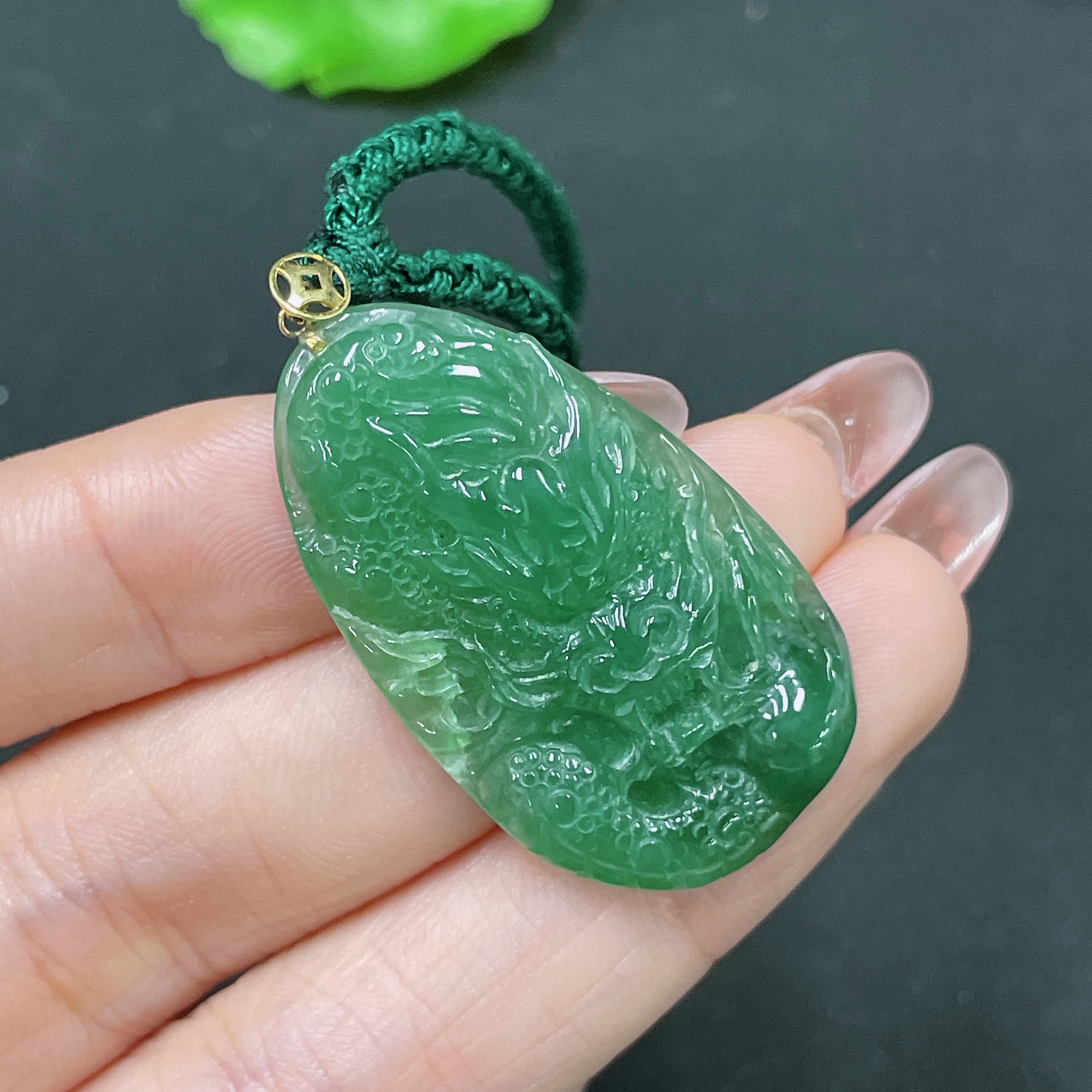 Jadeite Pendant Dragon Plaque No Hallmark 18k Gold Tested With Crack Total Weight Approx. 9.1g
