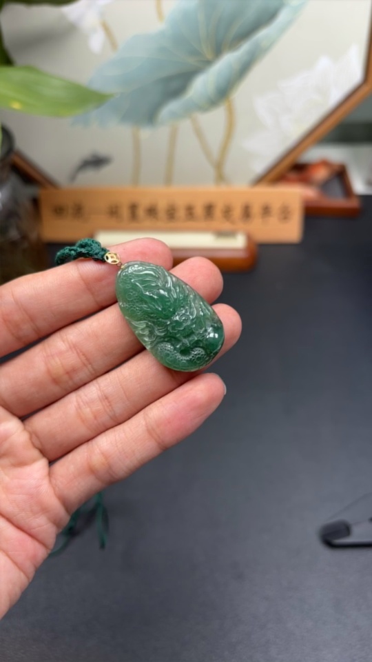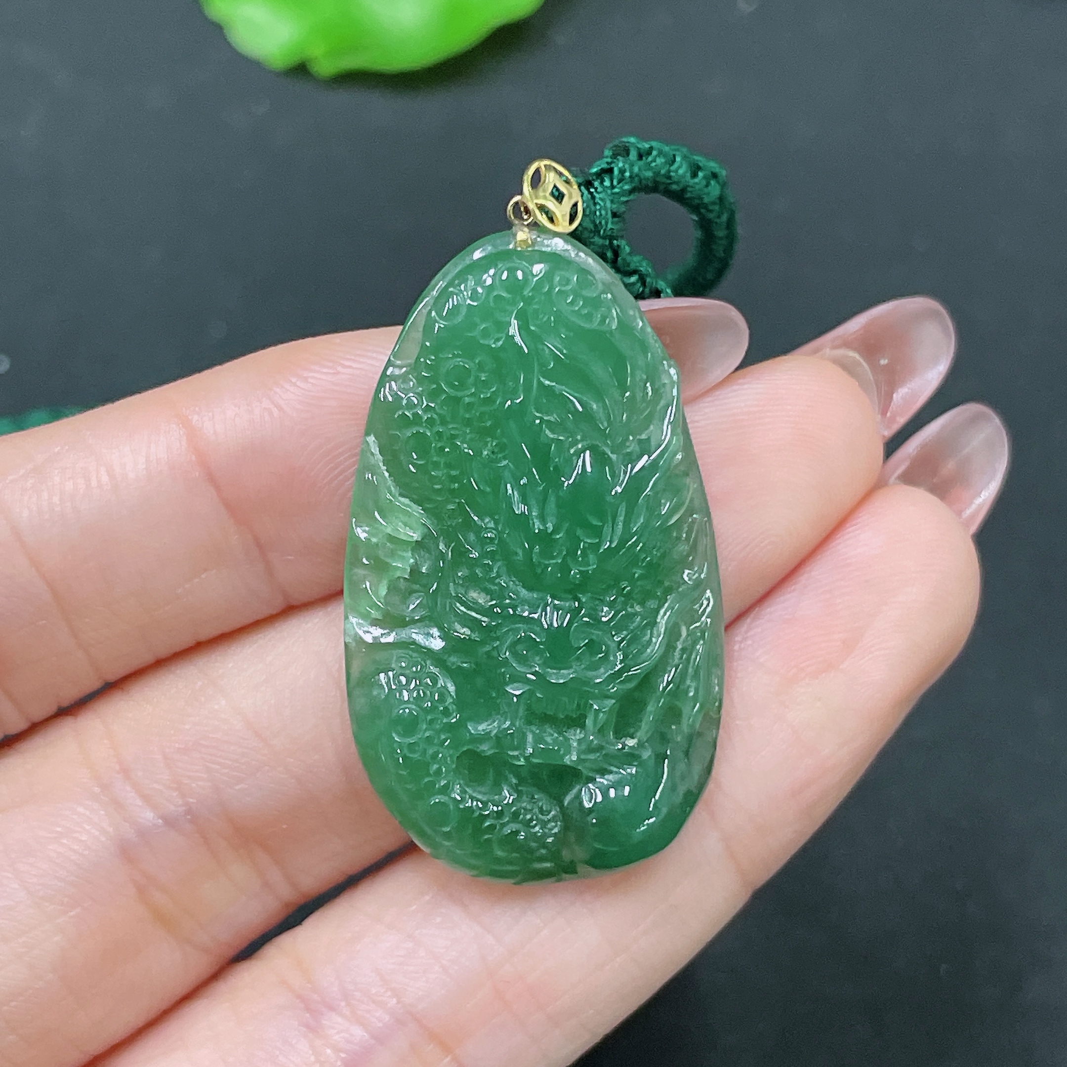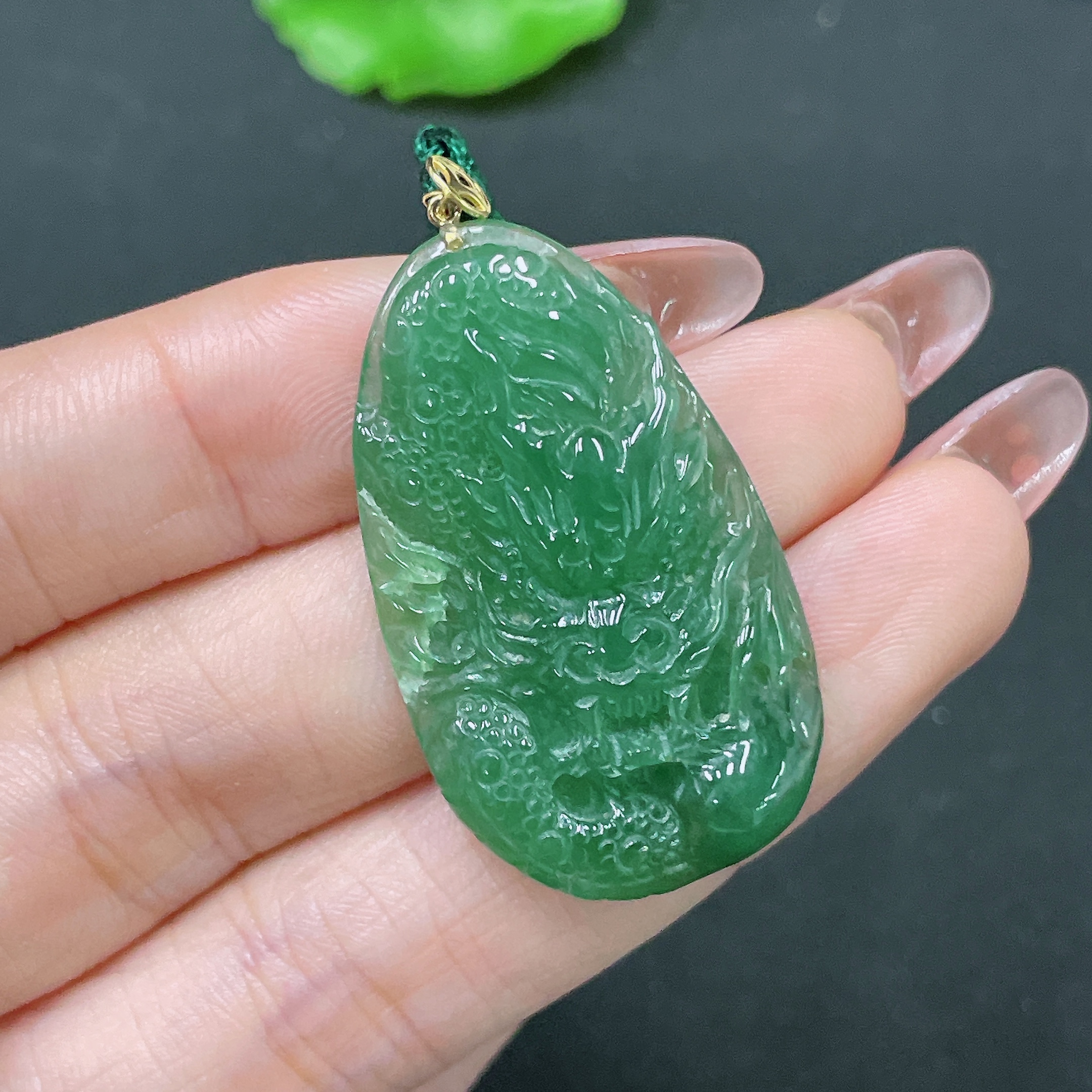 Jadeite Pendant Dragon Plaque No Hallmark 18k Gold Tested With Crack Total Weight Approx. 9.1g