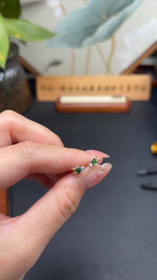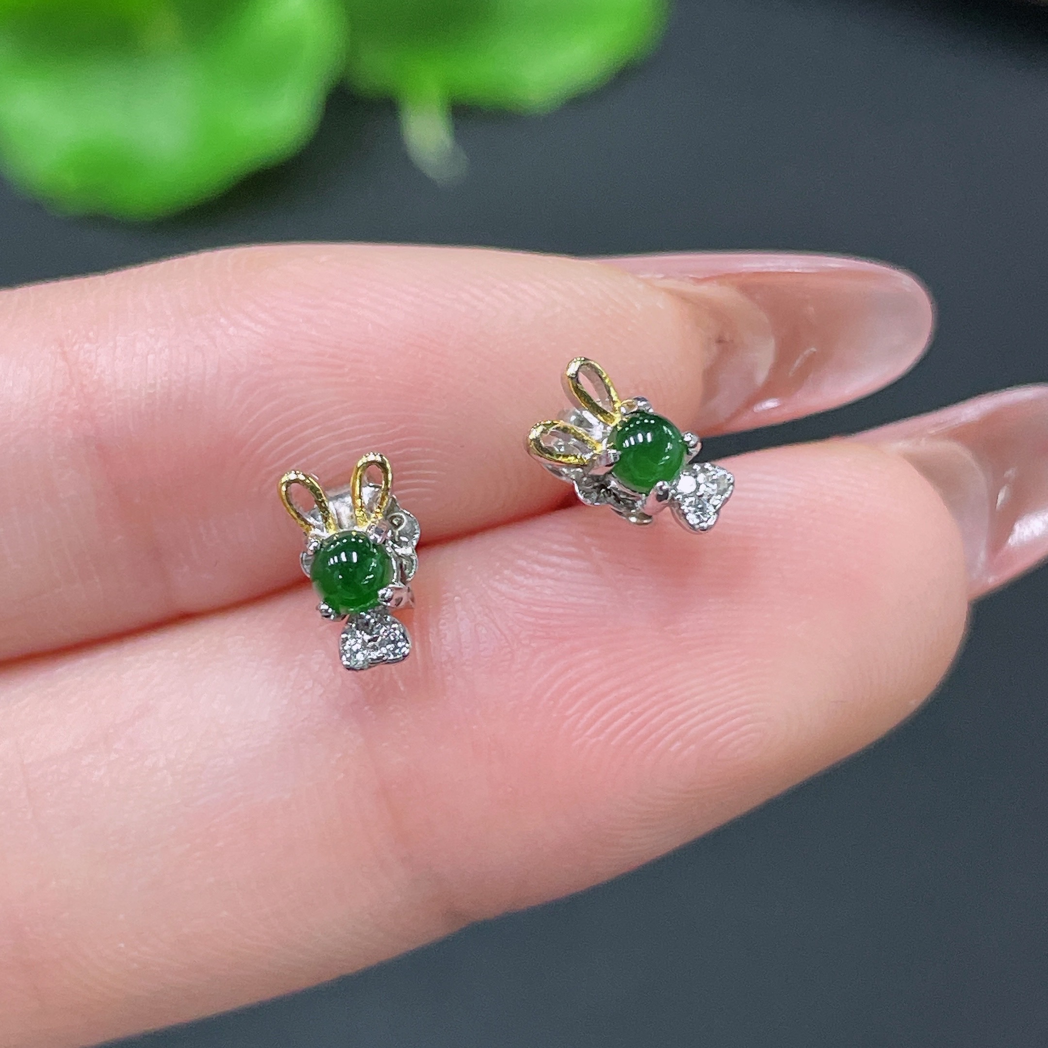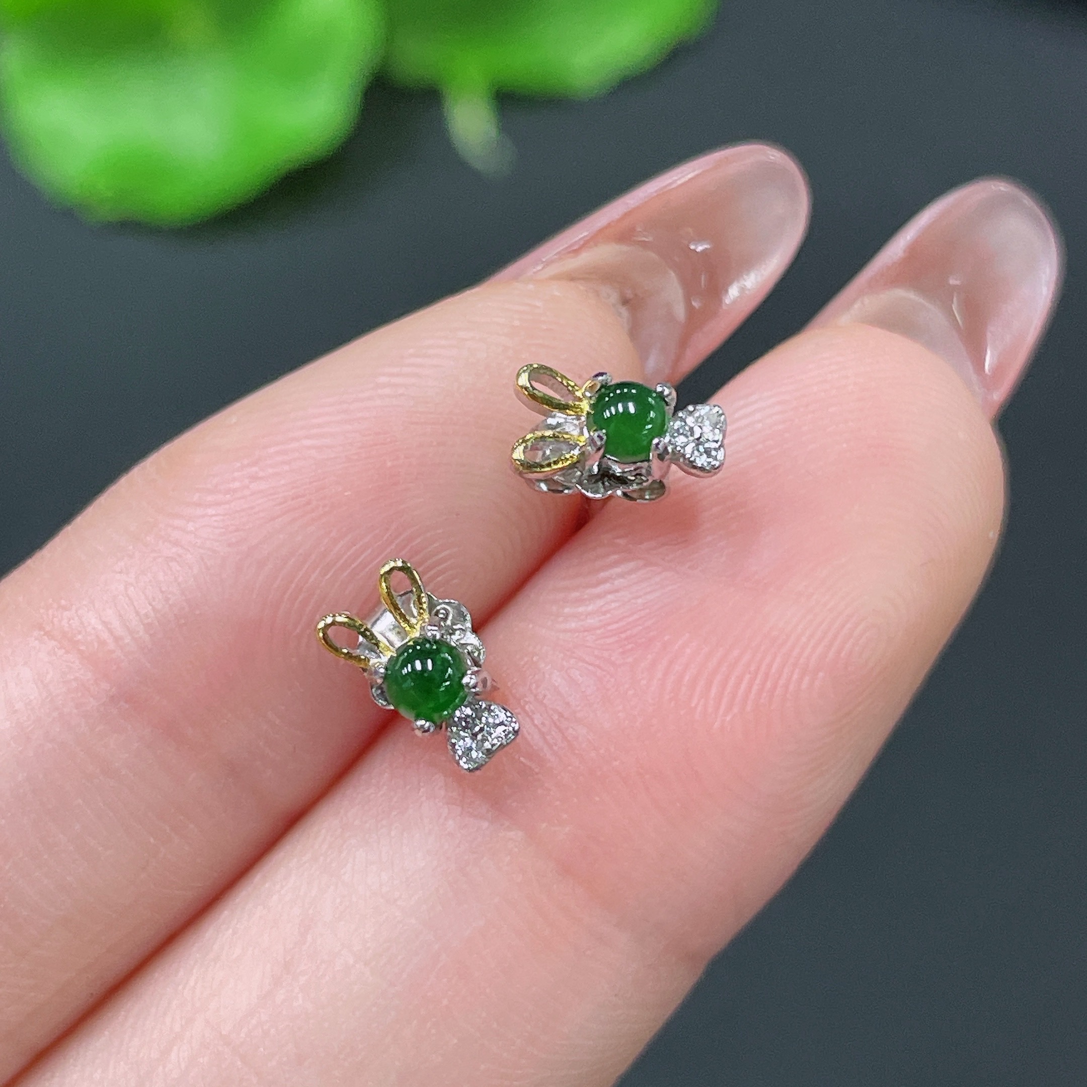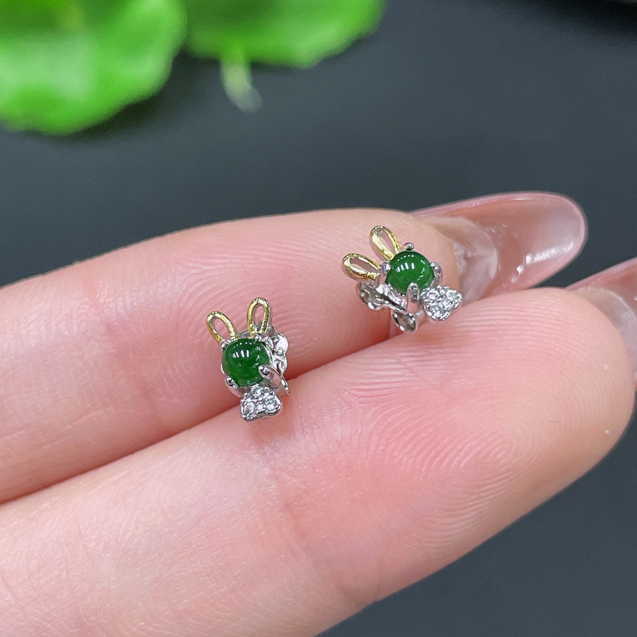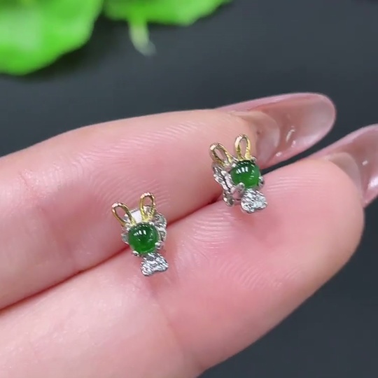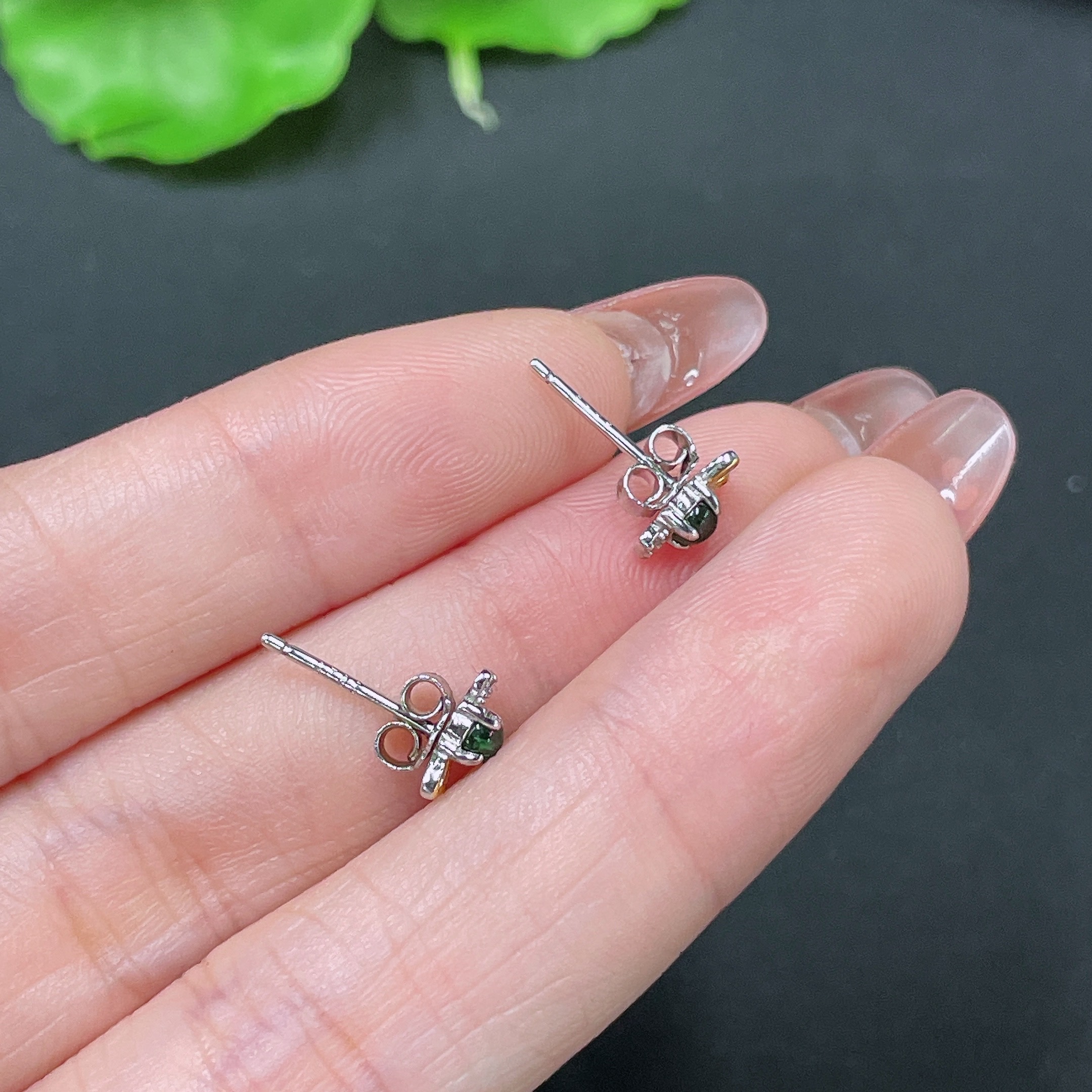 Jadeite Inlaid Earrings Non-Gold Total Weight Approx. 0.71g Non-Diamond