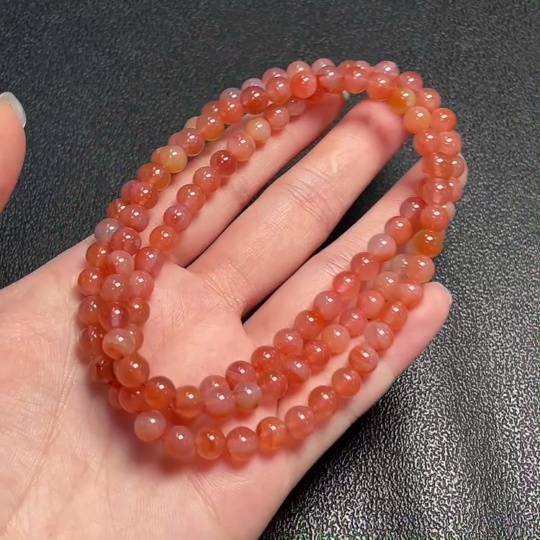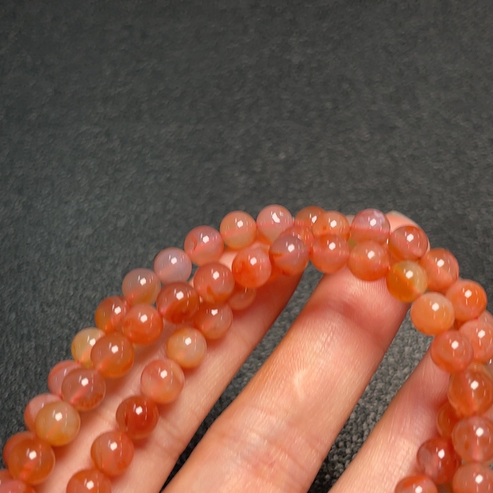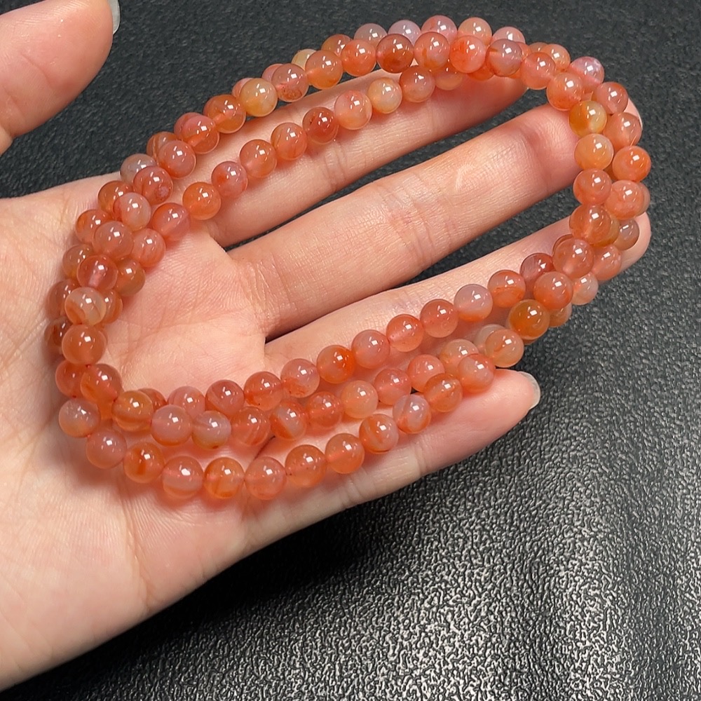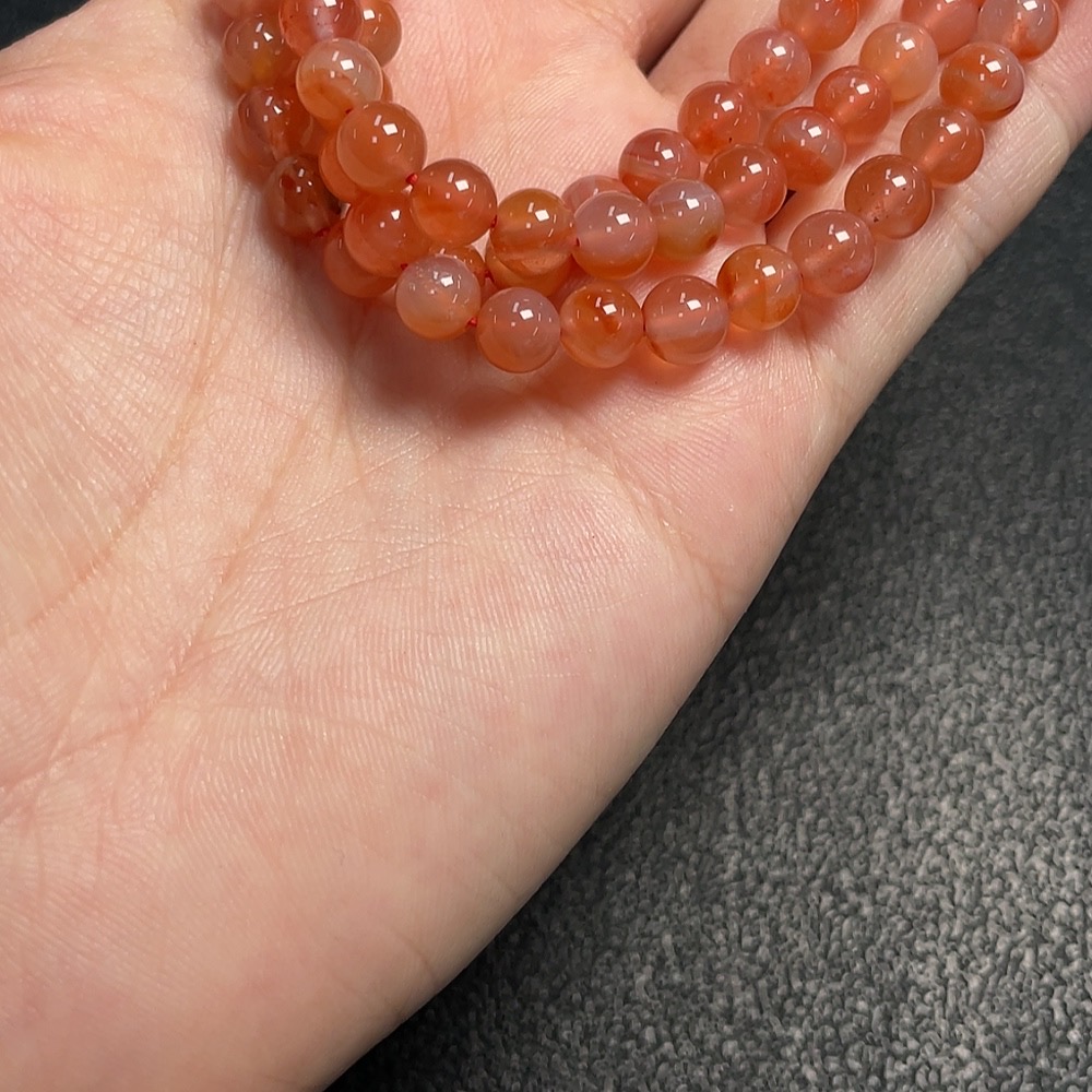 Red Agate Bead Necklace with Visible Organic Matter, Total Weight Approx. 37.3g, Bead Size Around 6mm