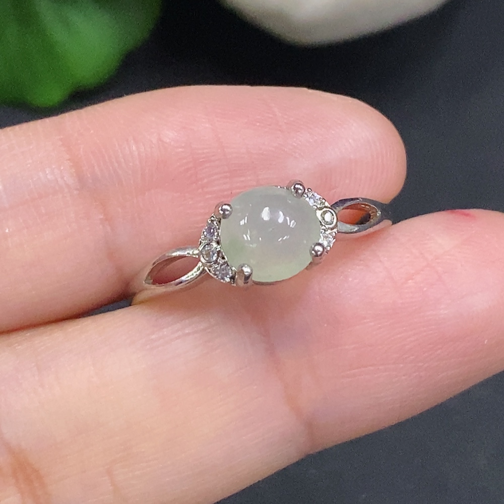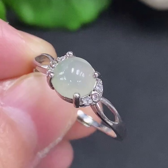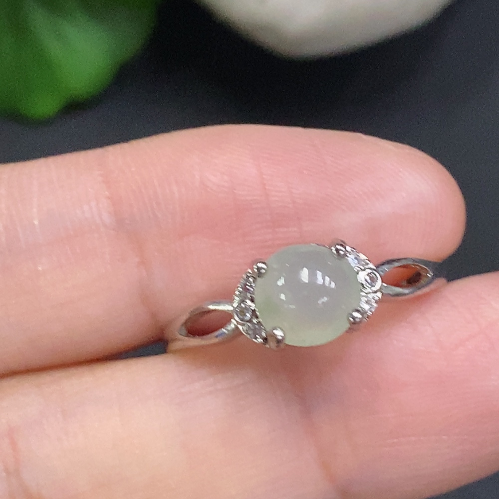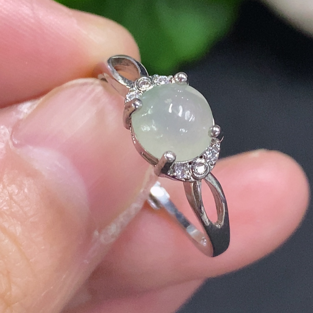 Jadeite Cabochon Inlaid Ring Adjustable Size Non-Gold Inlay Total Weight Approx. 1.7g