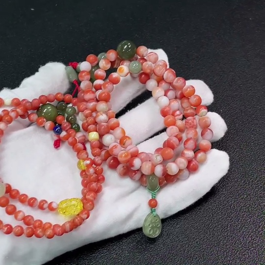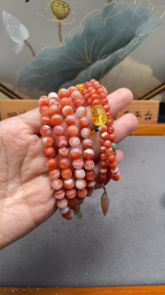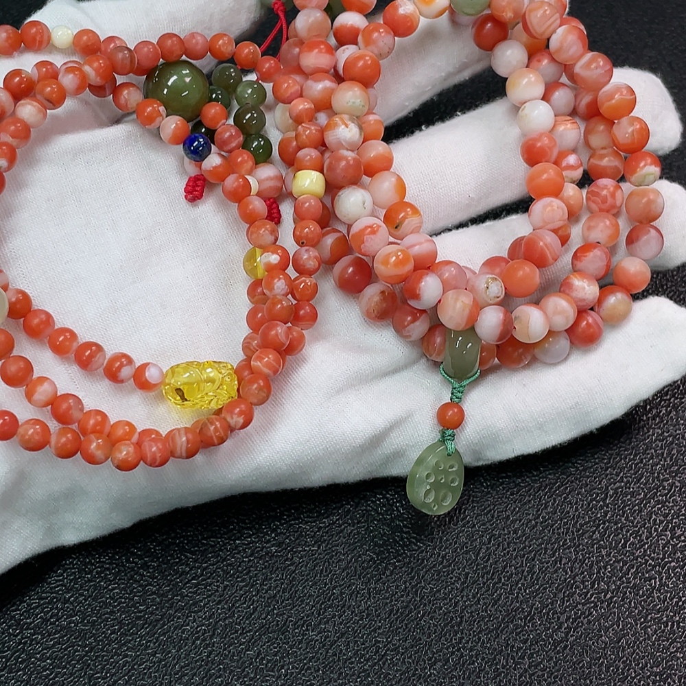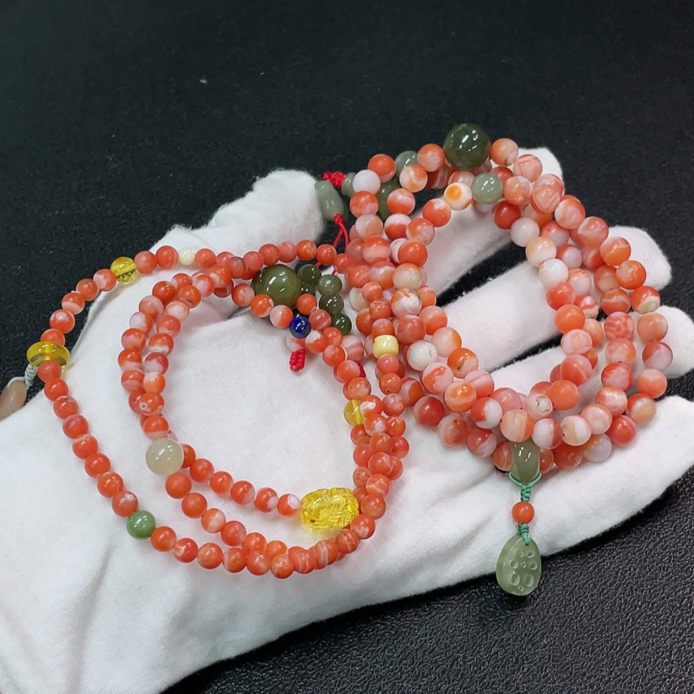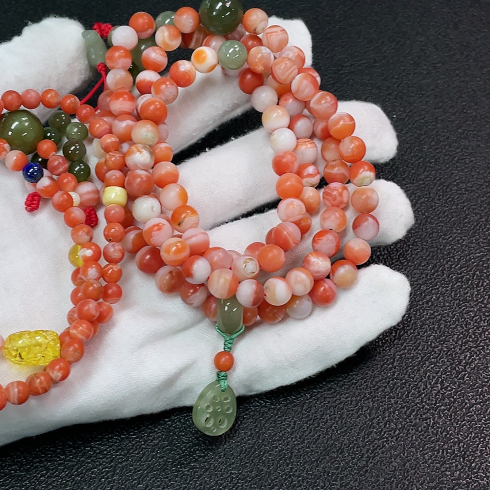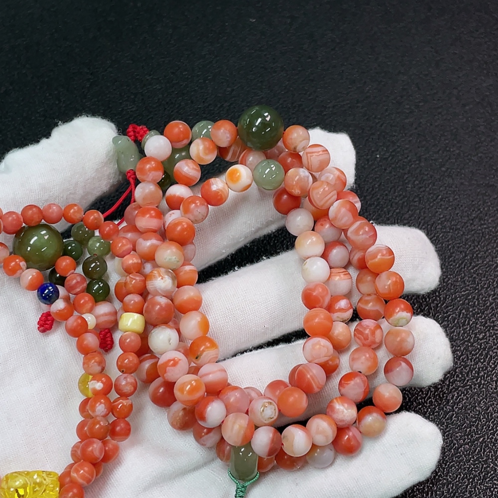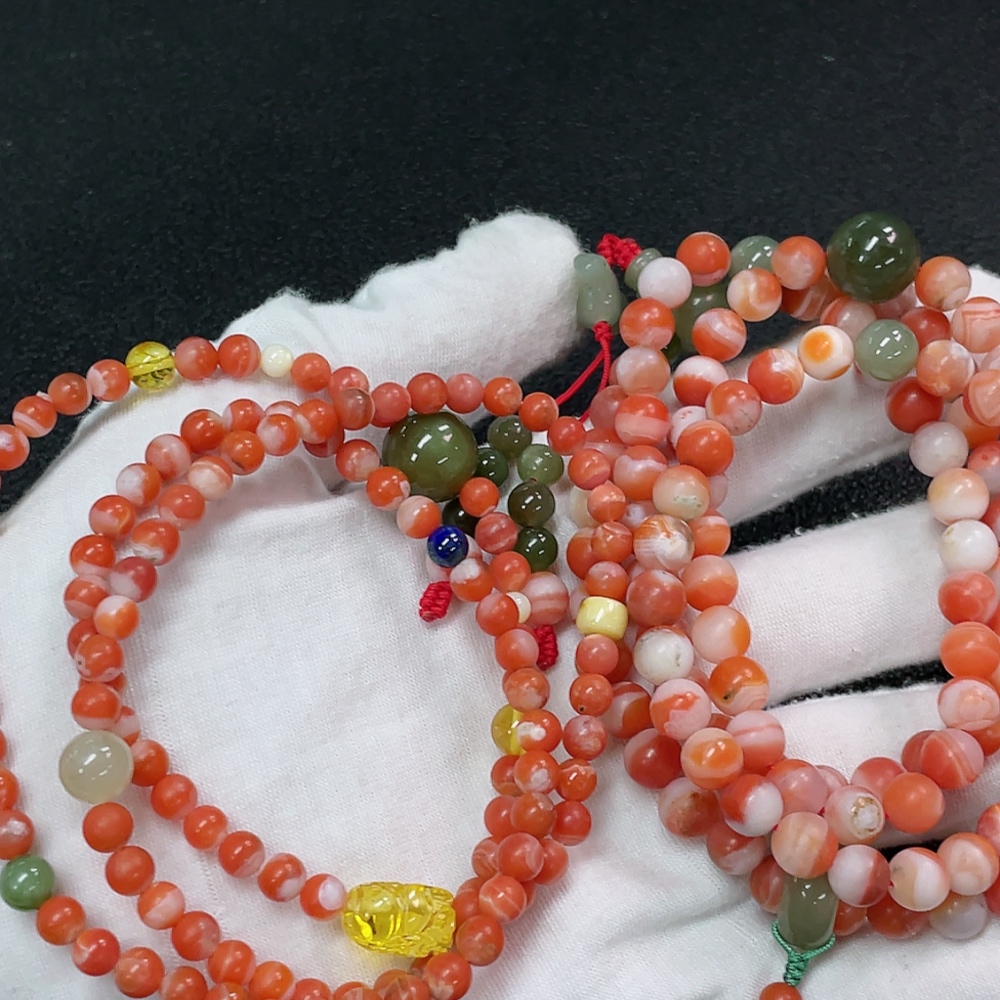 Red Agate Bead Bracelet with Other Mineral Components, Visible Organic Matter, Non-Natural Accent Stones, Total Weight Approx. 92.98g, Sell as a Lot