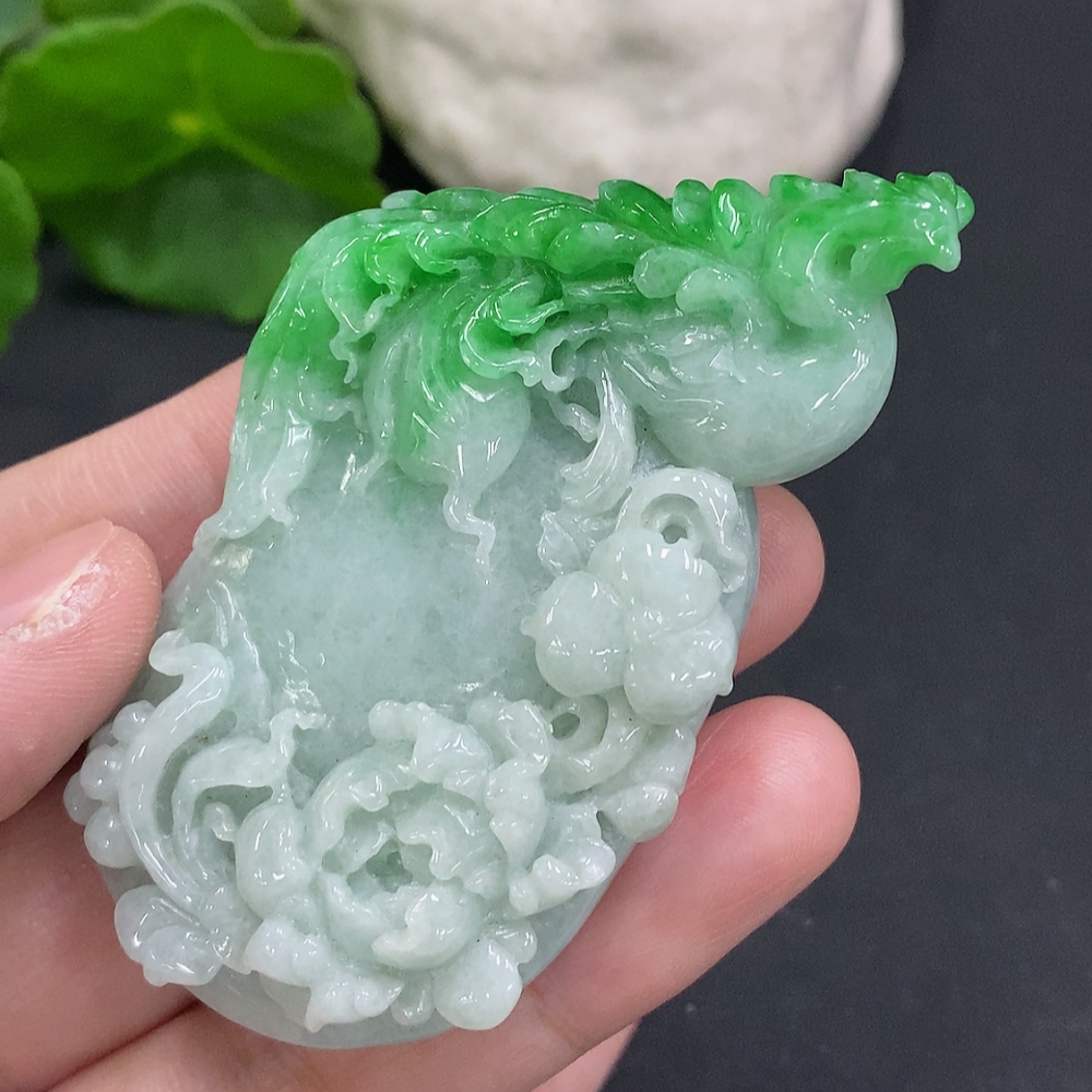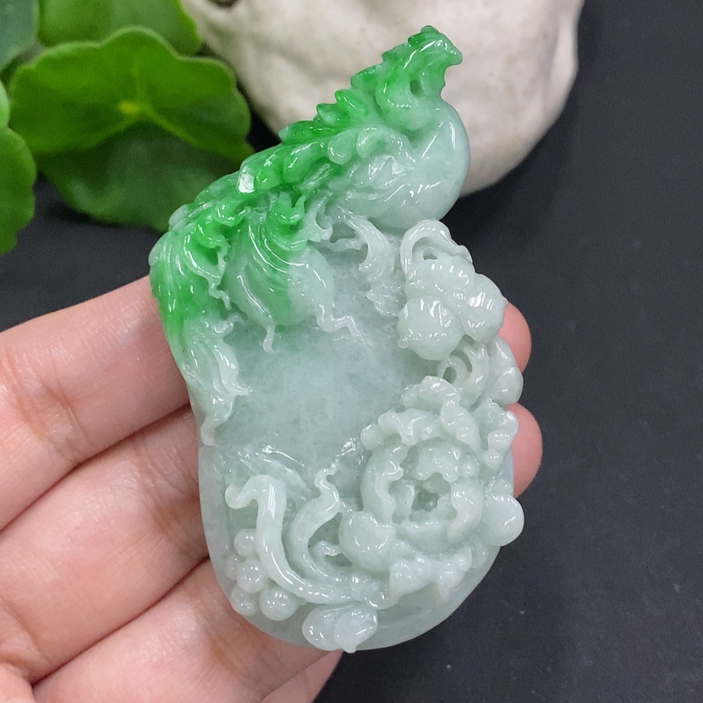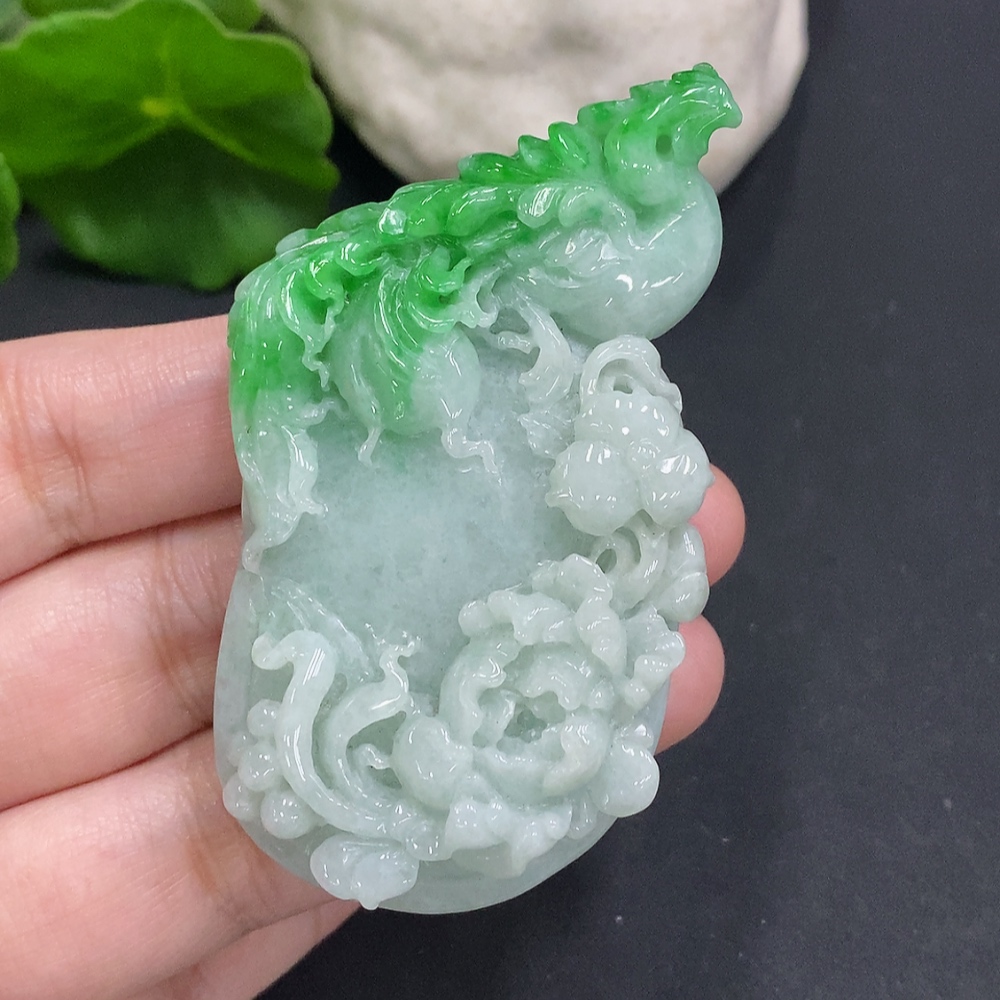 Jadeite Phoenix Pendant Total Weight Approximately 52.4g