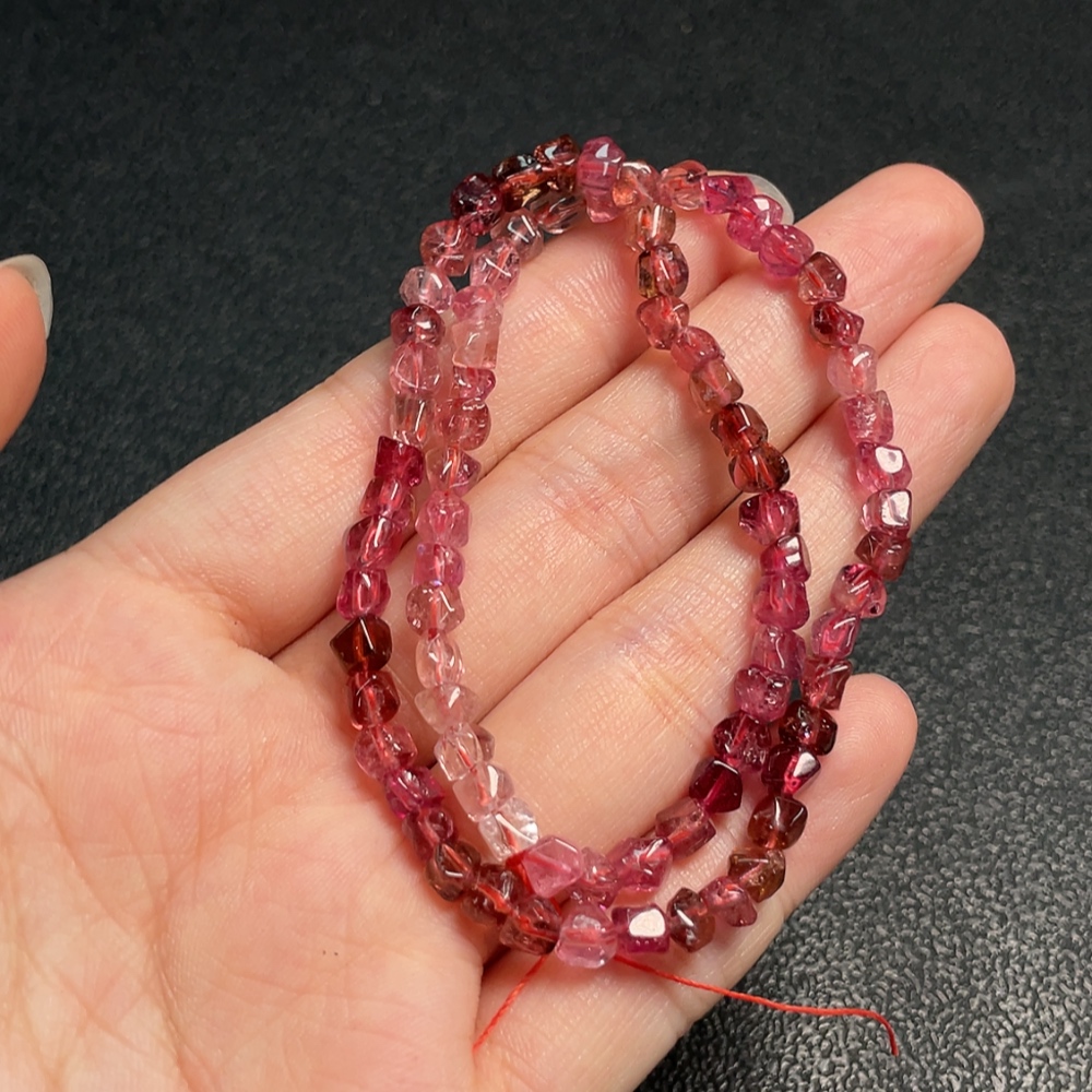 Tourmaline Bead Strand with Visible Organic Matter, Total Weight Approximately 10.51g, Size About 4.9mm