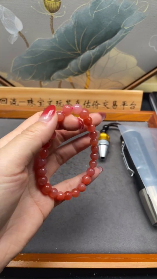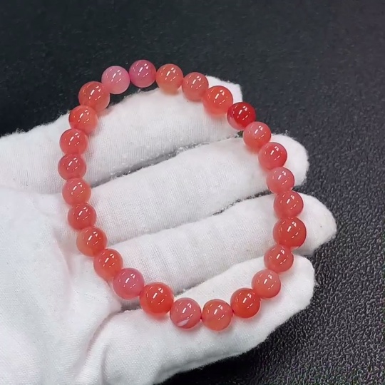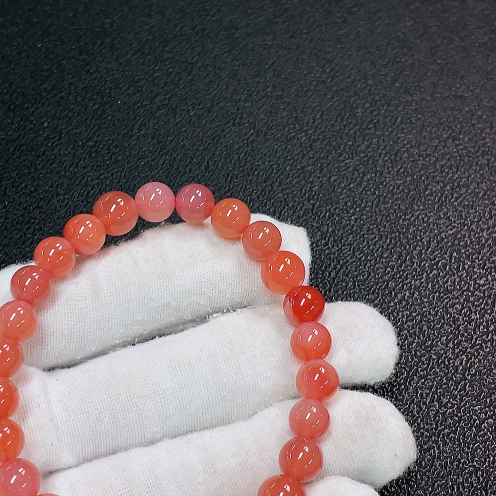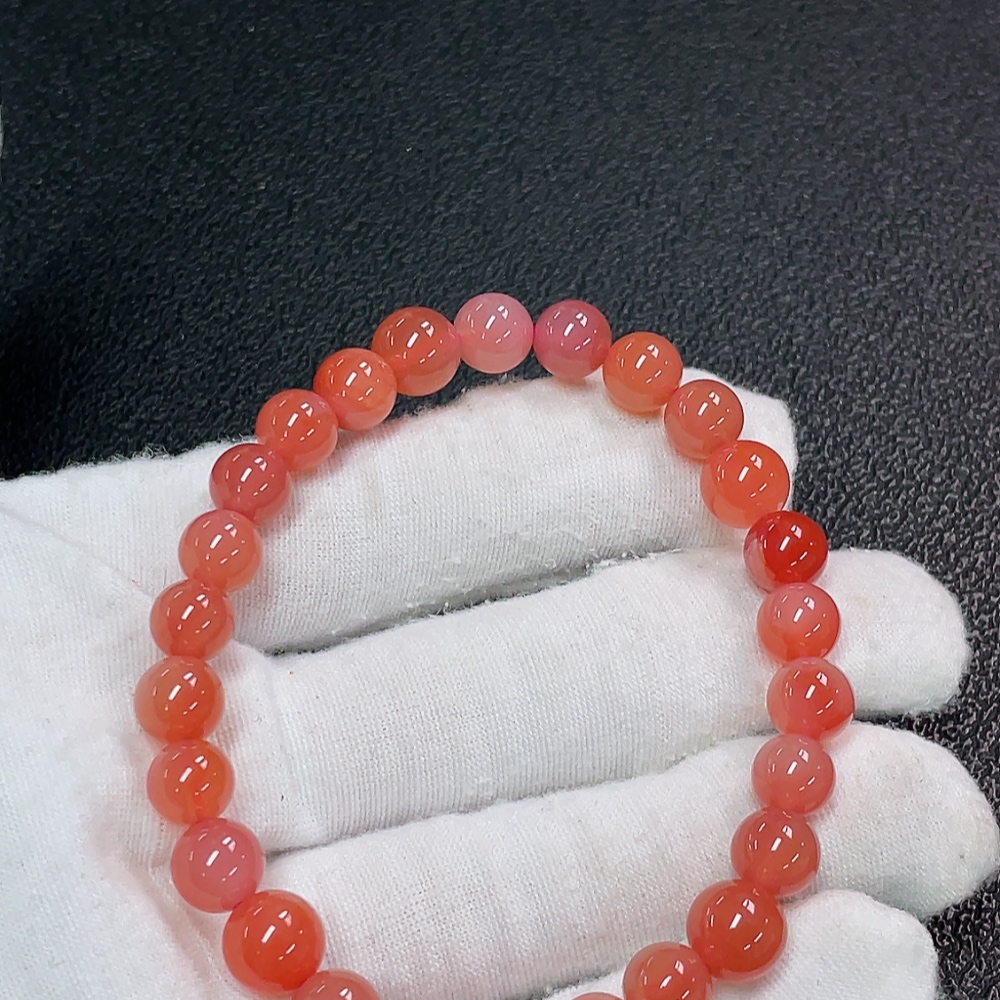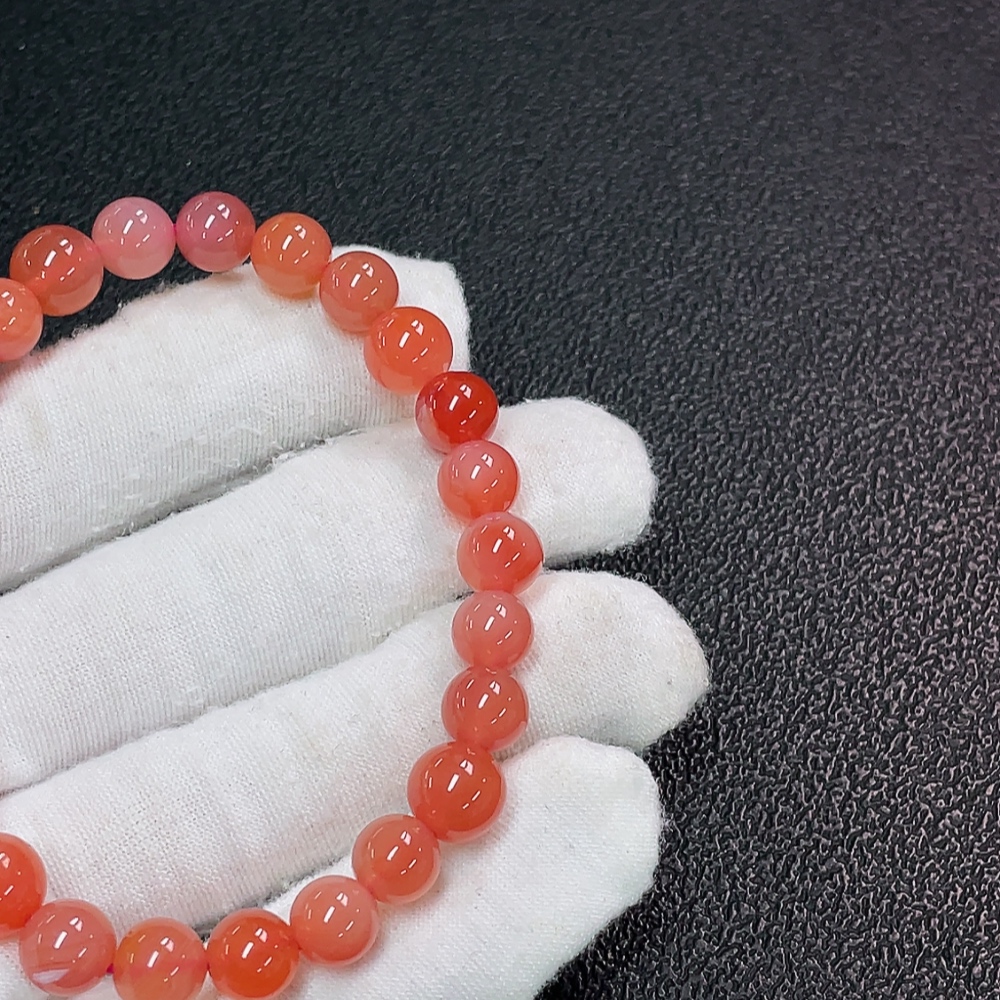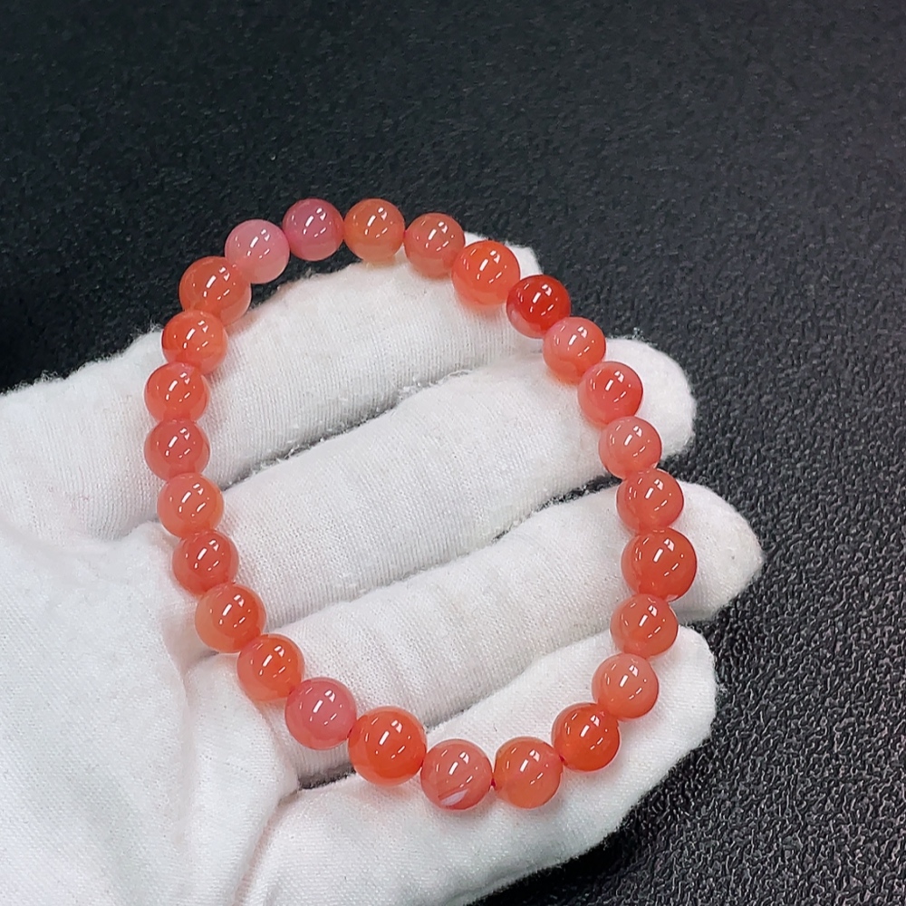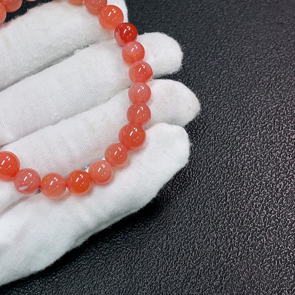Red Agate Bracelet with Visible Organic Matter, Total Weight Approx. 17.09g, Size About 7.7mm