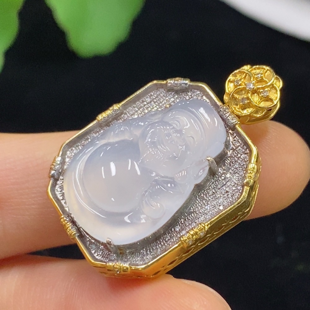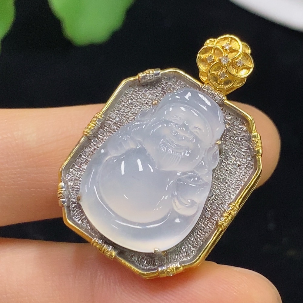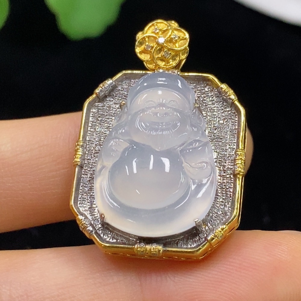 Jadeite Maitreya Inlaid Pendant 18k with Diamond, Total Weight Approx. 10.99g
