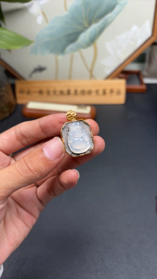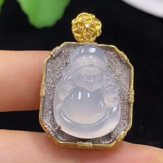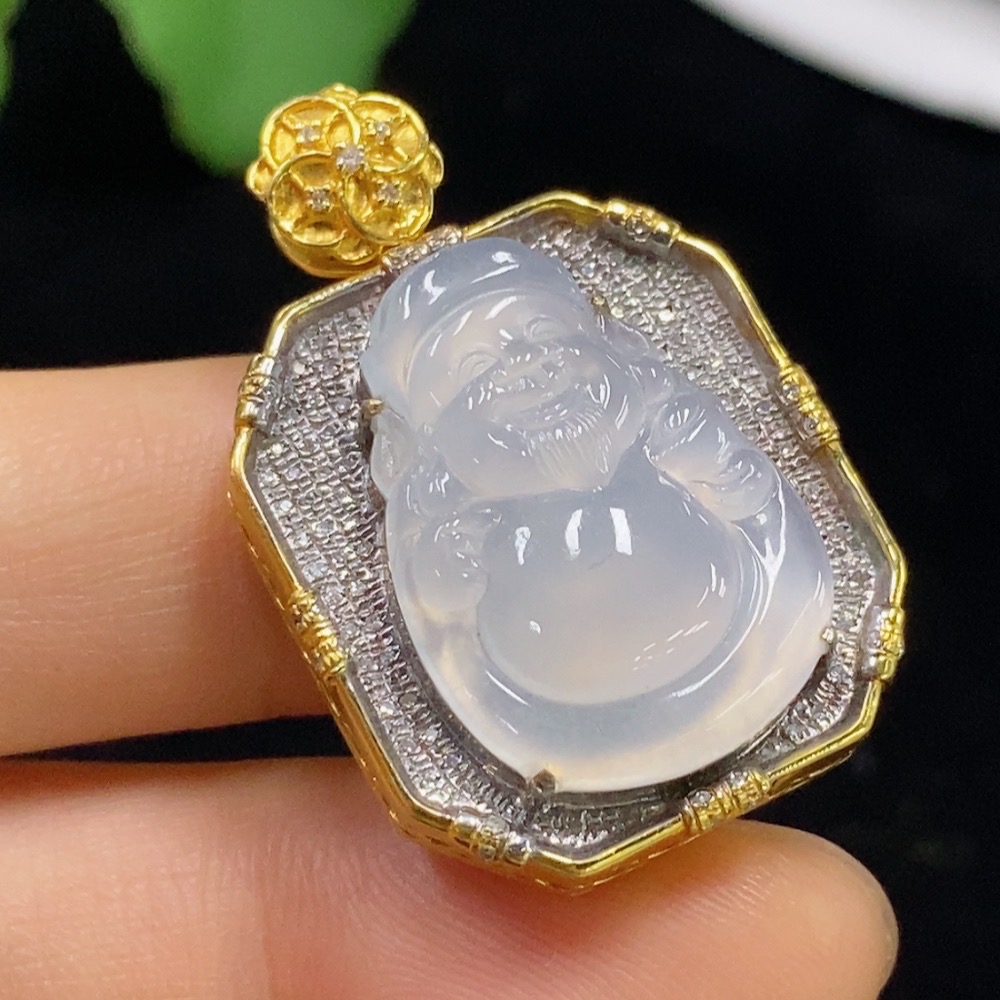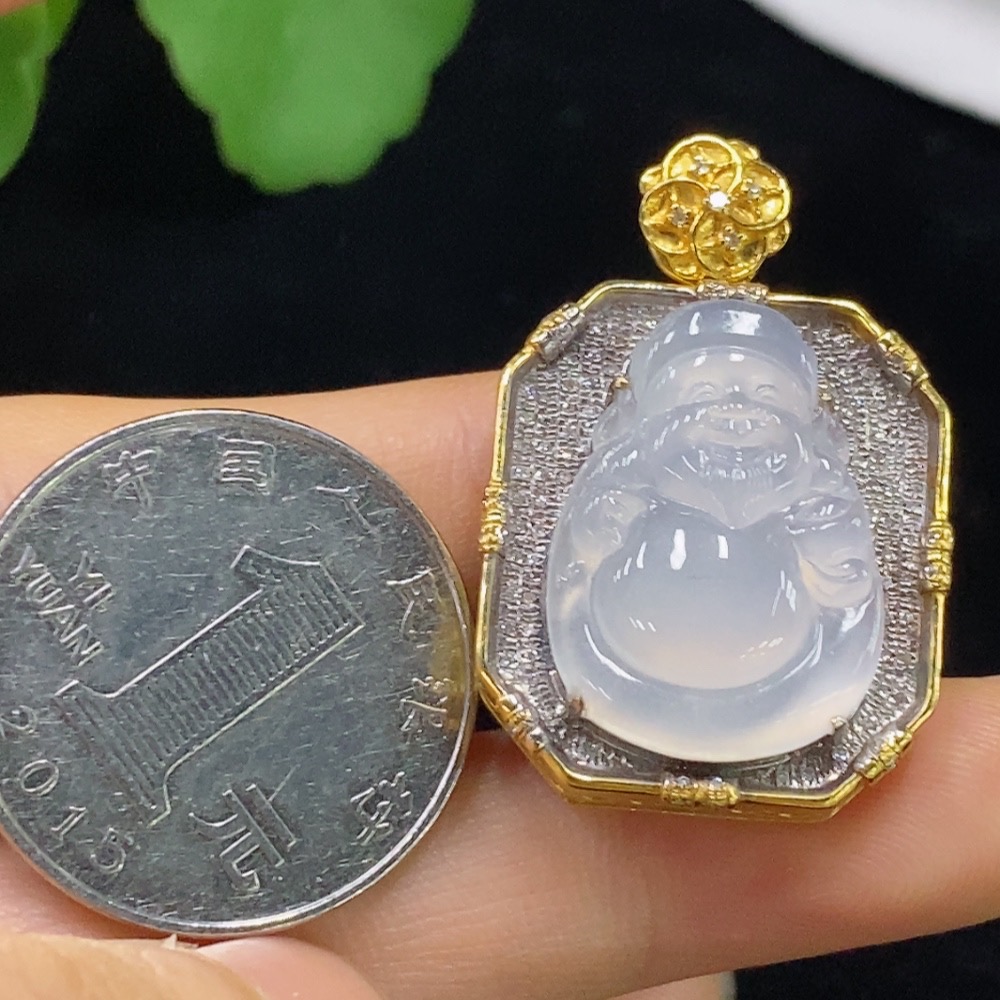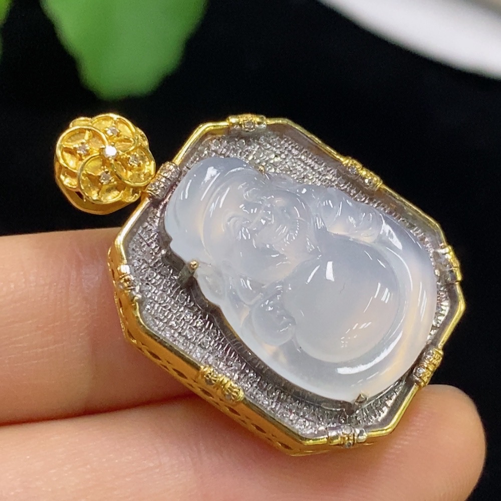Jadeite Maitreya Inlaid Pendant 18k with Diamond, Total Weight Approx. 10.99g