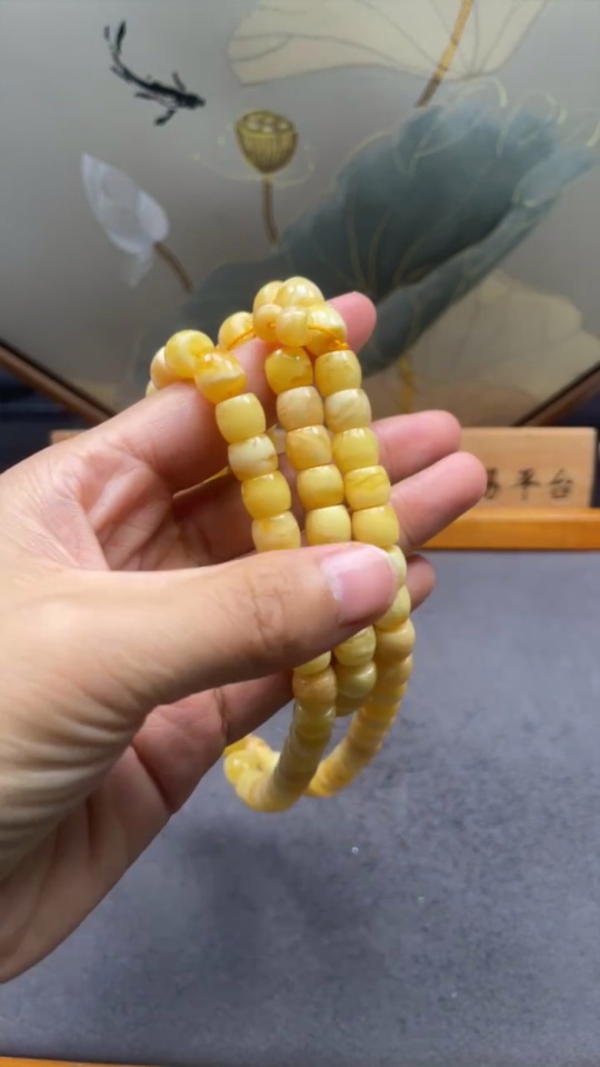 Amber Beeswax Beaded Necklace, Total Weight Approx. 45.48g, Size About 8.7mm
