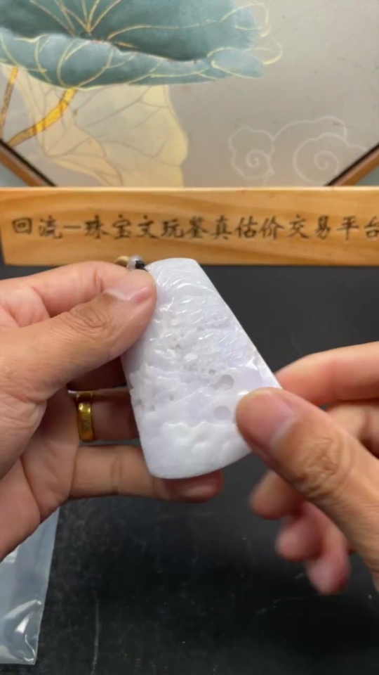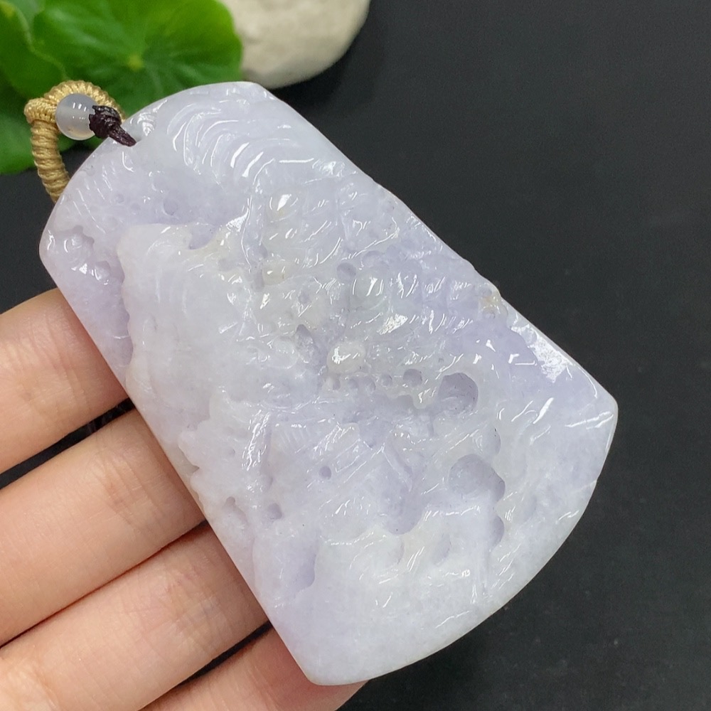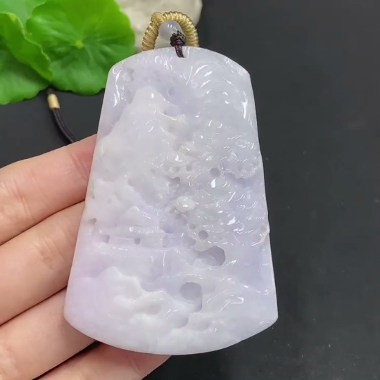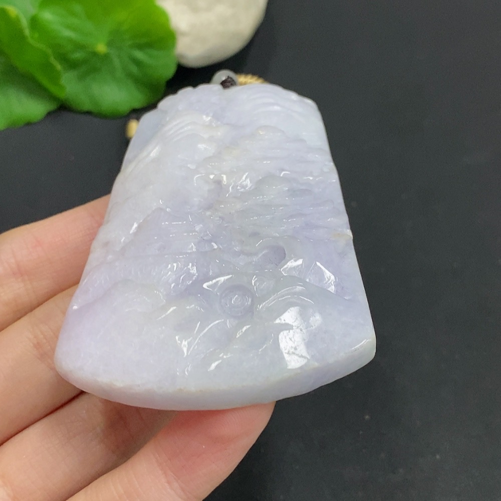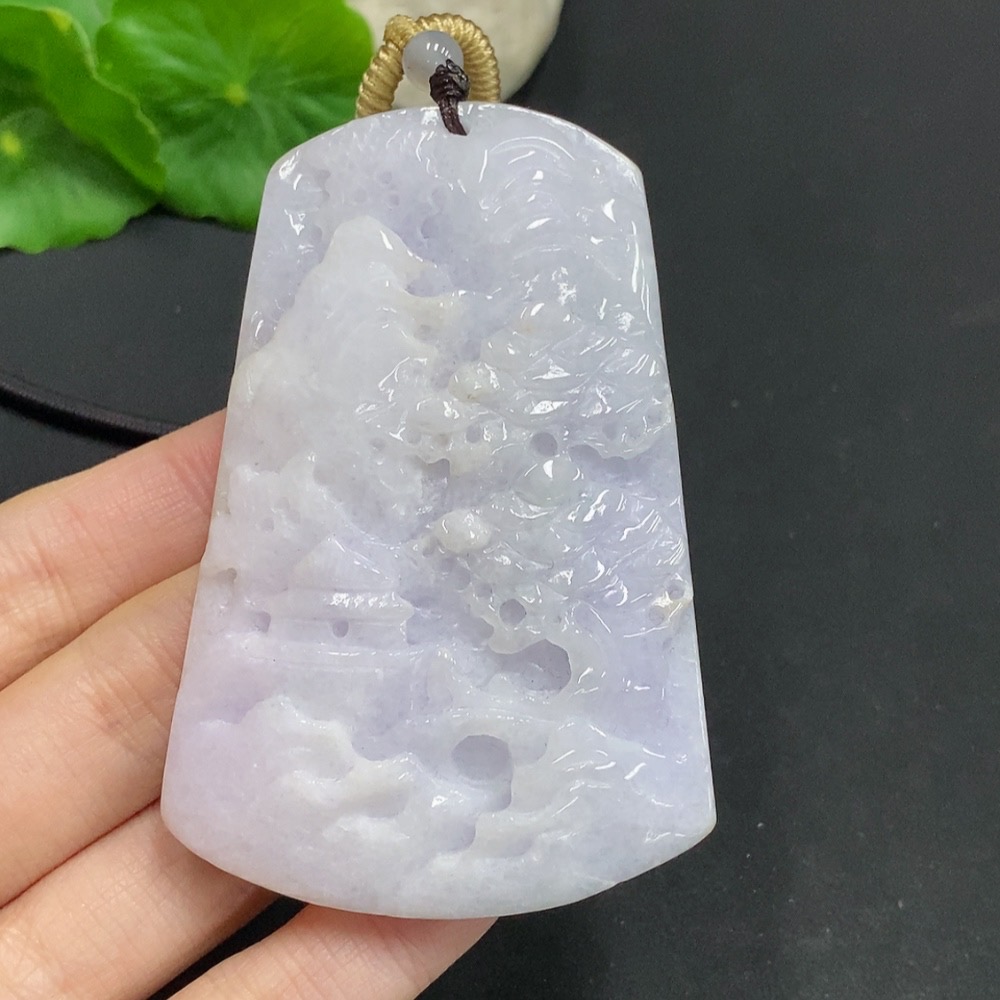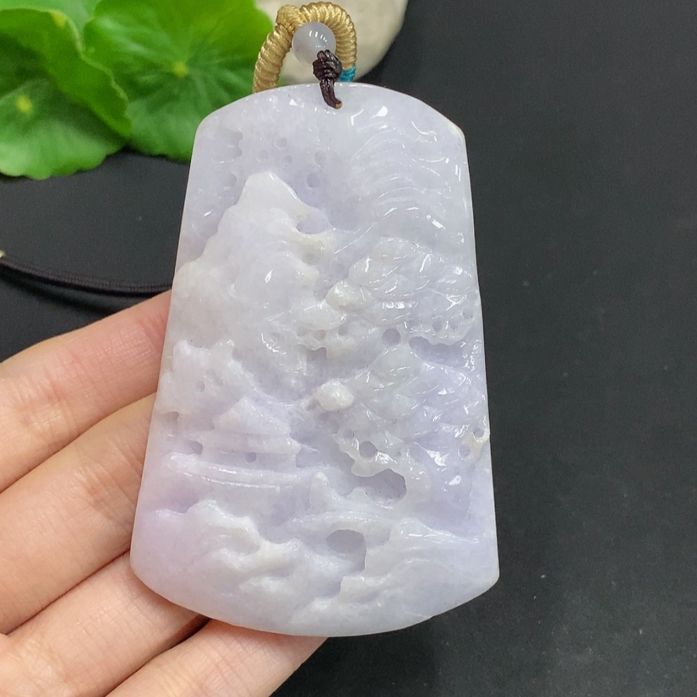 Jadeite Landscape Pendant with Total Weight Approximately 96g (Including Rope Weight)