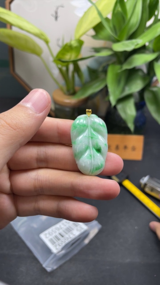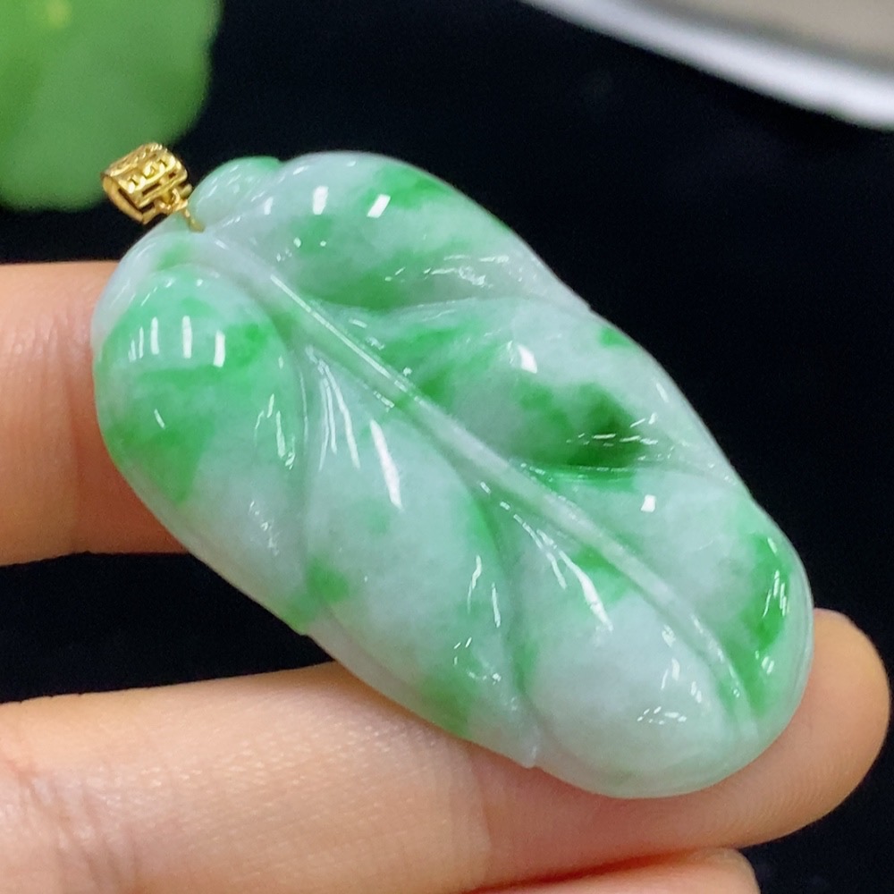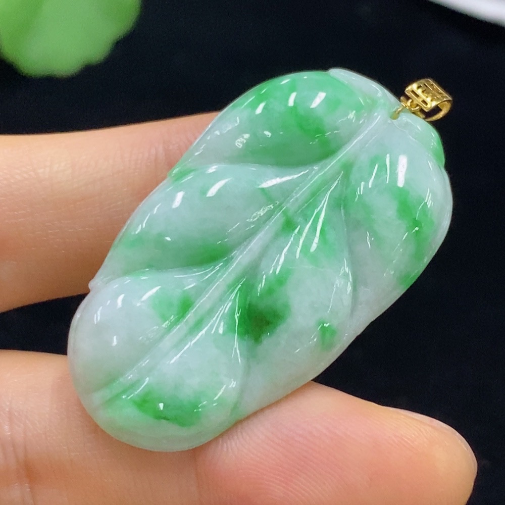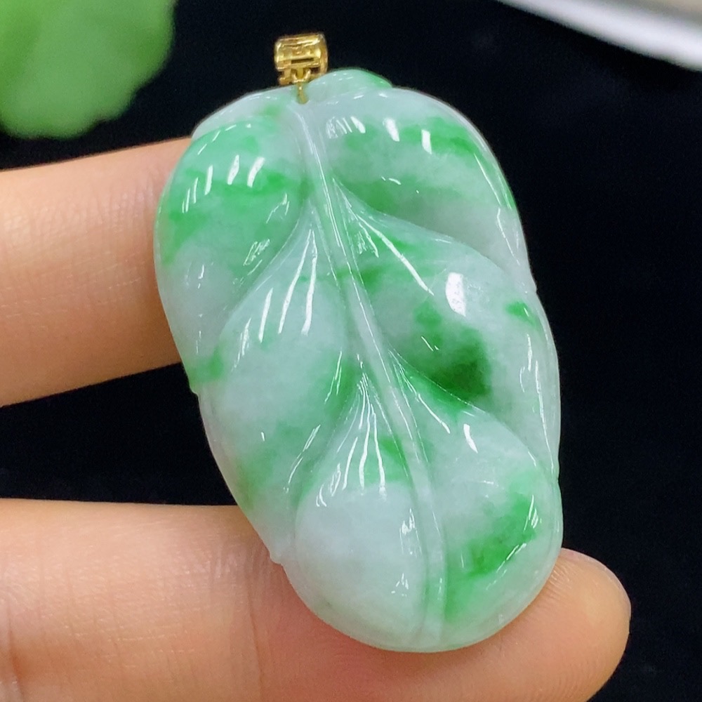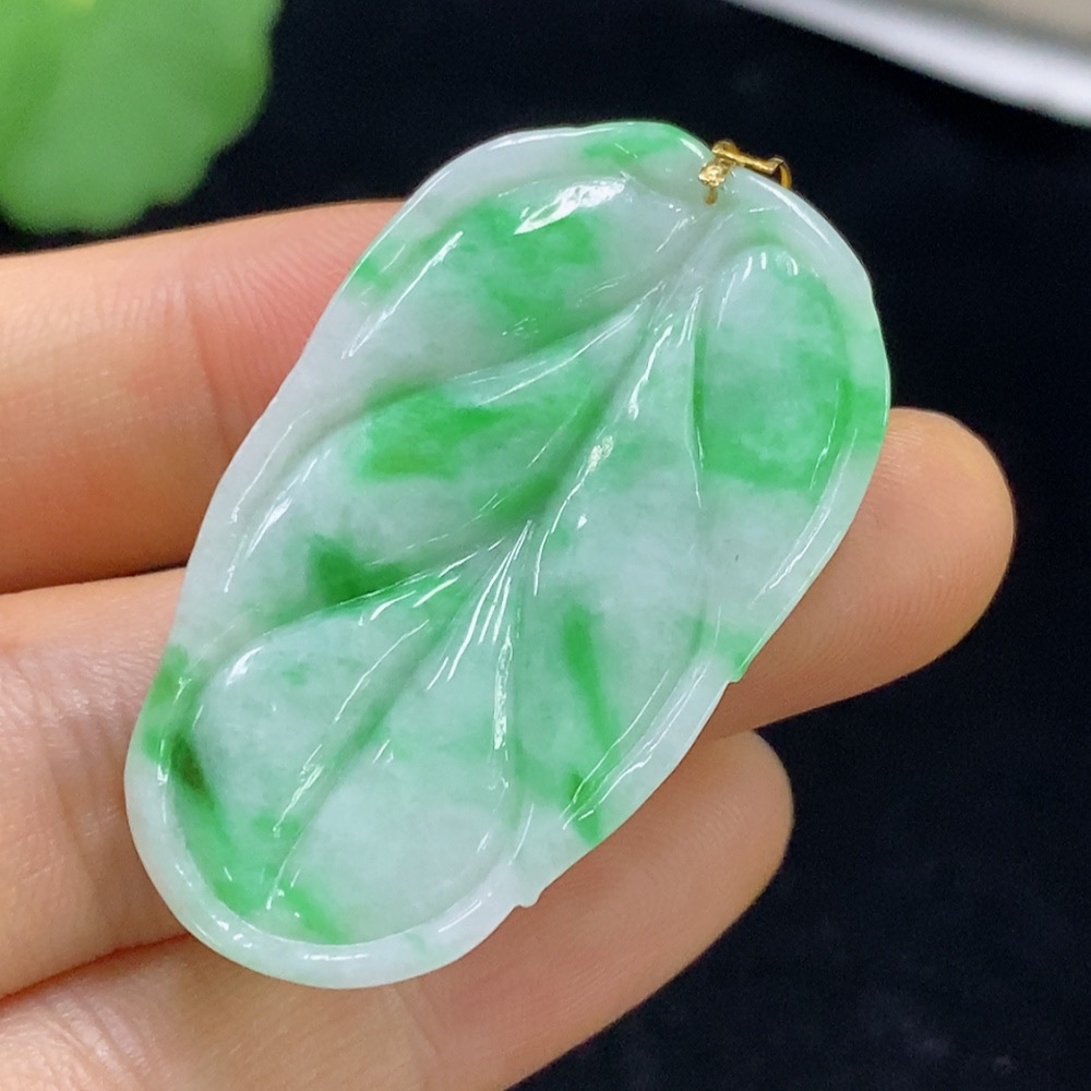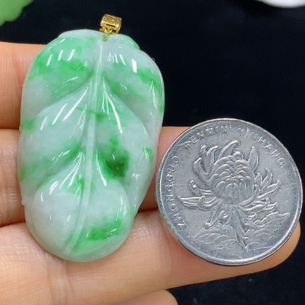 Jadeite Leaf Pendant 18k Total Weight Approx. 8.43g