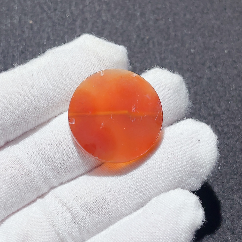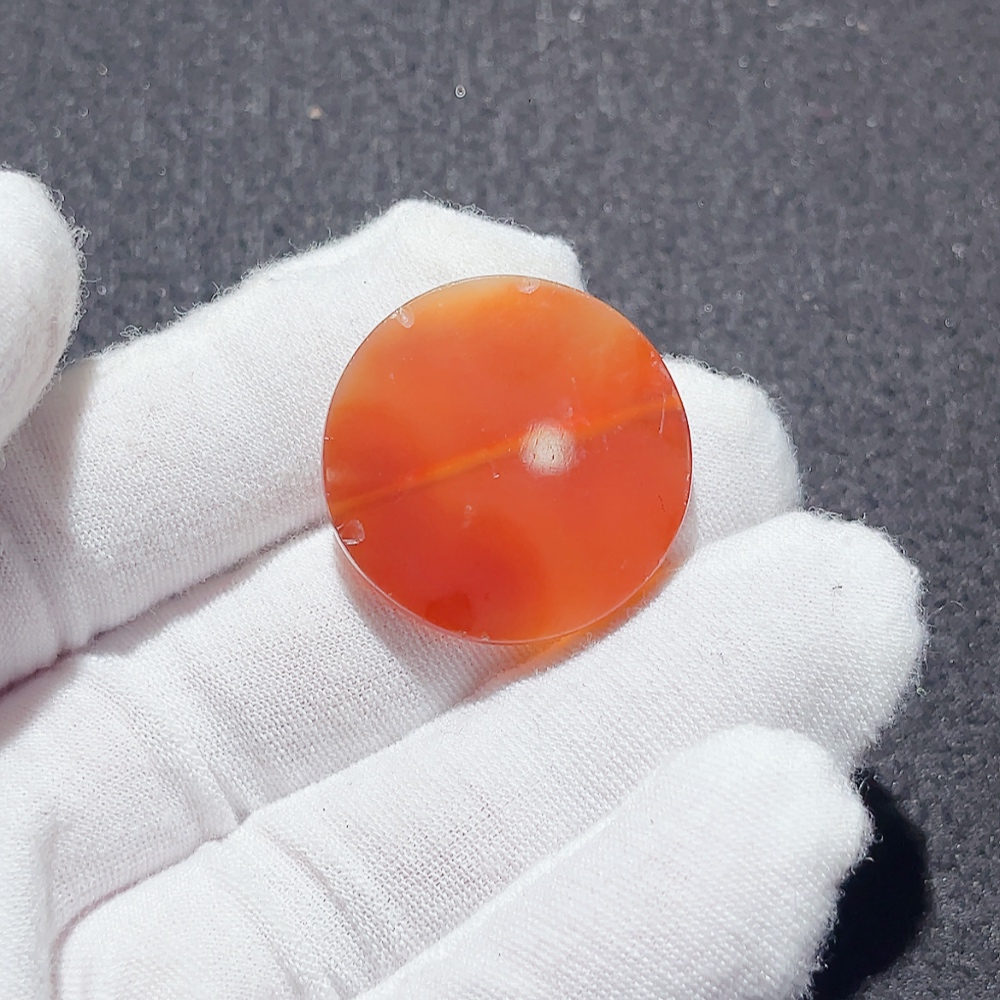 18th-19th Century West Asian Agate Tabular Bead - Wine-Red Agate with Rich Color, Fully Covered in Natural Weathering Marks, Ancient Flat-Shaped Bead