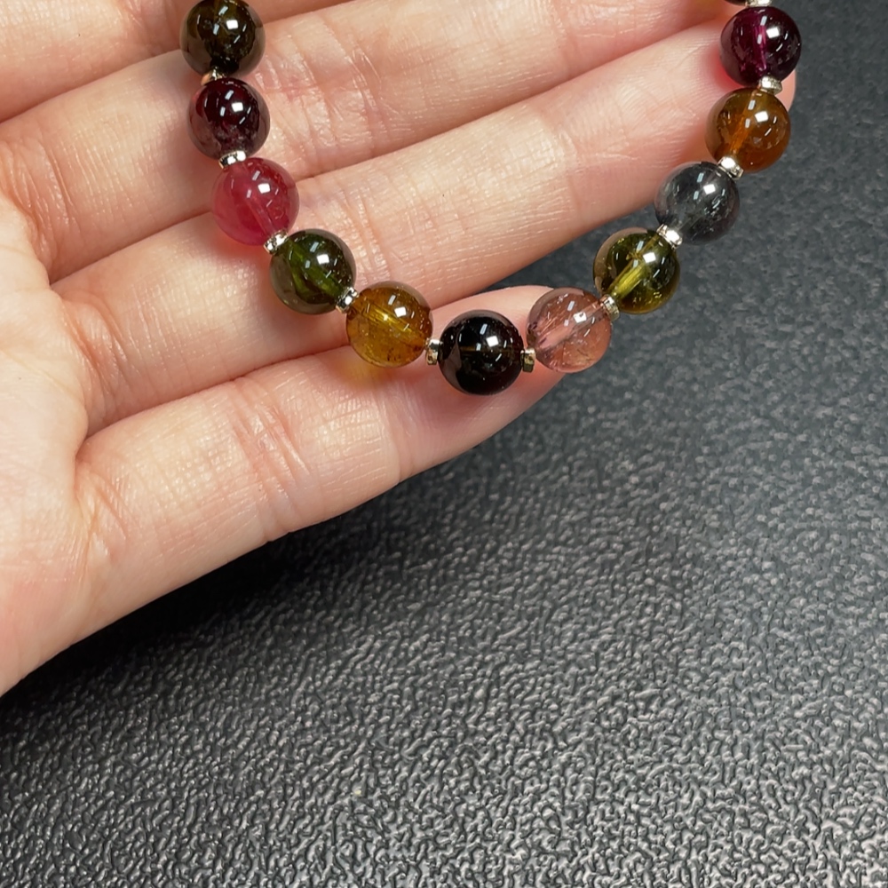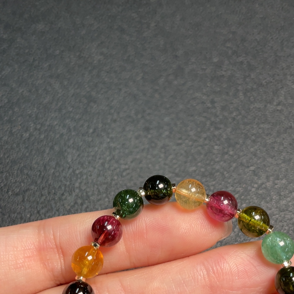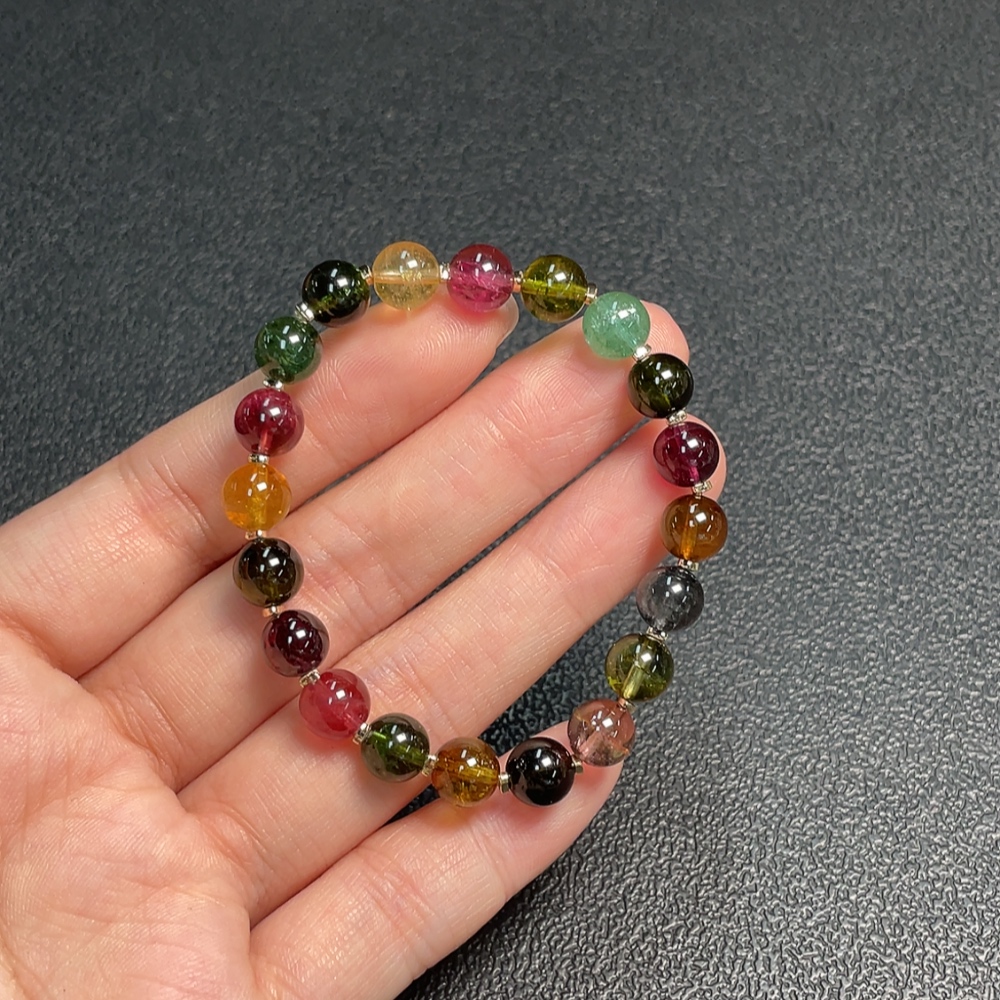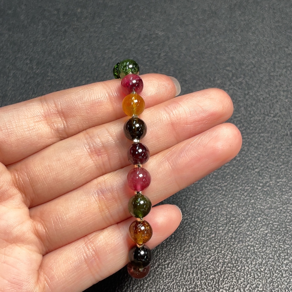 Tourmaline Bracelet with Visible Organic Matter, Total Weight Approx. 12.99g, Size About 7.2mm, Non-Gold
