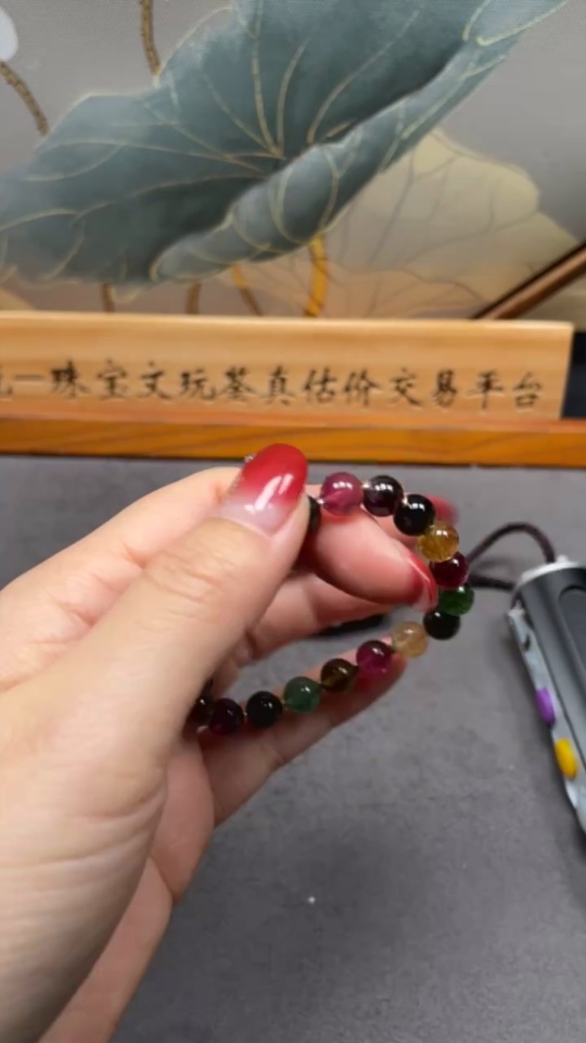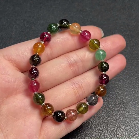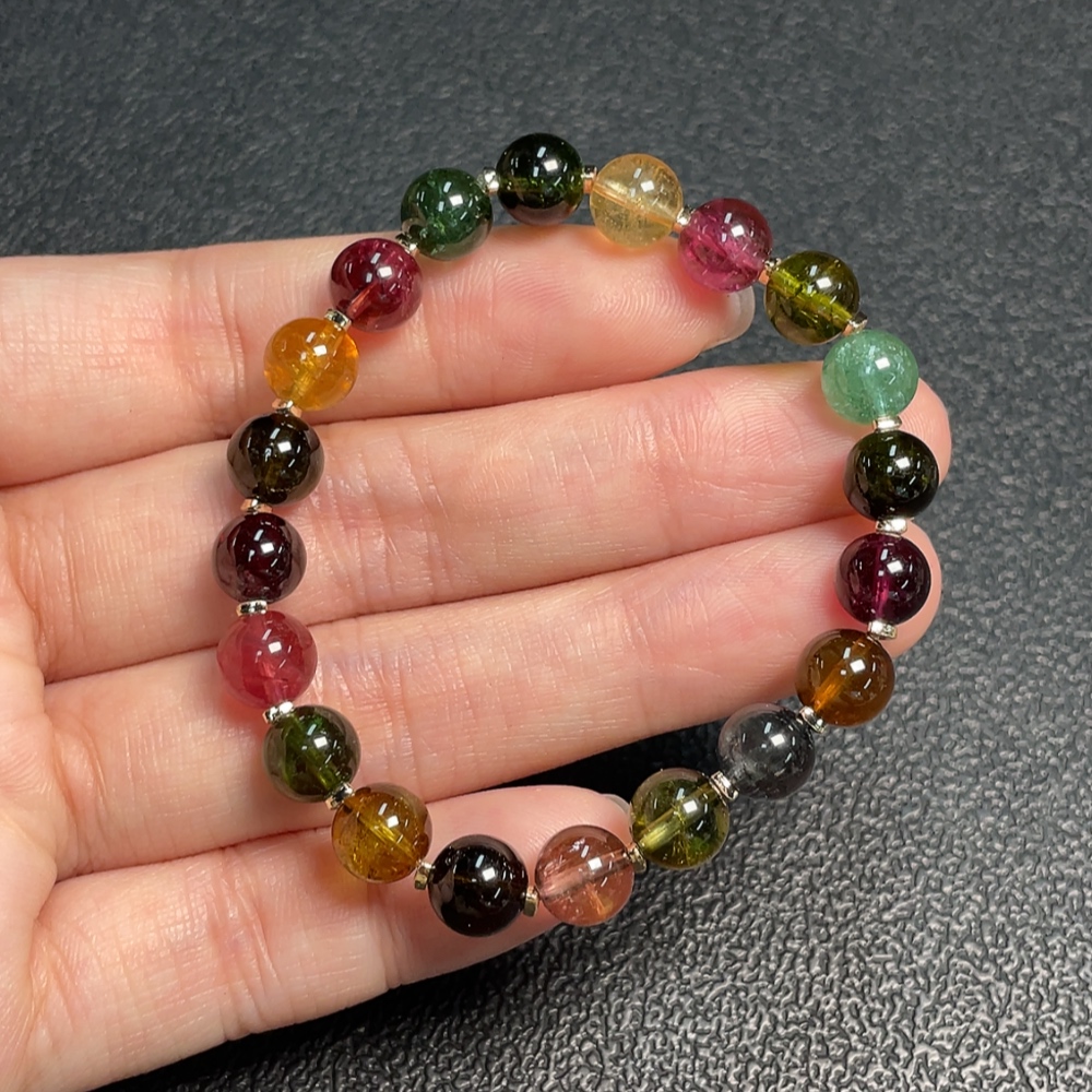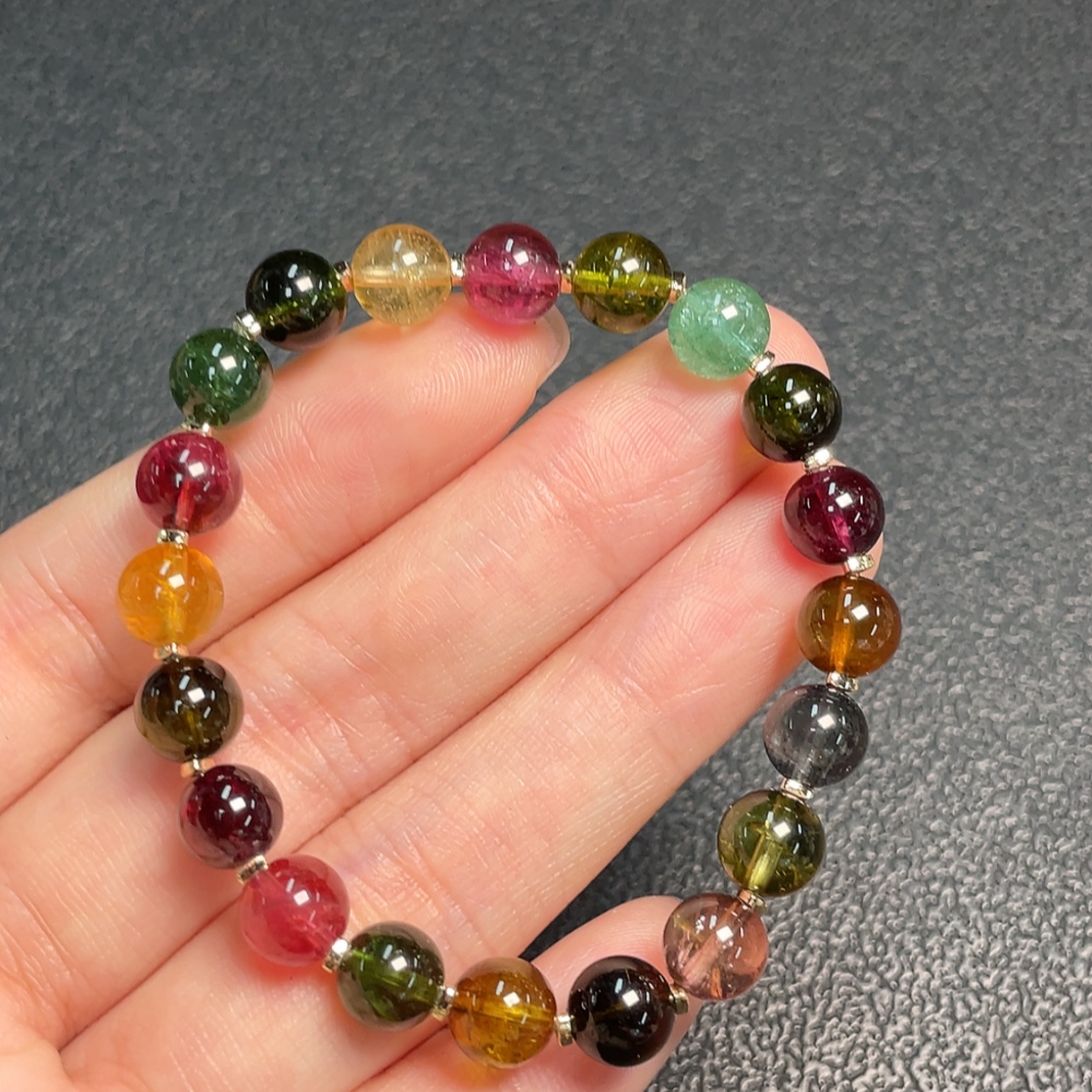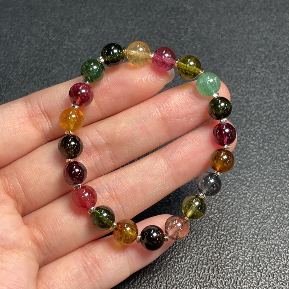 Tourmaline Bracelet with Visible Organic Matter, Total Weight Approx. 12.99g, Size About 7.2mm, Non-Gold